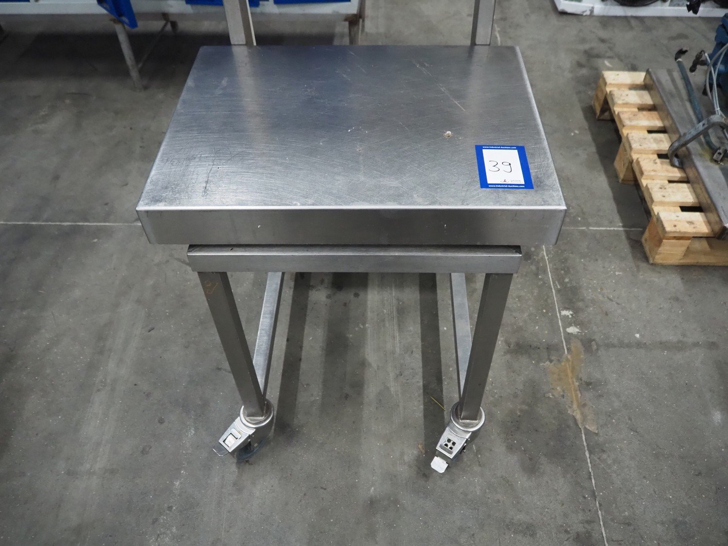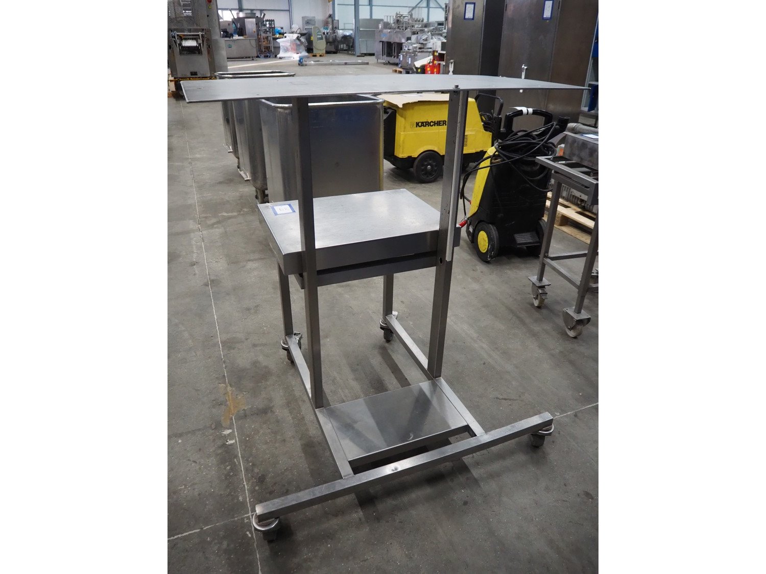 S/s mobile frame with weighing scale, dimensions: 1000 mm x 950 mm x 1200 mm. Kavel locatie: Schouwrooij 29, 5281 RE Boxtel, Nederland