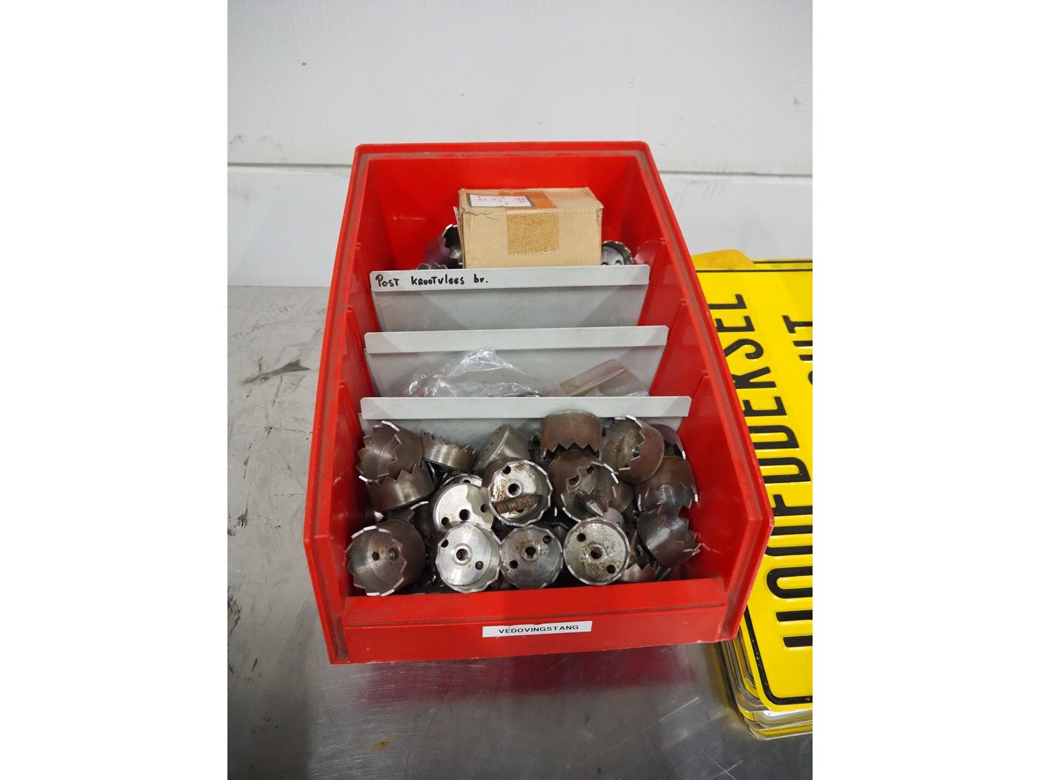 Workplace inventory, amoung others: parts for stunner and signs. Kavel locatie: Schouwrooij 29, 5281 RE Boxtel, Nederland
