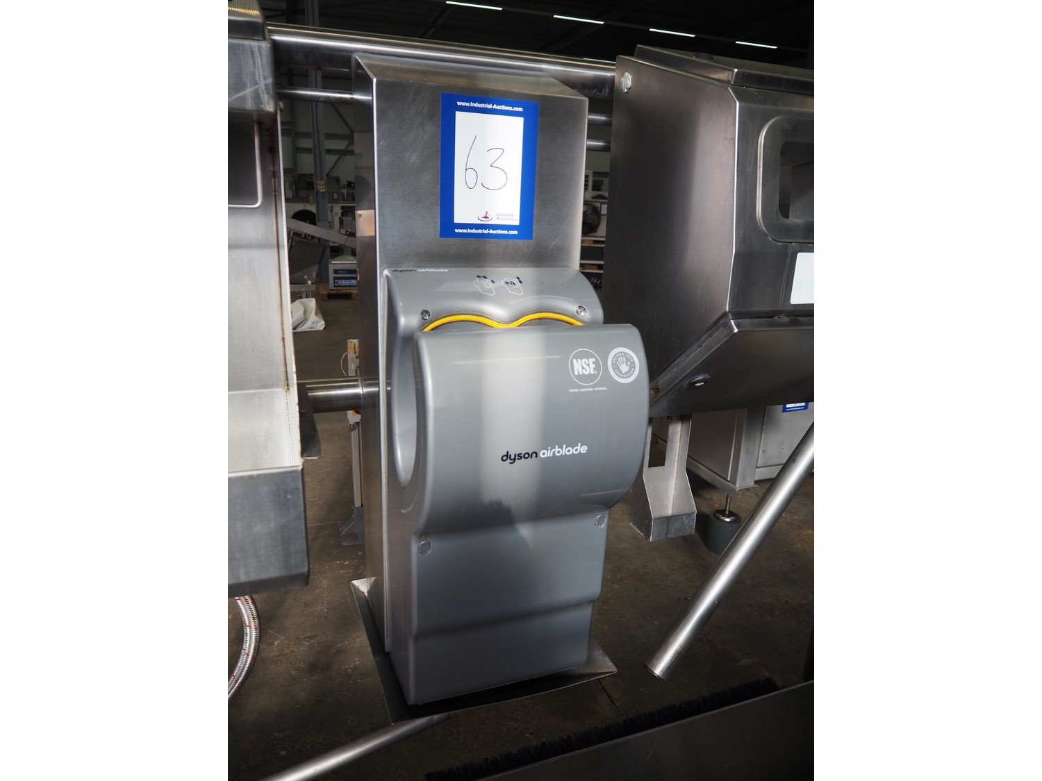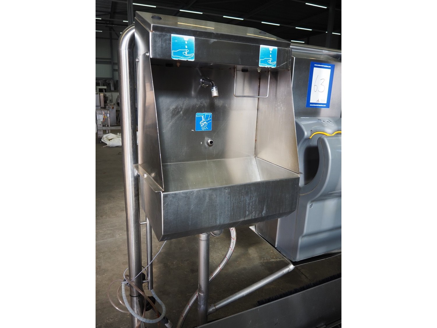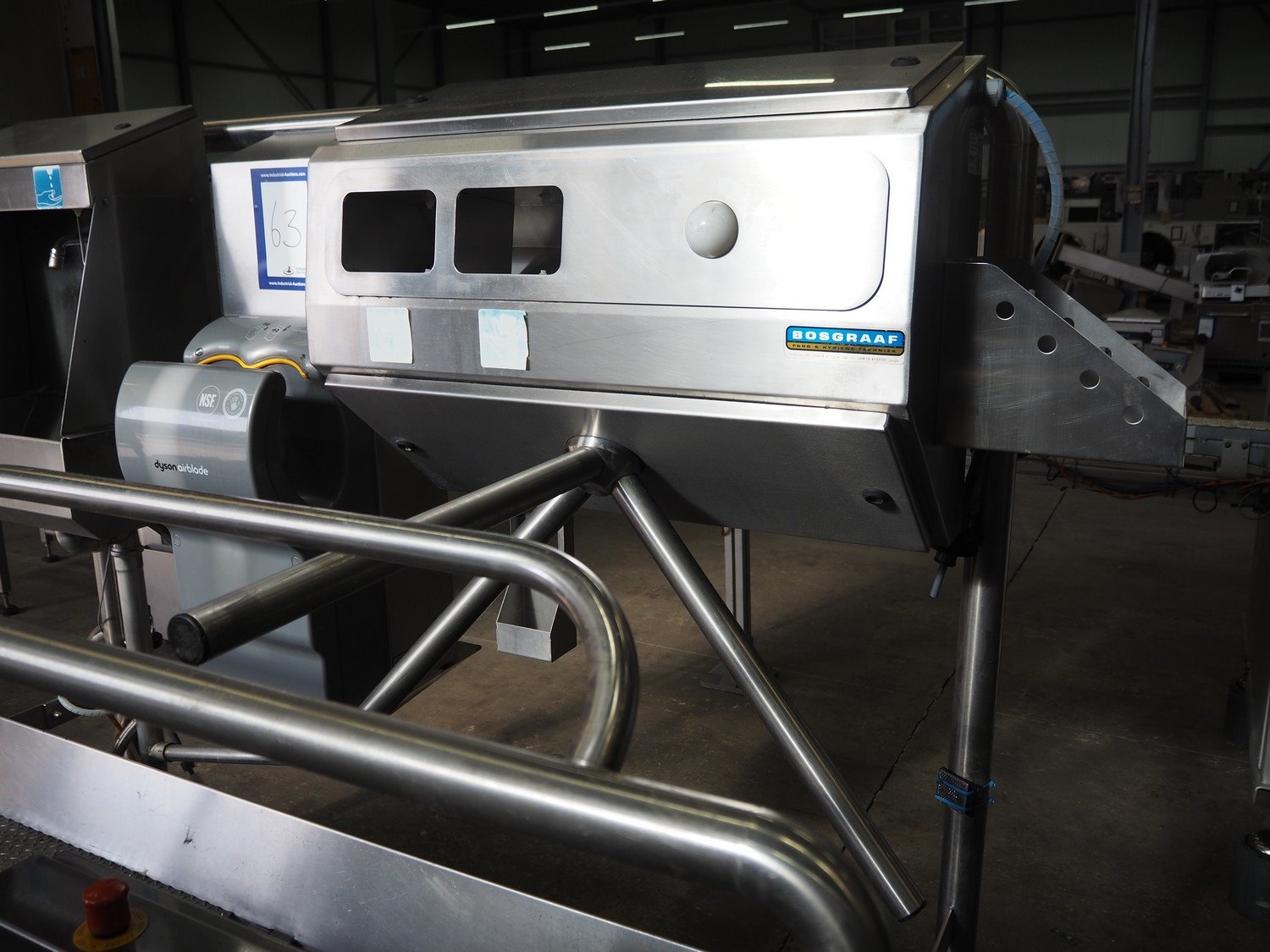 Kohlhoff hygiene station with sole cleaner, hand disinfection, Dyson hand dryer and tourniquet, type: DLS1500+EK800, machine number: 77481, year of construction: 01/2009, 400 V, 3 Ph, 50 Hz, 2.4 kW, brush length: 1100 mm, dimensions: 2200 mm x 1100 mm x 1800 mm. Including 2 extra brushes. Kavel locatie: Schouwrooij 29, 5281 RE Boxtel, Nederland