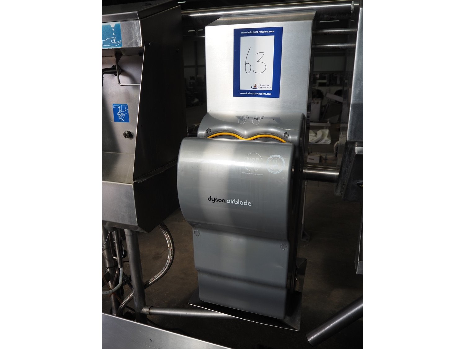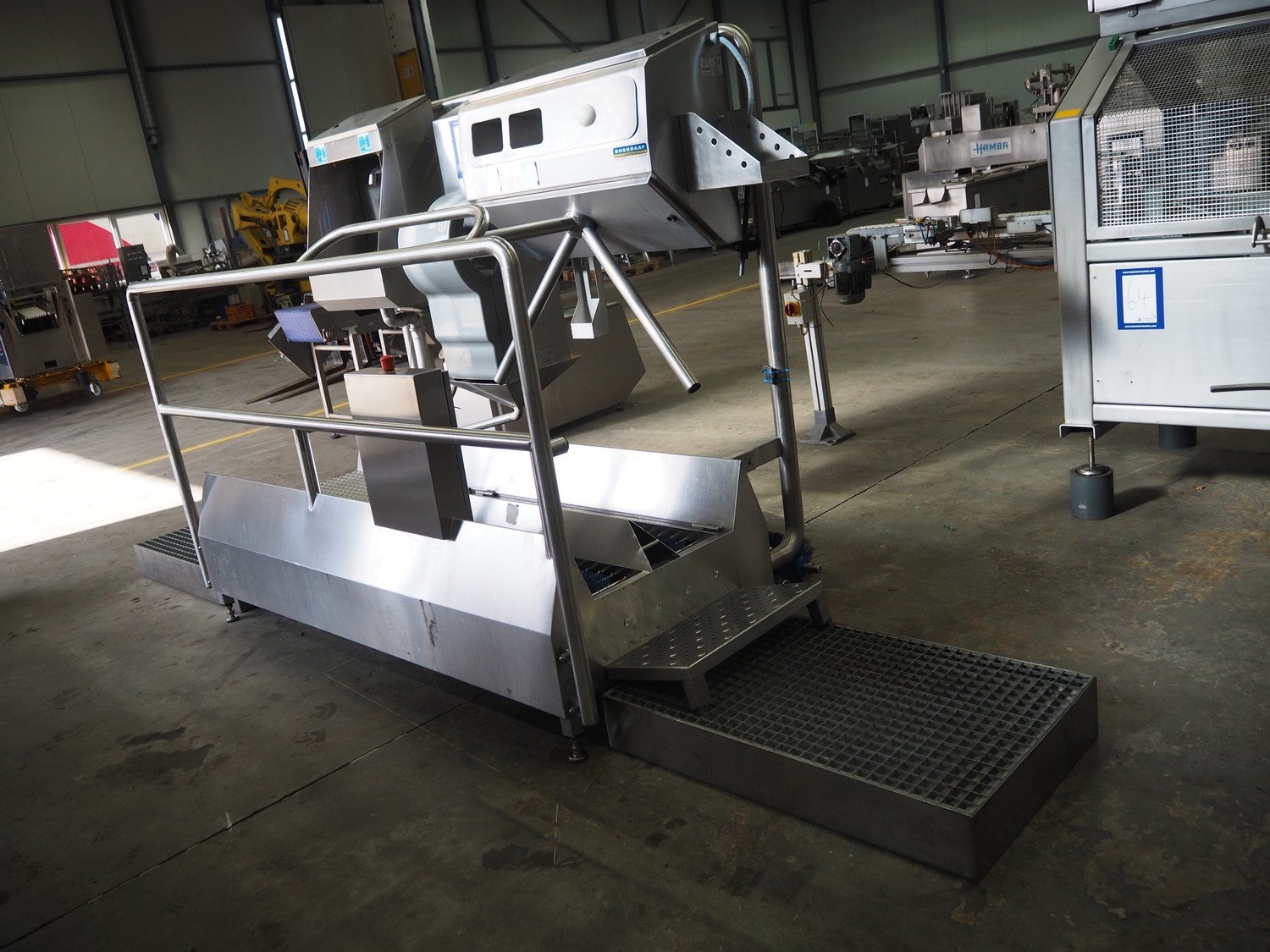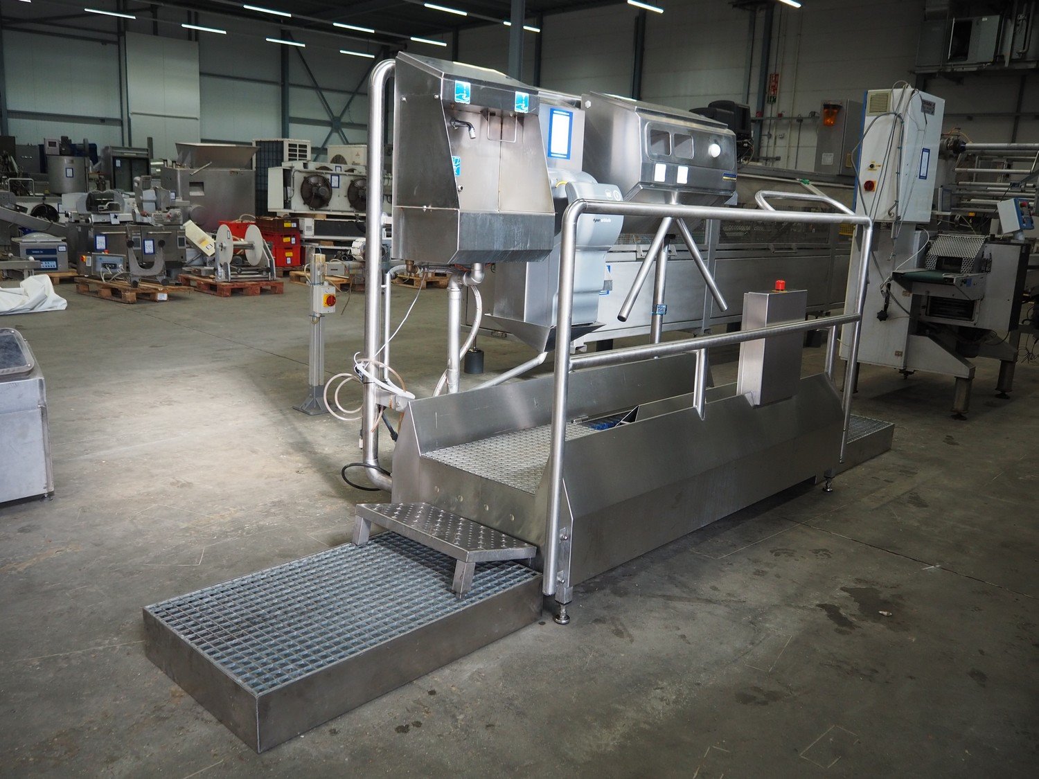 Kohlhoff hygiene station with sole cleaner, hand disinfection, Dyson hand dryer and tourniquet, type: DLS1500+EK800, machine number: 77481, year of construction: 01/2009, 400 V, 3 Ph, 50 Hz, 2.4 kW, brush length: 1100 mm, dimensions: 2200 mm x 1100 mm x 1800 mm. Including 2 extra brushes. Kavel locatie: Schouwrooij 29, 5281 RE Boxtel, Nederland