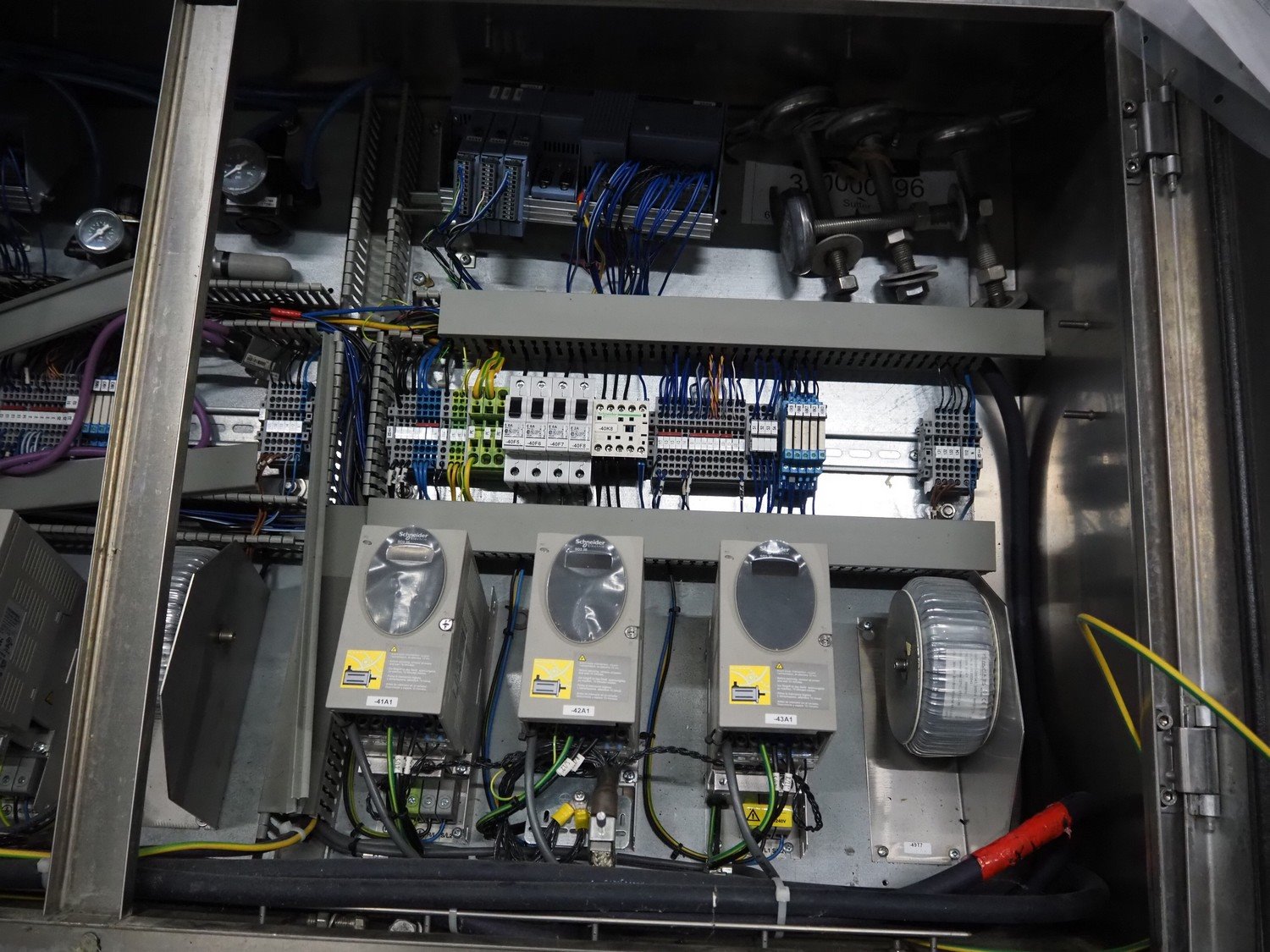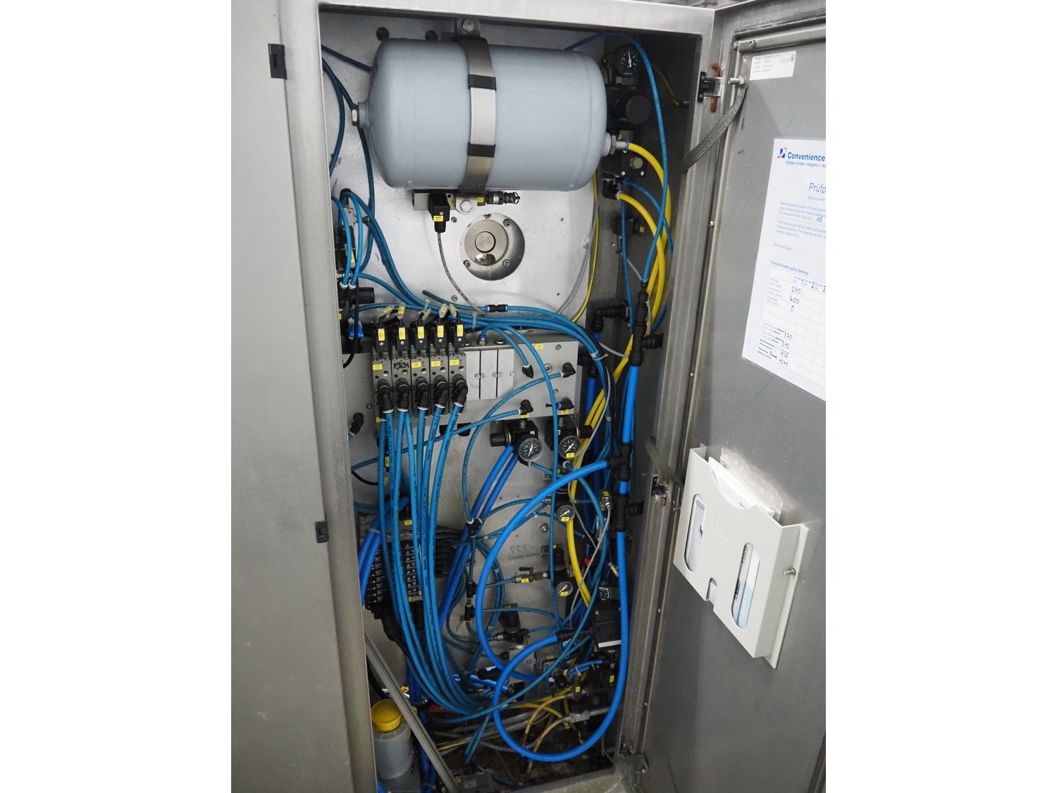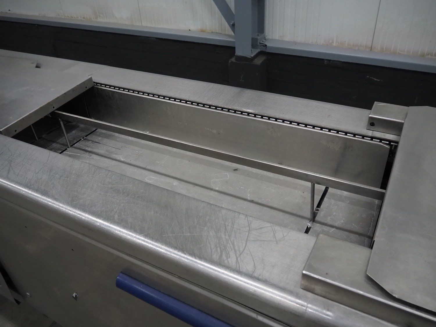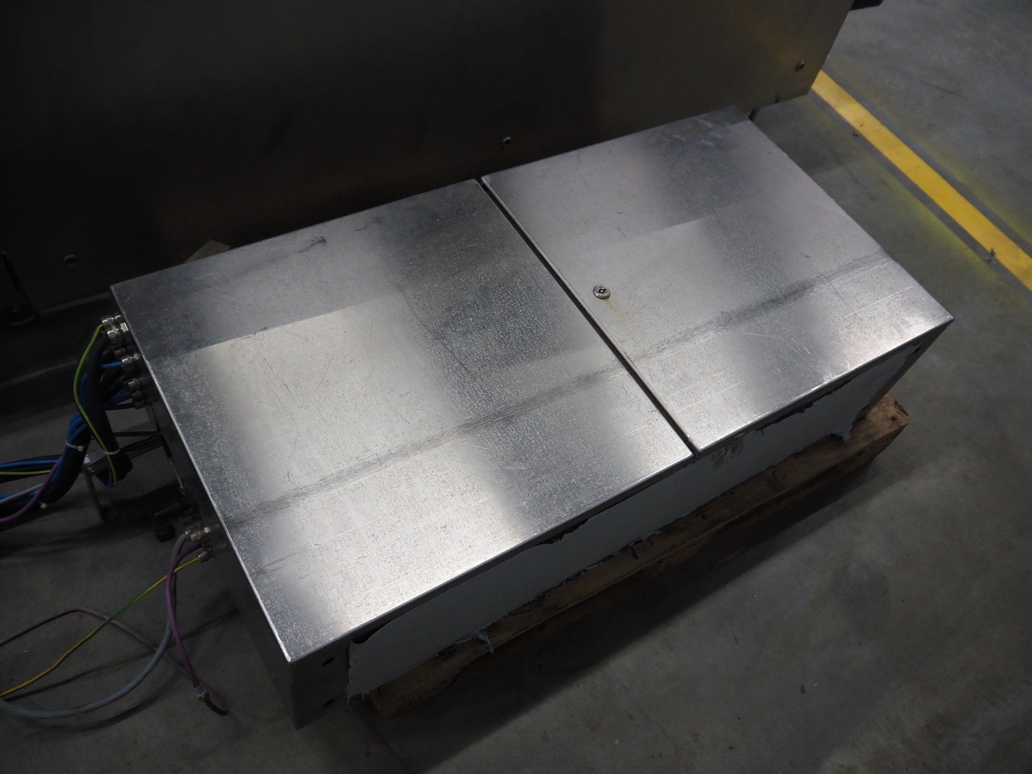 CFS thermoformer, type: EVOLUTION, serial number: 4046100391, year of construction: 2008, 400 V, 3 Ph, 50 Hz, 20 A, 10 kW, film width: 350 mm, dyes: (4x) 300 mm x 90 mm, index: 470 mm, belt width: 430 mm, label width: 85 mm, plastic belt, belt width: 420 mm, total dimensions: 13400 mm x 1300 mm x 2160 mm. Including 5 pallets with machine parts, among others: dyes: (8x) 200 mm x 65 mm, (3x) 255 mm x 130 mm. Transport rollies not included. Kavel locatie: Schouwrooij 29, 5281 RE Boxtel, Nederland