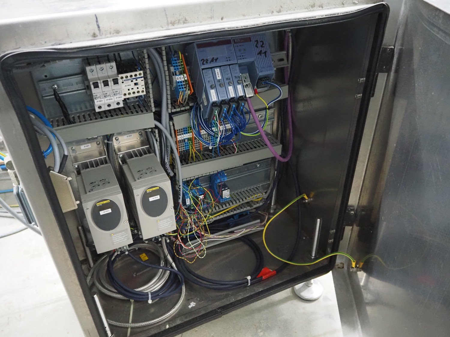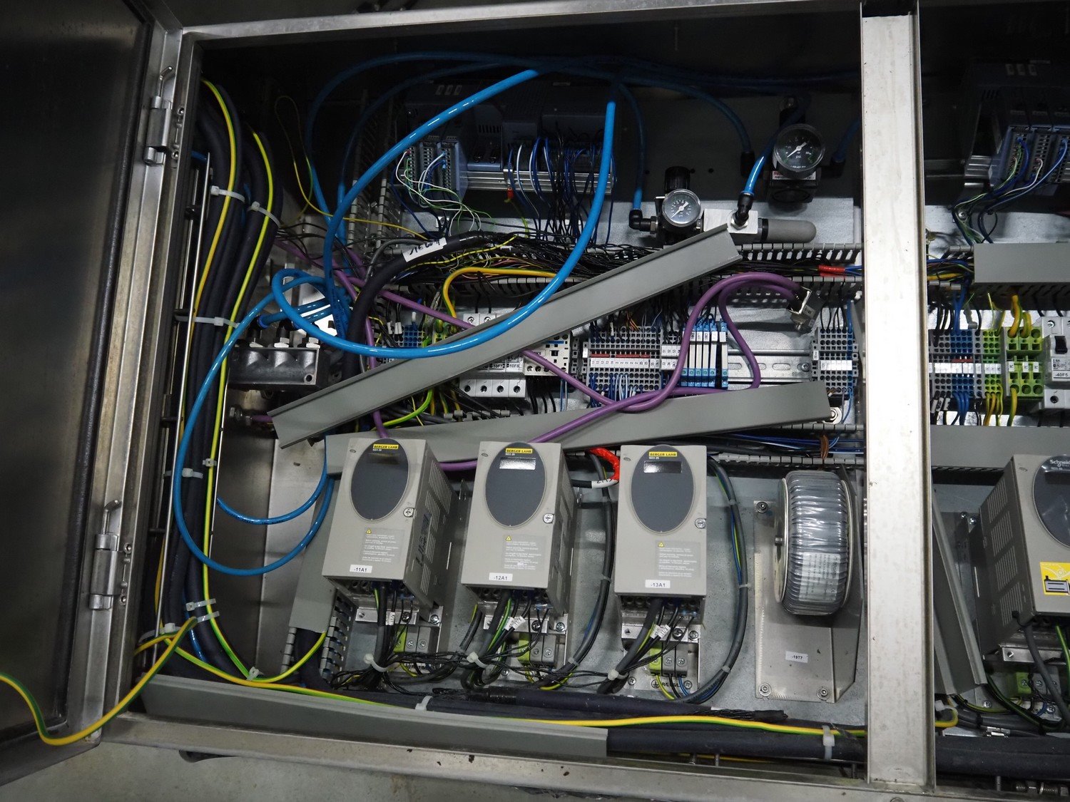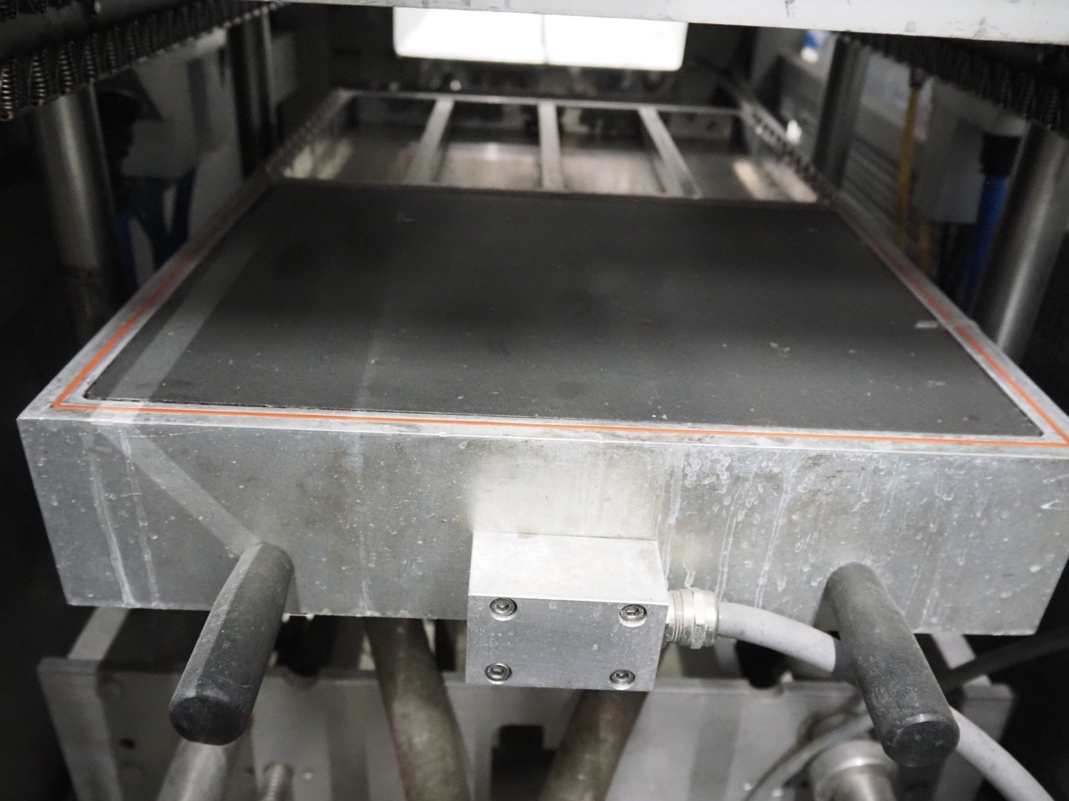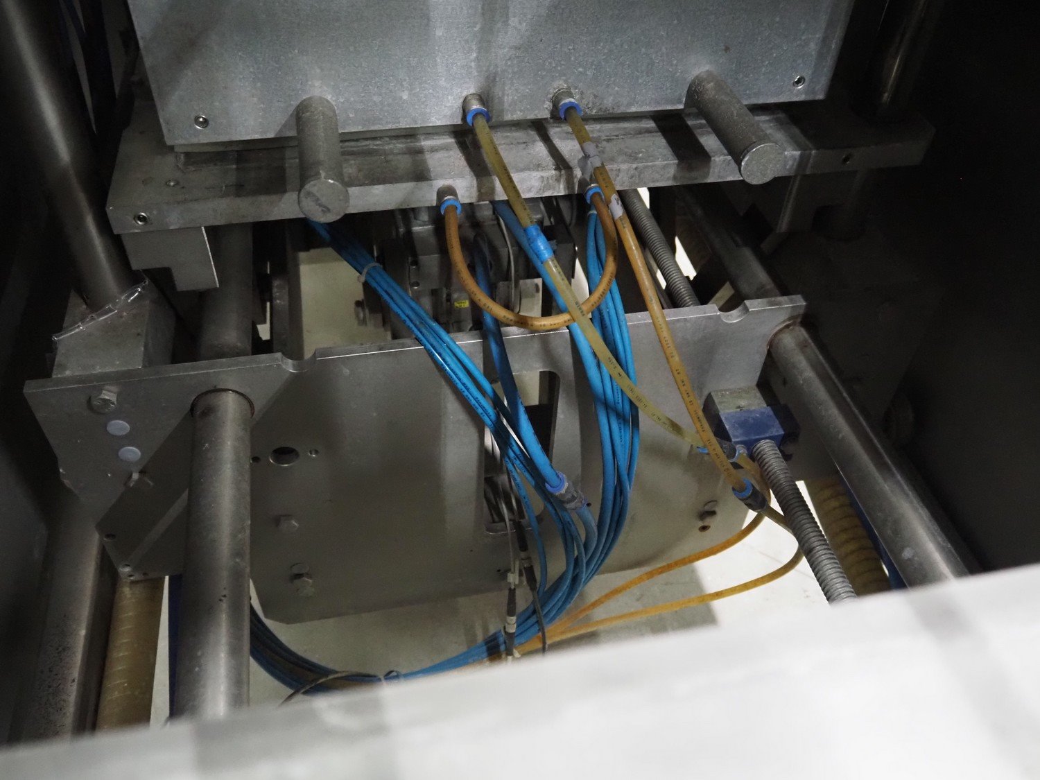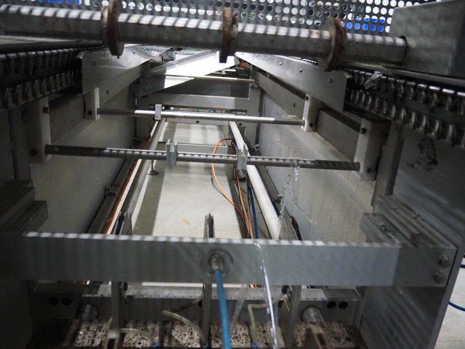 CFS thermoformer, type: EVOLUTION, serial number: 4046100391, year of construction: 2008, 400 V, 3 Ph, 50 Hz, 20 A, 10 kW, film width: 350 mm, dyes: (4x) 300 mm x 90 mm, index: 470 mm, belt width: 430 mm, label width: 85 mm, plastic belt, belt width: 420 mm, total dimensions: 13400 mm x 1300 mm x 2160 mm. Including 5 pallets with machine parts, among others: dyes: (8x) 200 mm x 65 mm, (3x) 255 mm x 130 mm. Transport rollies not included. Kavel locatie: Schouwrooij 29, 5281 RE Boxtel, Nederland
