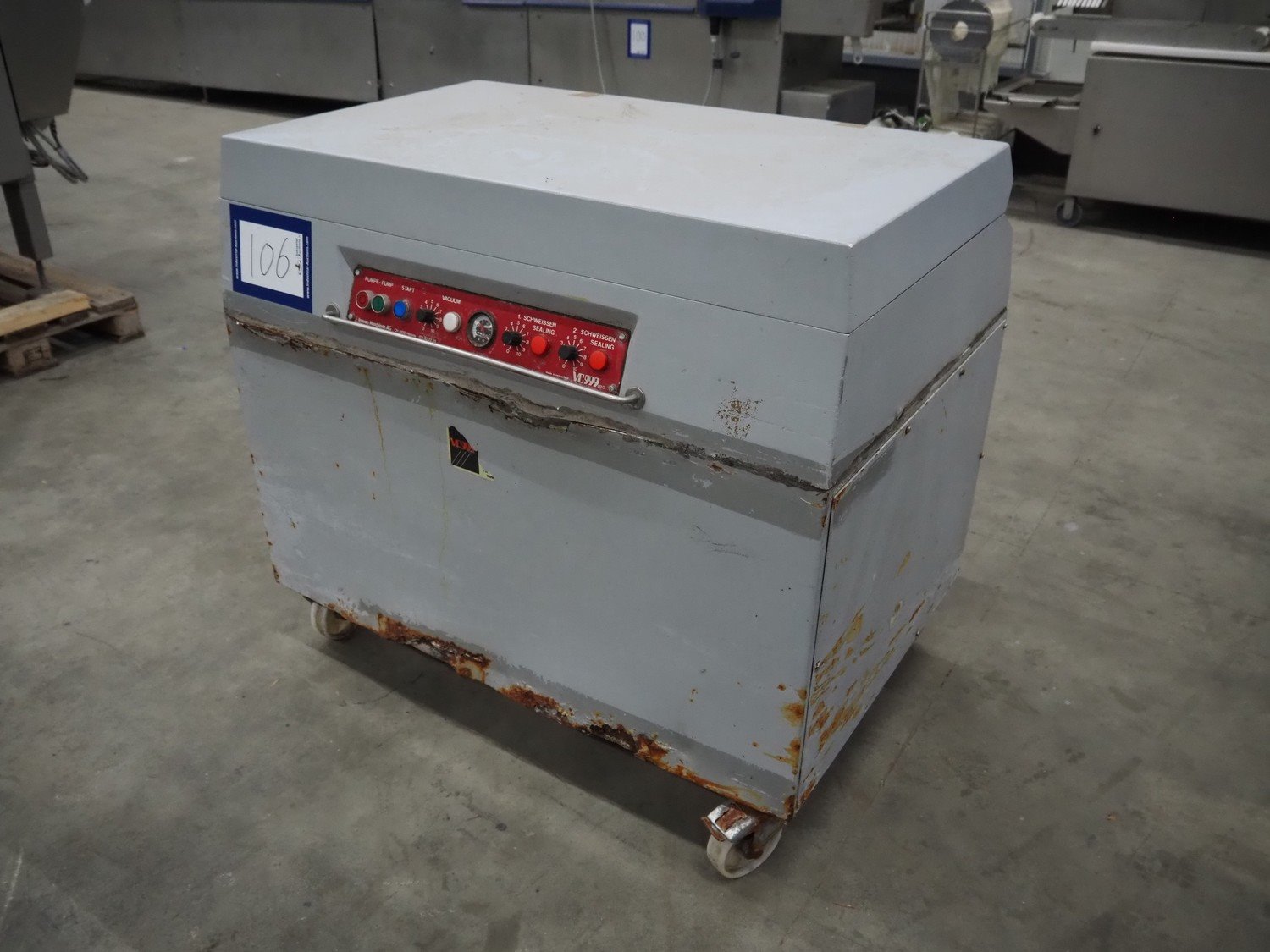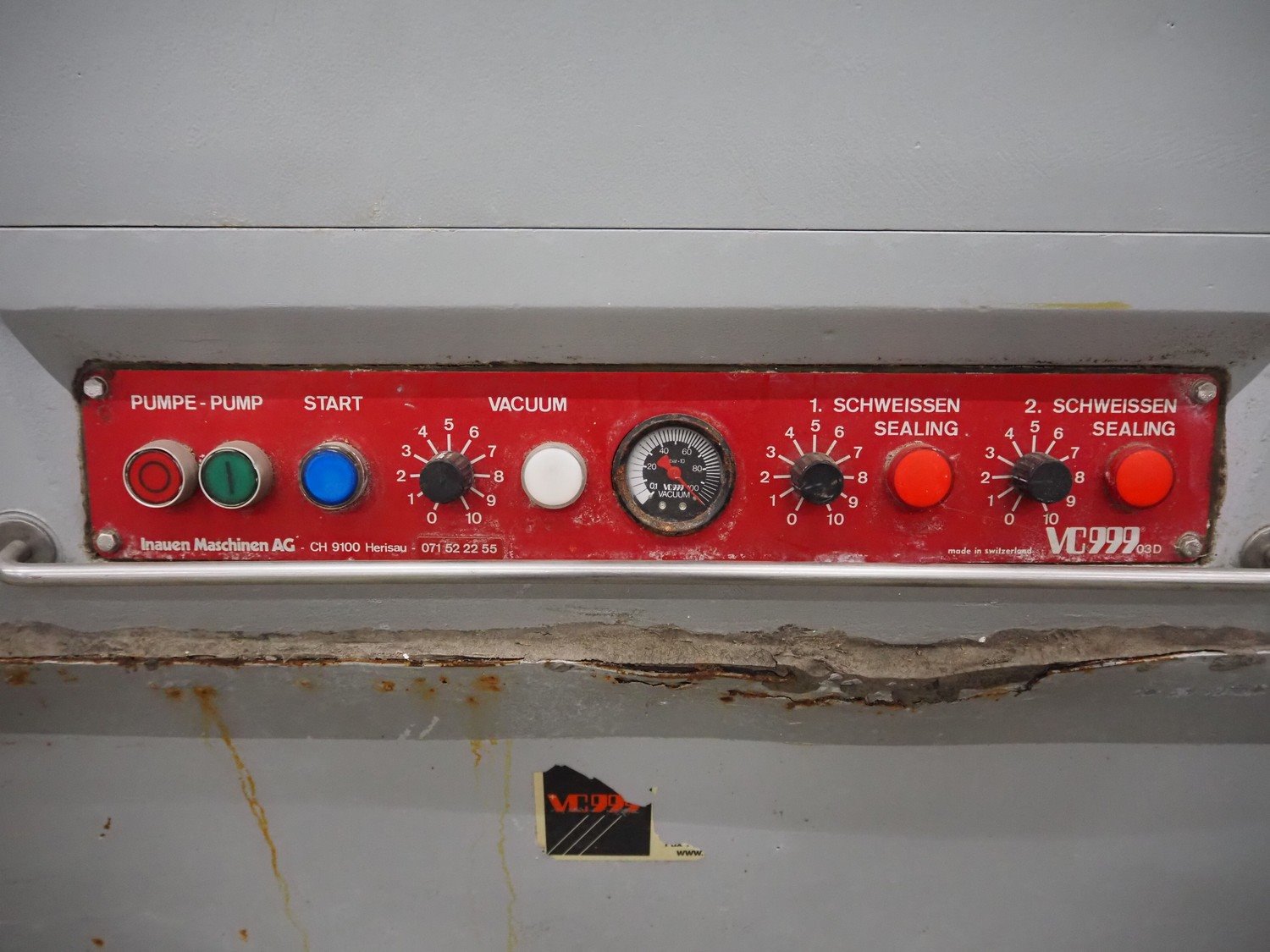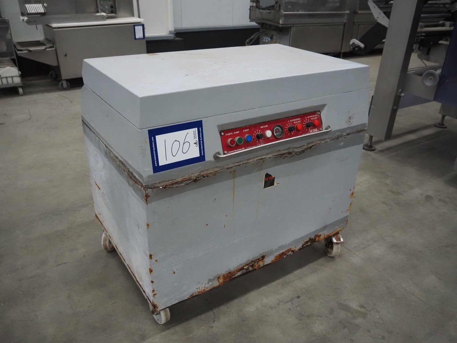 Inauen VC999 mobile vacuum machine, with Rietschle vacuum pump, type: CLFH 220 (20), dimensions: 1100 mm x 800 mm x 1020 mm. Technical condition unknown. Kavel locatie: Schouwrooij 29, 5281 RE Boxtel, Nederland