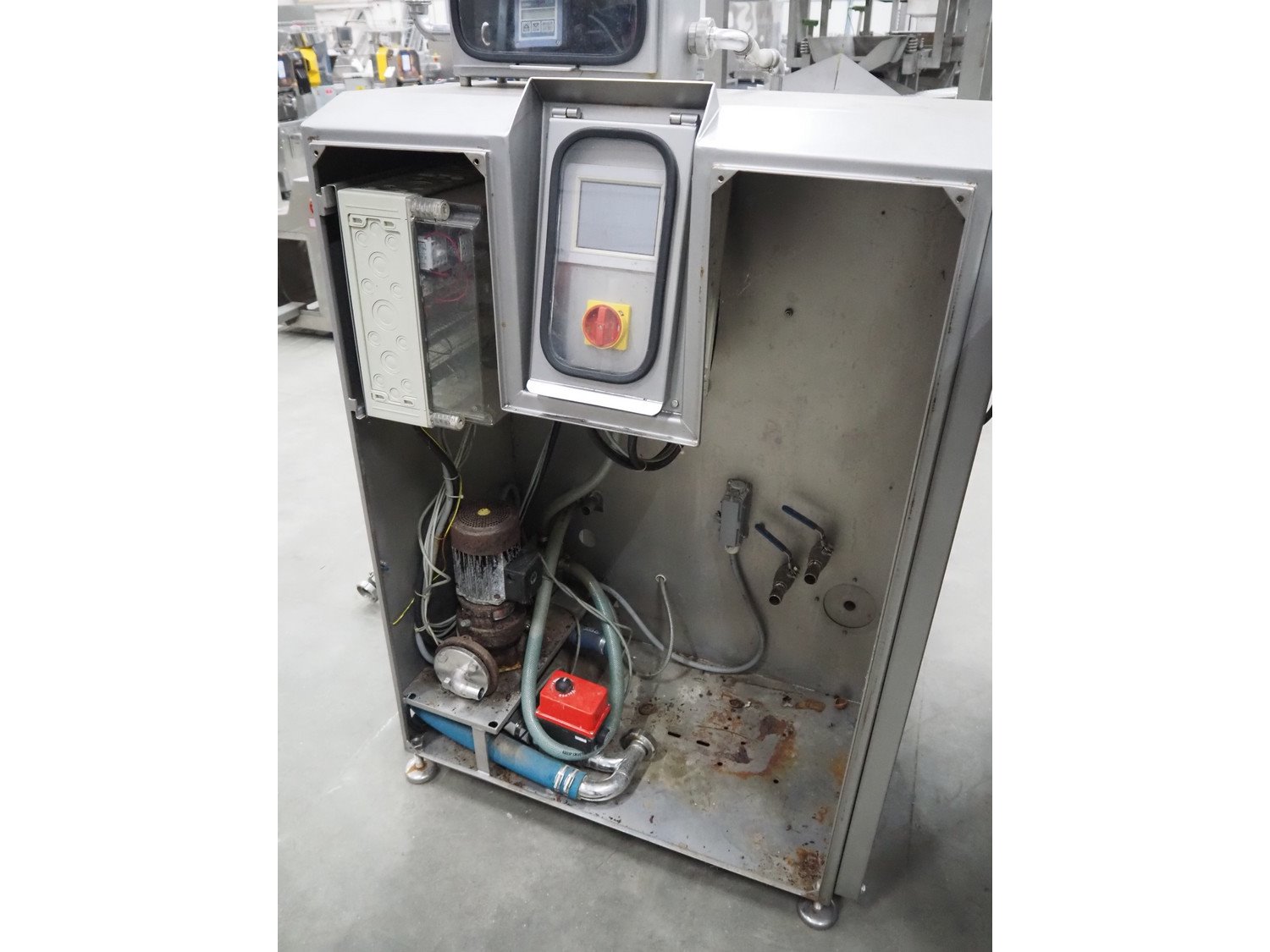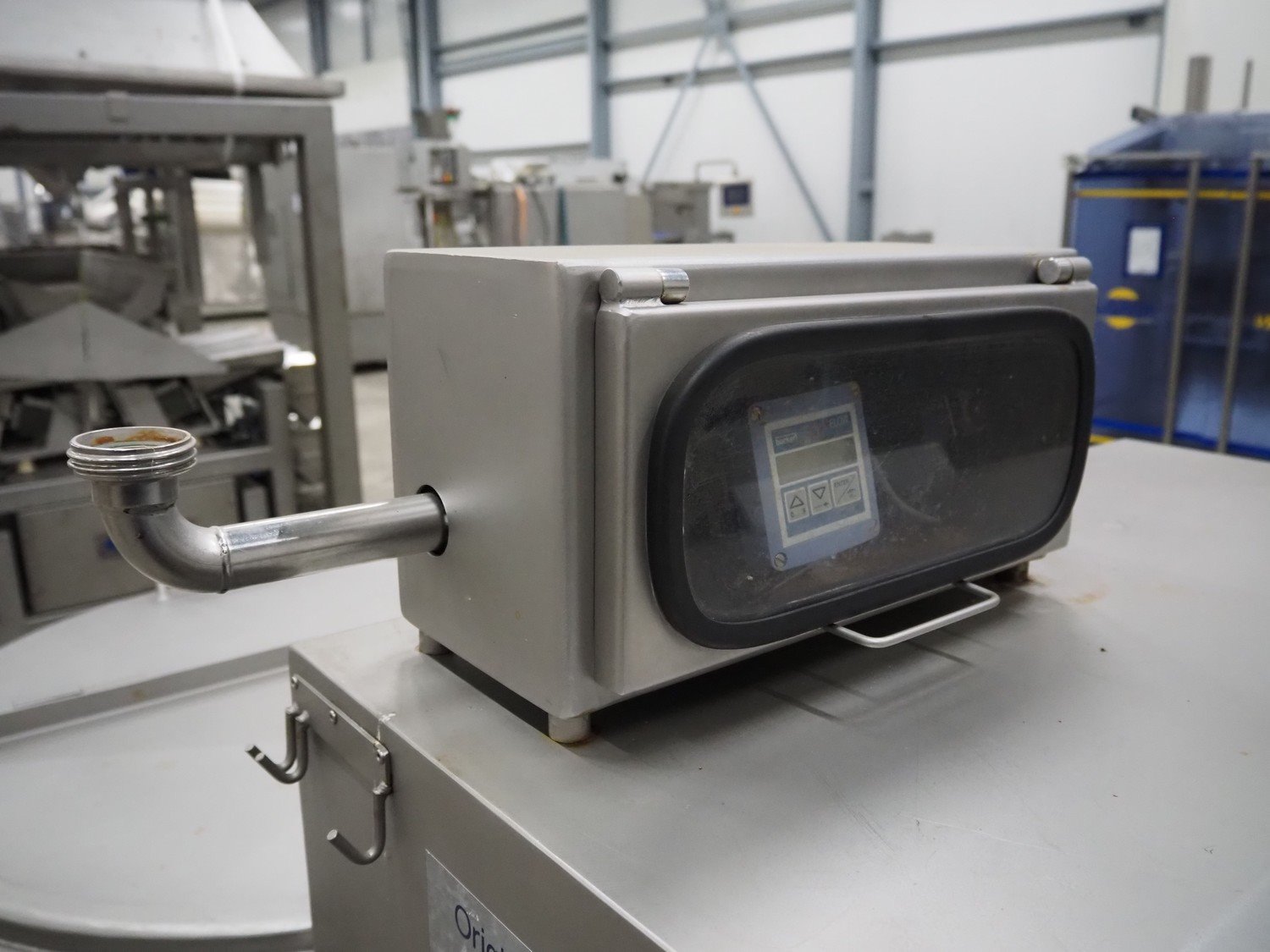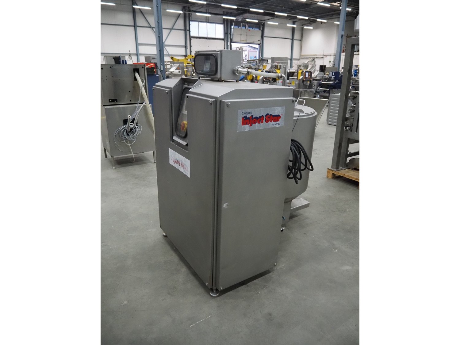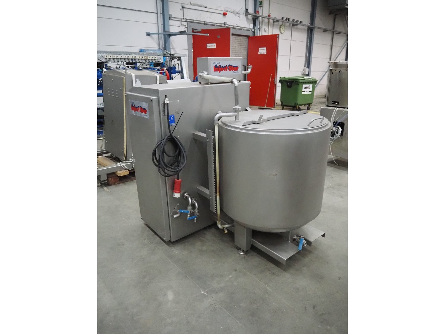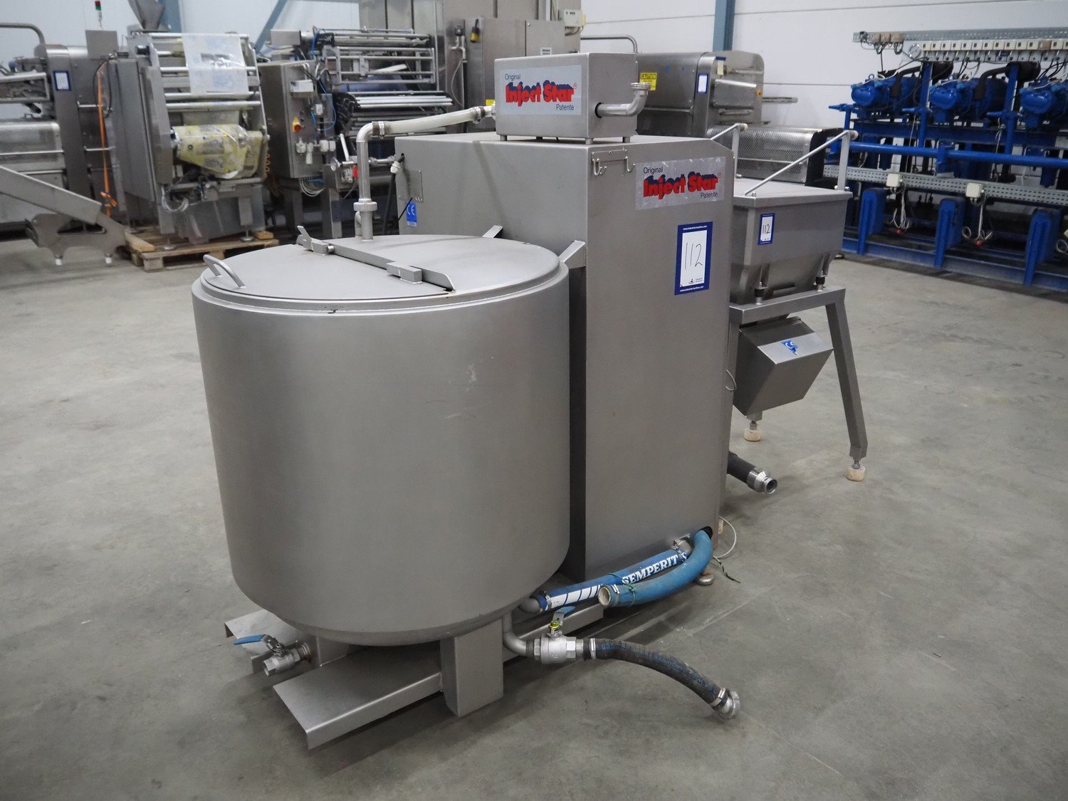 Pökelmaschinen Ges.m.b.H. brine mixer, type: CLB-400, number: K-73, year of construction: 2004, 400 V, 3 Ph, 50 Hz, 6 kW, volume: 400 liter, total dimensions: 1550 mm x 1250 mm x 1600 mm, including Pökelmaschinen Ges.m.b.H s/s infeed bunker for brine mixer, inside dimensions: 530 mm x 490 mm x 200 mm, total dimensions: 900 mm x 730 mm x 1420 mm. Kavel locatie: Schouwrooij 29, 5281 RE Boxtel, Nederland