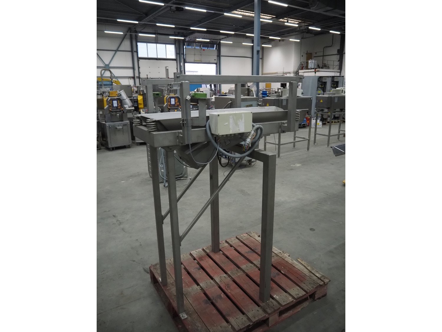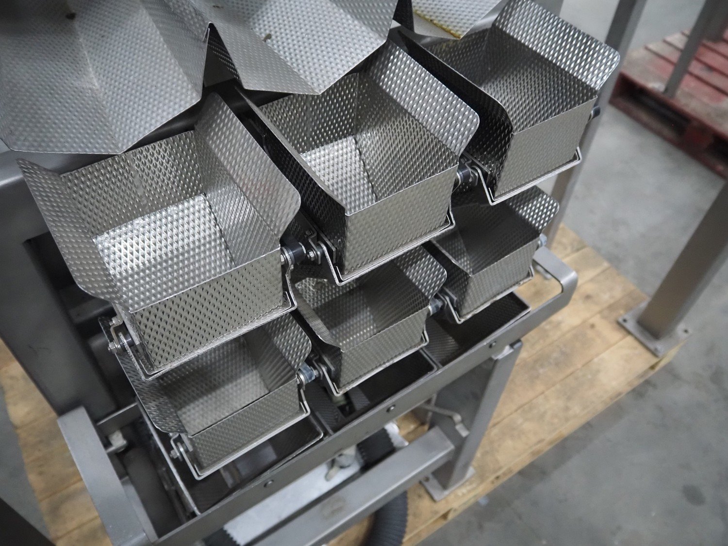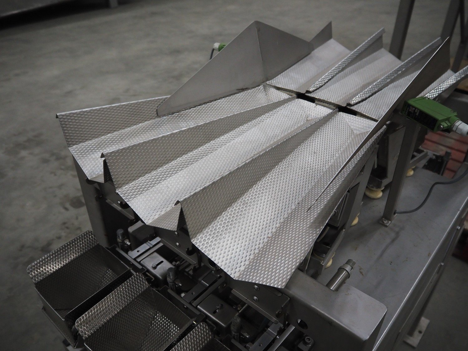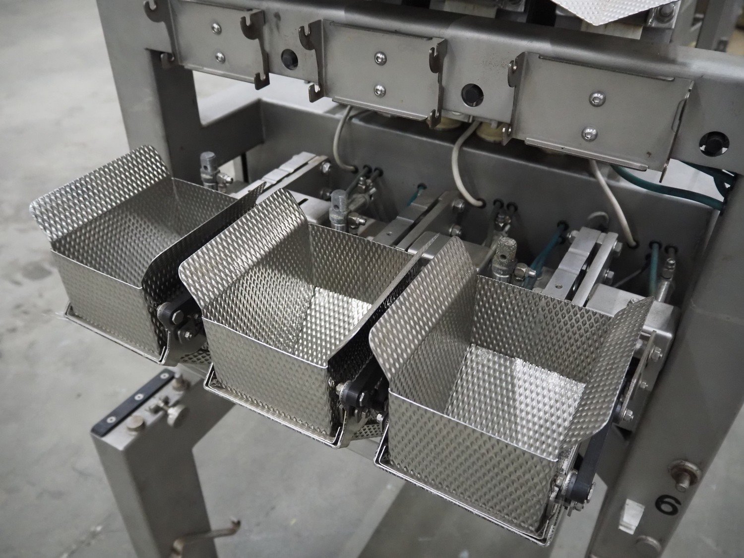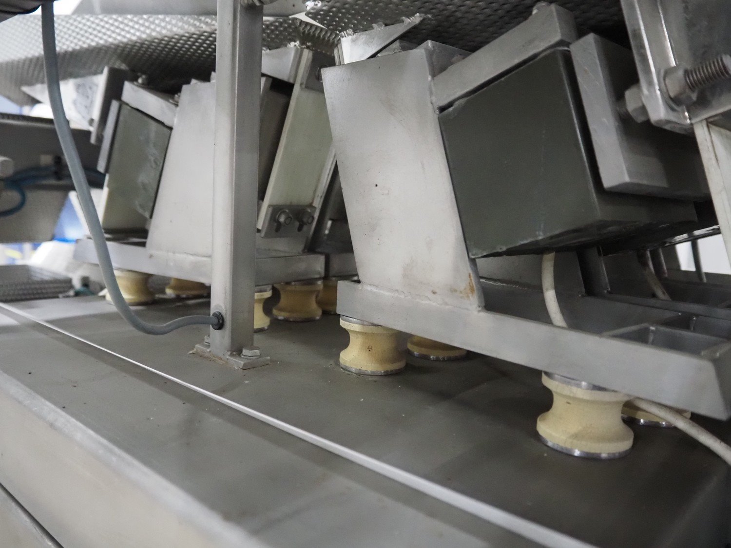 Bilwinco linear weigher consisting of: 2 6-lanes linear weighers, lane width: 120 mm, total dimensions: (2x) 1200 mm x 700 mm x 1300 mm, 2 vibrating gutters, gutter width: 350 mm, total dimensions: (2x) 1300 mm x 700 mm x 1600 mm, s/s frame with infeed hopper and switch cabinet, dimensions: 1600 mm x 1100 mm x 1750 mm. 1 weigher is incomplete. Kavel locatie: Schouwrooij 29, 5281 RE Boxtel, Nederland