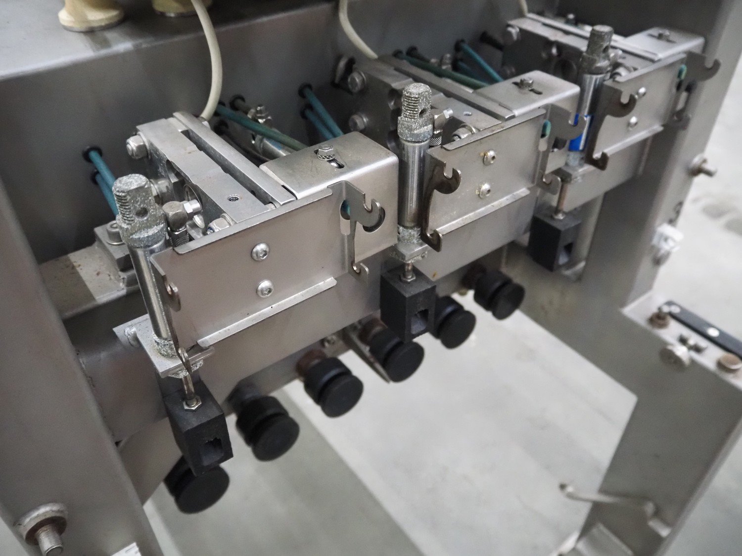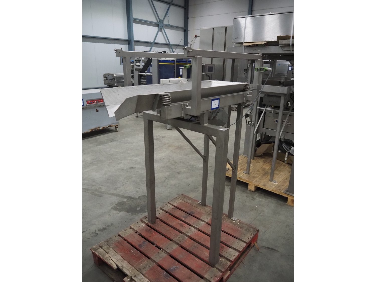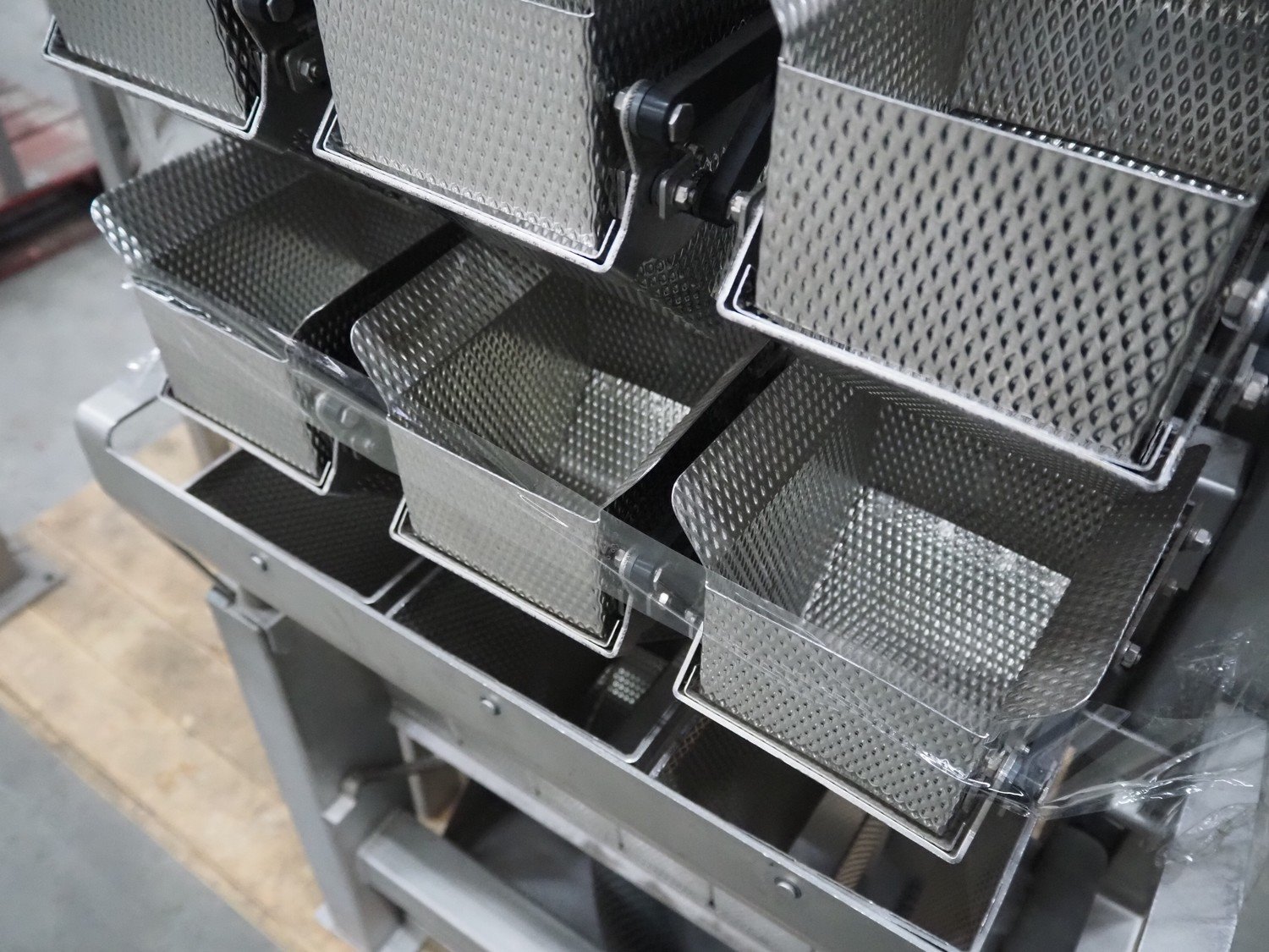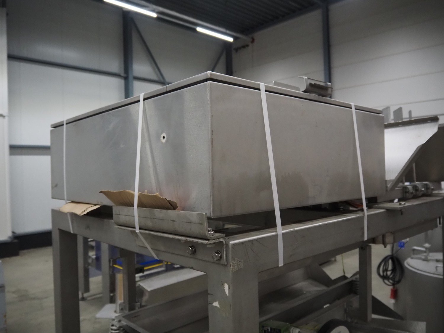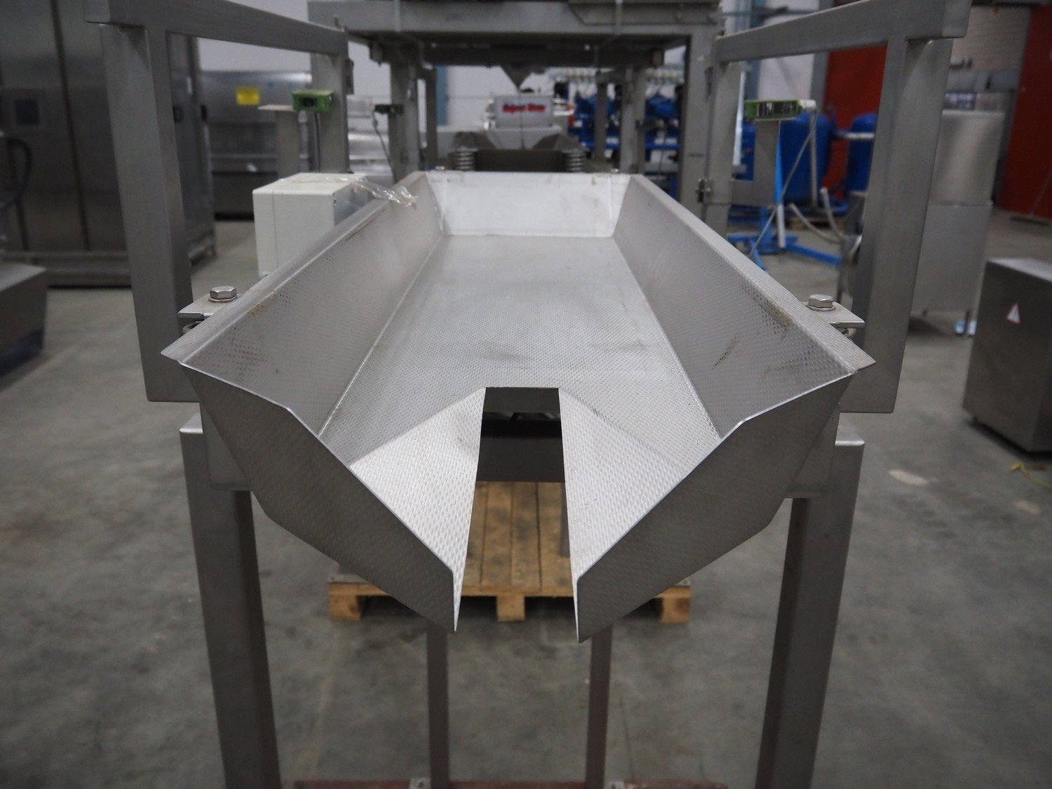 Bilwinco linear weigher consisting of: 2 6-lanes linear weighers, lane width: 120 mm, total dimensions: (2x) 1200 mm x 700 mm x 1300 mm, 2 vibrating gutters, gutter width: 350 mm, total dimensions: (2x) 1300 mm x 700 mm x 1600 mm, s/s frame with infeed hopper and switch cabinet, dimensions: 1600 mm x 1100 mm x 1750 mm. 1 weigher is incomplete. Kavel locatie: Schouwrooij 29, 5281 RE Boxtel, Nederland
