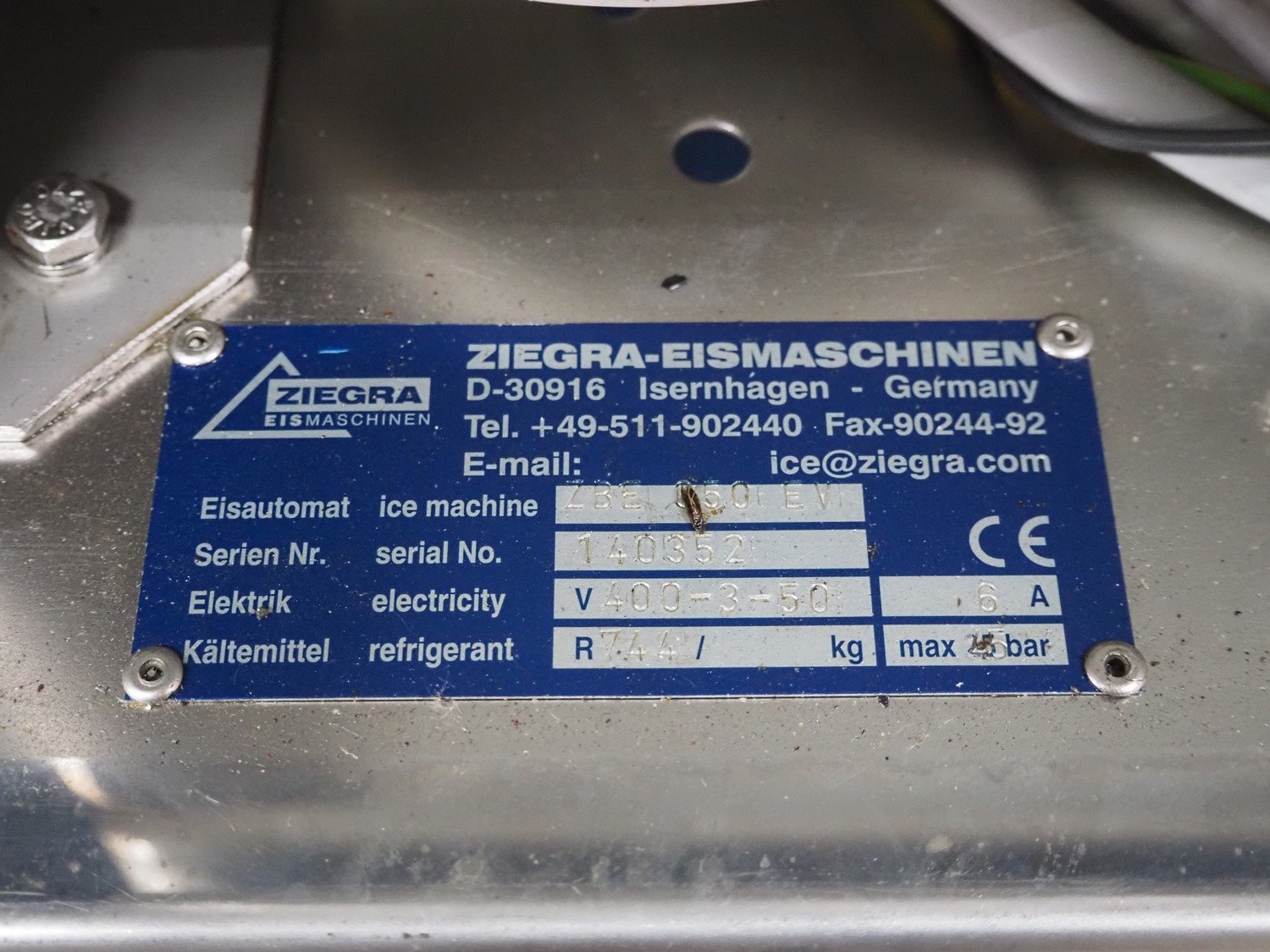Ziegra-Eismaschinen flake ice machine with BWT water softener, type: ZBE 350 EV, serial number: 140352, 400 V, 3 Ph, 50 Hz, 6 A, refrigerant: R744, dimensions: 700 mm x 750 mm x 1600 mm. Kavel locatie: Schouwrooij 29, 5281 RE Boxtel, Nederland