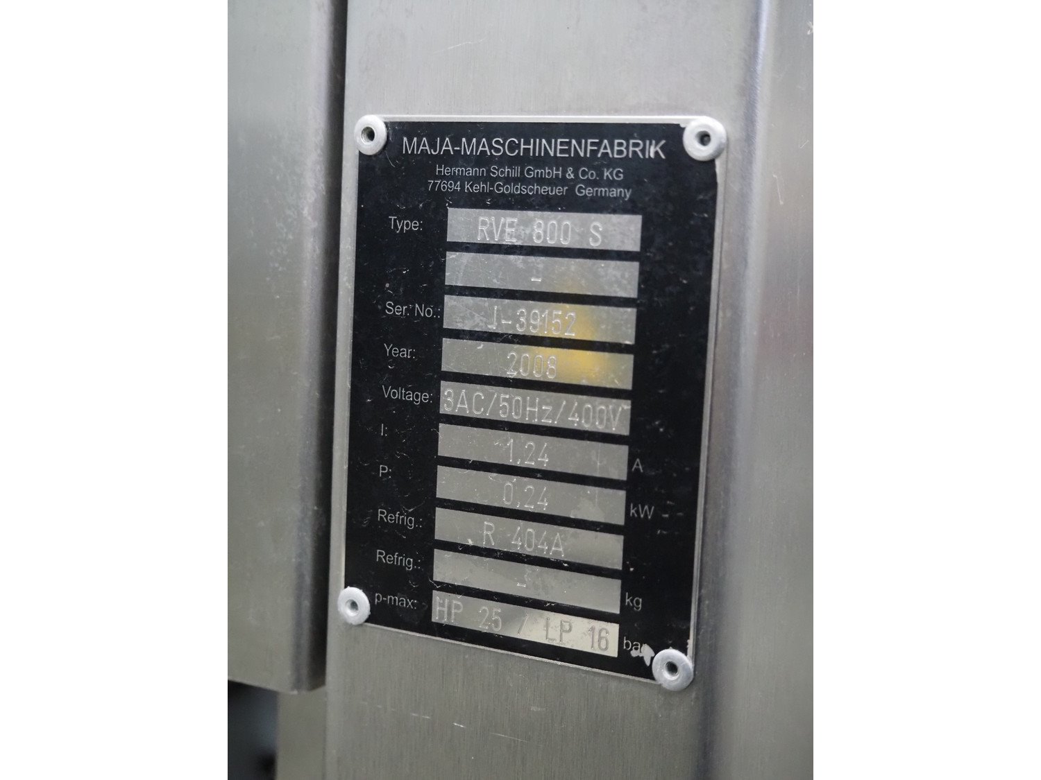 Maja-Maschinenfabrik flake ice machine, type: RVE 800 S, serial number: I-39152, year of construction: 2008, 400 V, 3 Ph, 50 Hz, refrigerant: R 404A, roller width: 340 mm, total dimensions: 1350 mm x 700 mm x 1430 mm. Kavel locatie: Schouwrooij 29, 5281 RE Boxtel, Nederland
