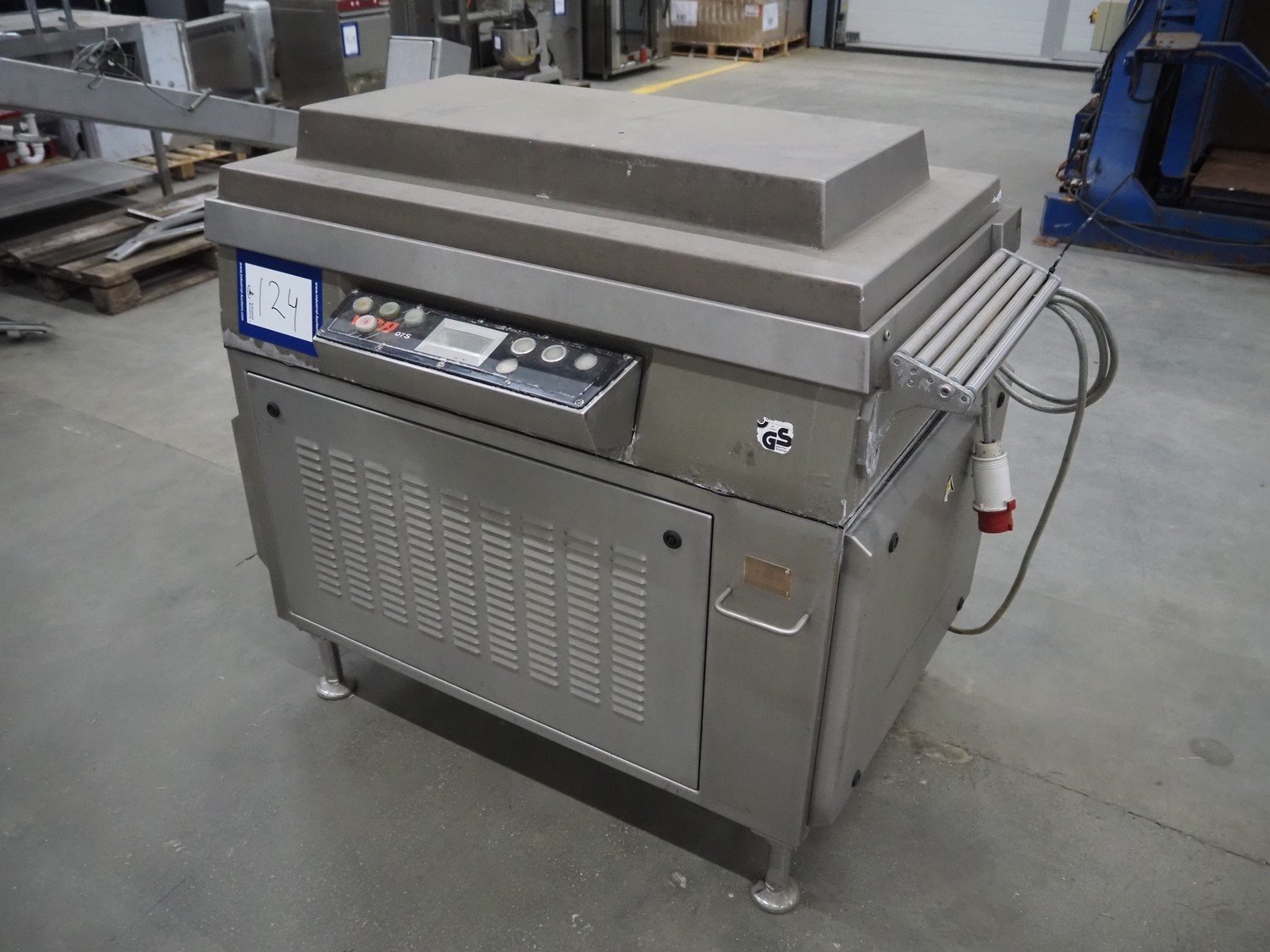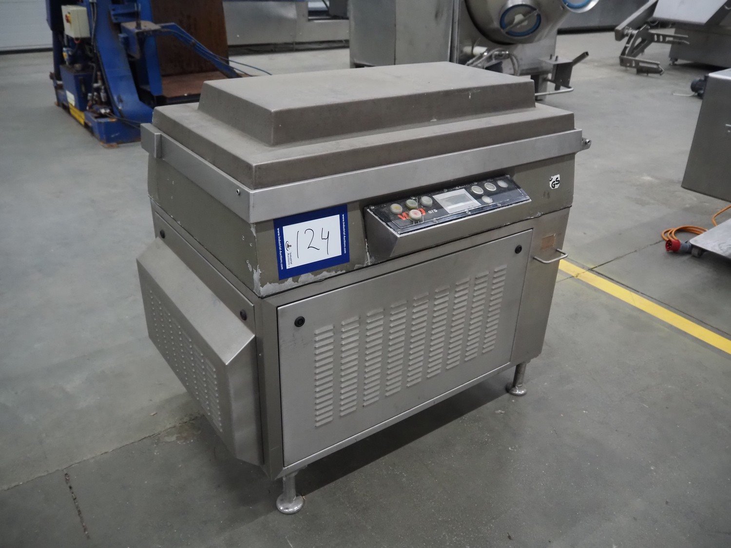 VC999 Verpackungssysteme AG vacuum machine, type: VC999 07S H15/205, machine number: 07152588, year of construction: 2015, 400 V, 3 Ph, 50 Hz, 7 kW, VC999 vacuum pump, type: 9603030/10, serial number: 1403600, year of construction: 2014, capacity: 205/245 m³ per hour, seal length: (2x) 450 mm and (1x) 1000 mm, dimensions chamber: 1050 mm x 530 mm, total dimensions: 1350 mm x 850 mm x 1100 mm. Kavel locatie: Schouwrooij 29, 5281 RE Boxtel, Nederland