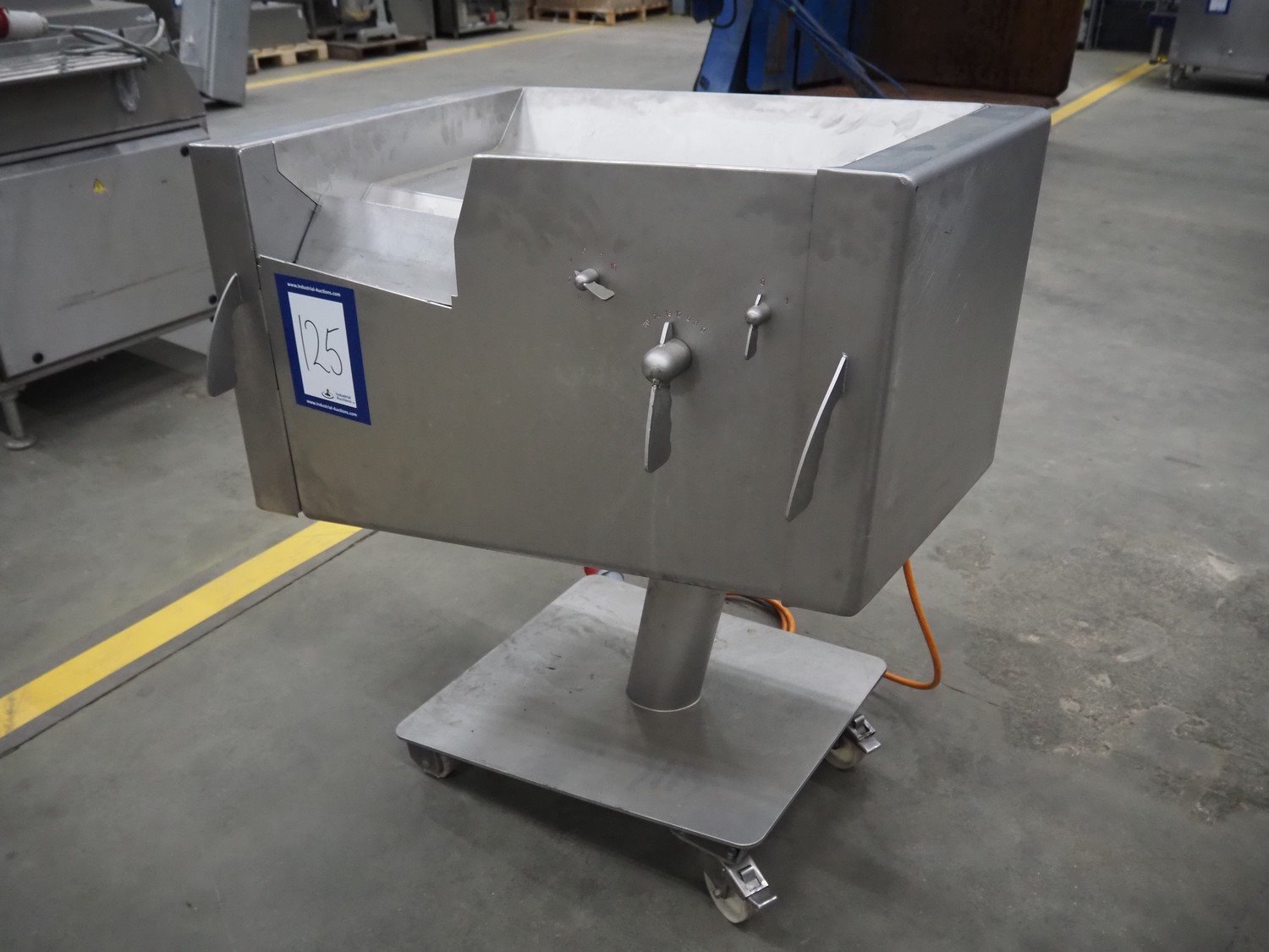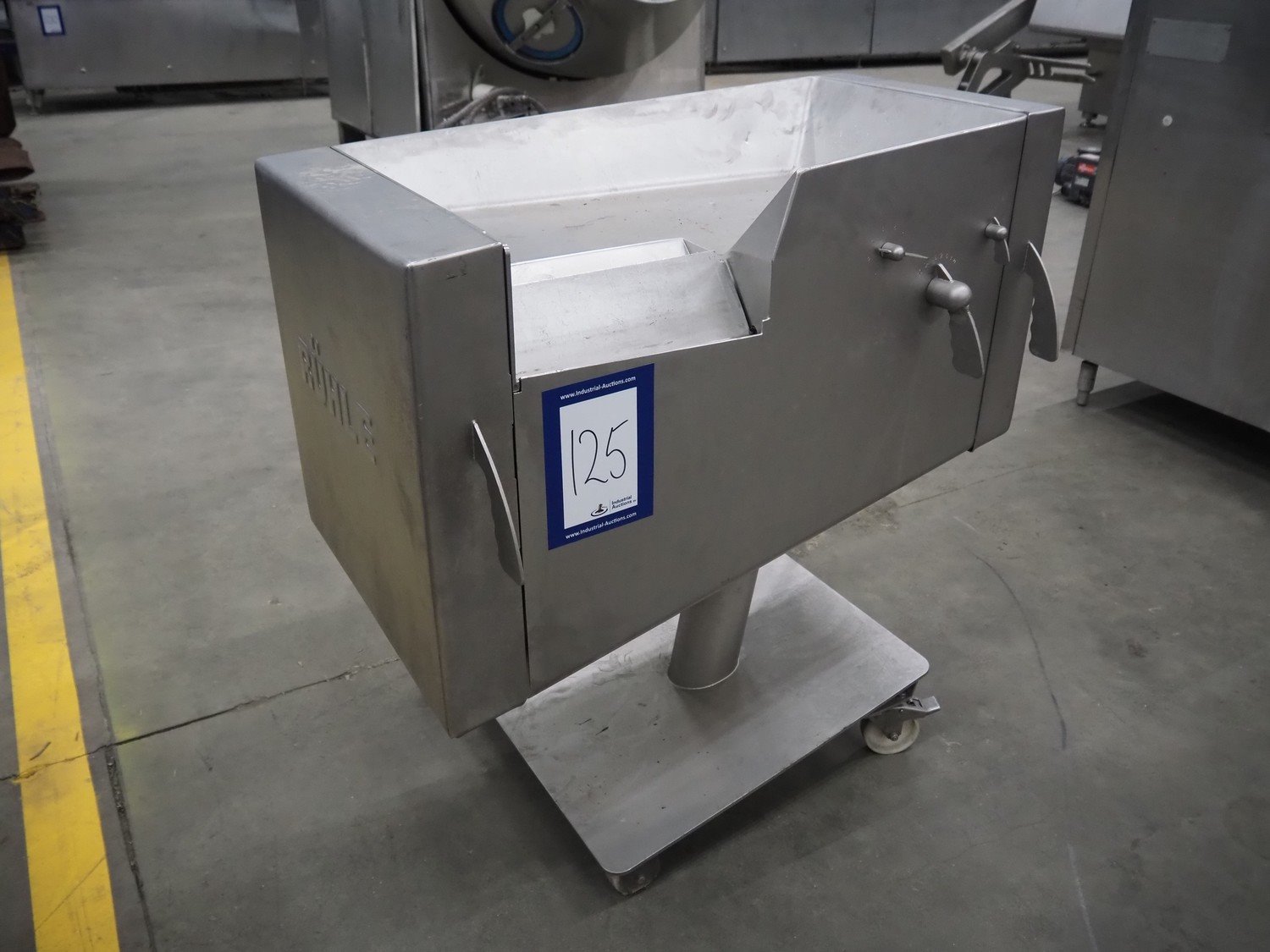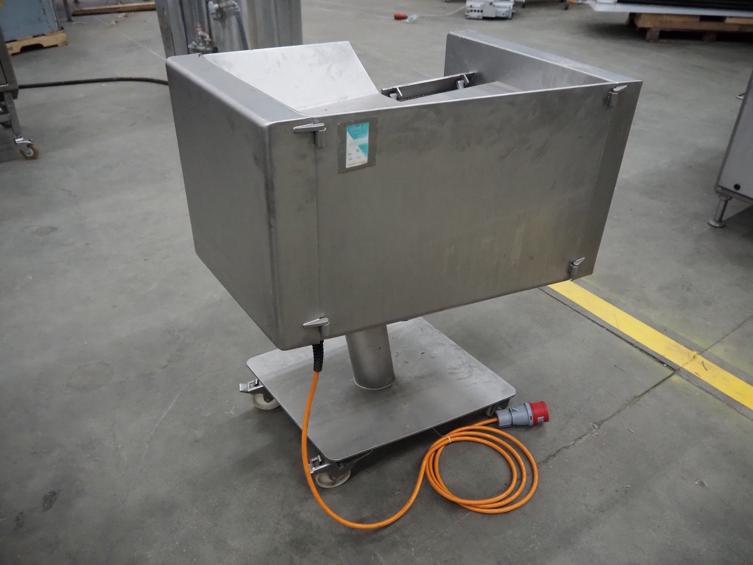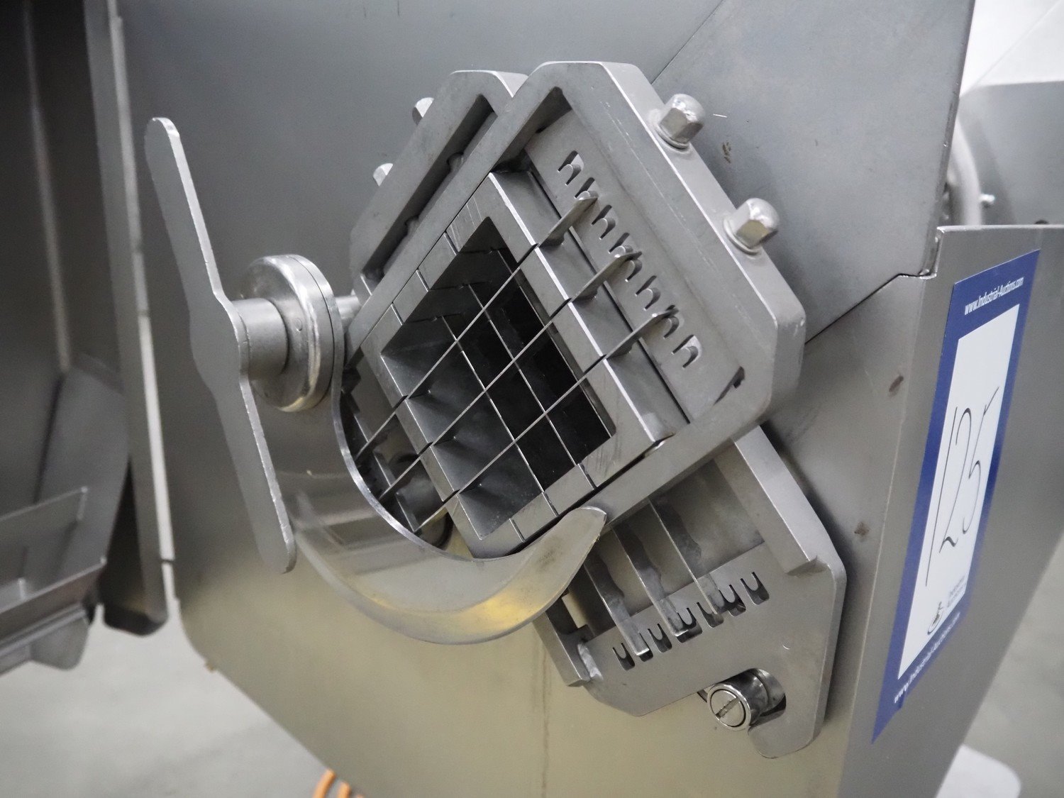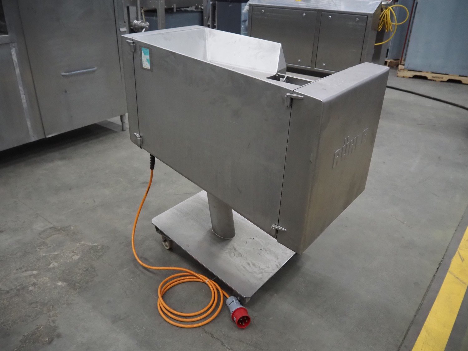 Rühle mobile dicer, type: SR 1, number: 813, year of construction 1999, 400 V, 50 Hz, dimensions chamber: 100 mm x 100 mm, distance between knifes: 5 mm, total dimensions: 1000 mm x 700 mm x 1100 mm. Kavel locatie: Schouwrooij 29, 5281 RE Boxtel, Nederland