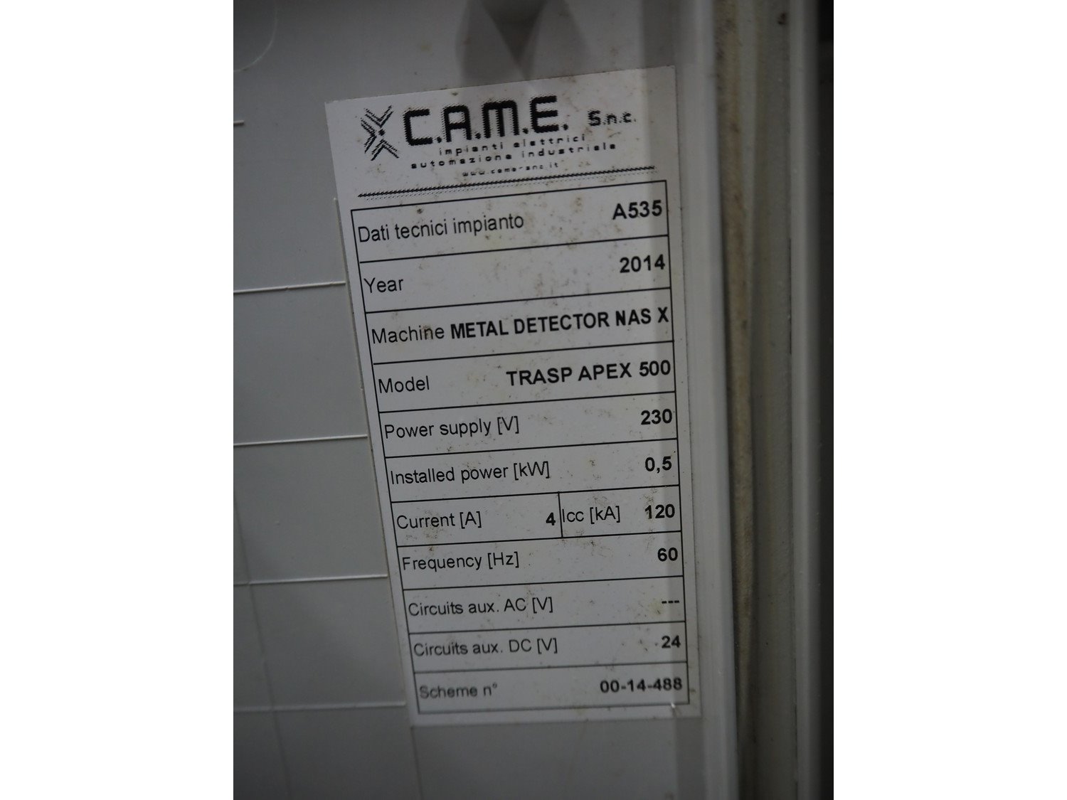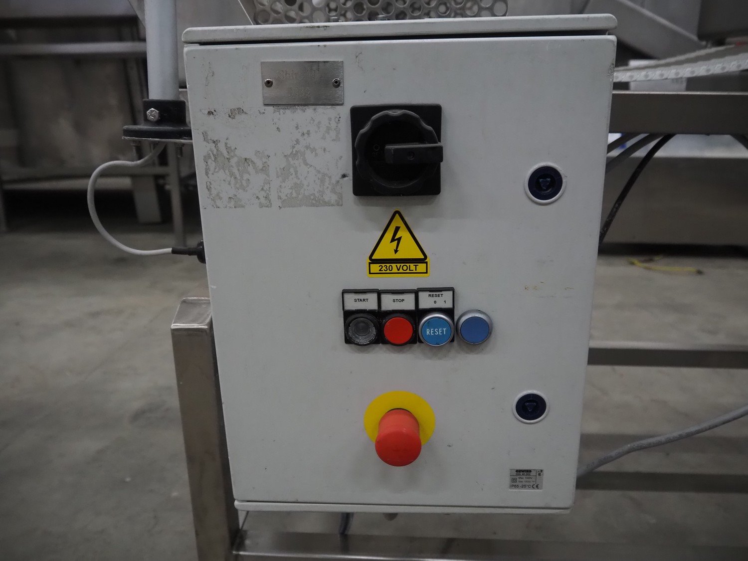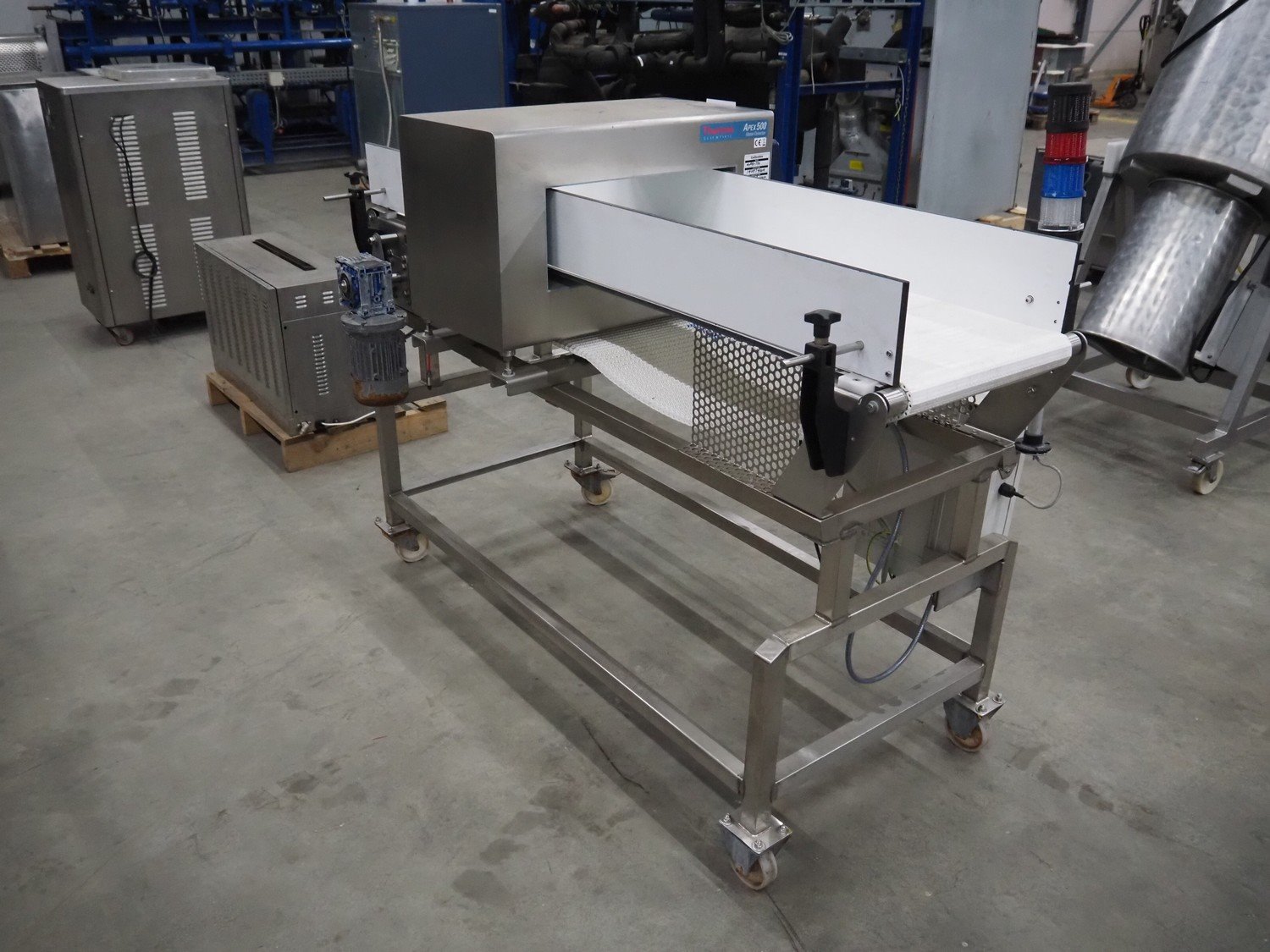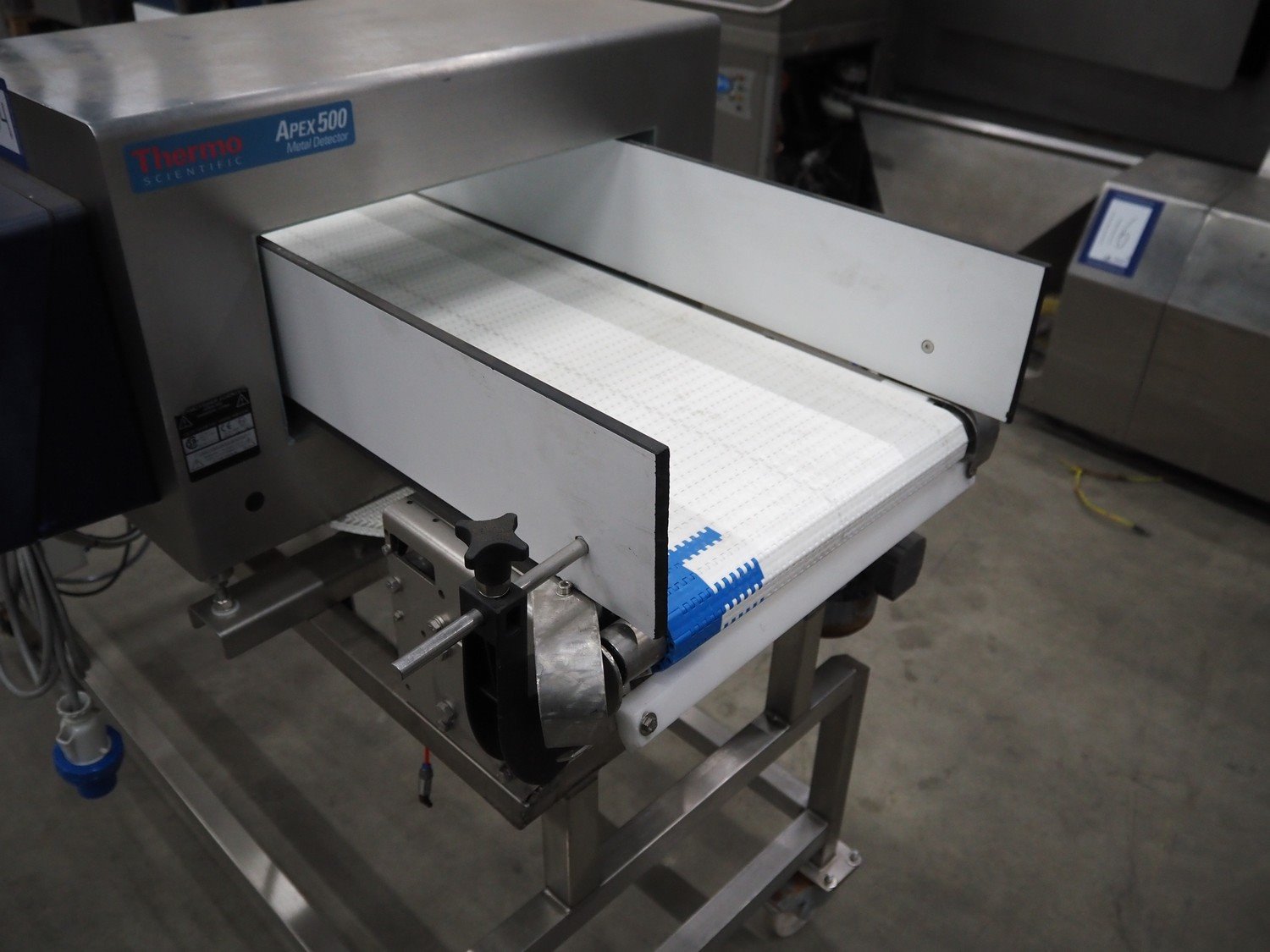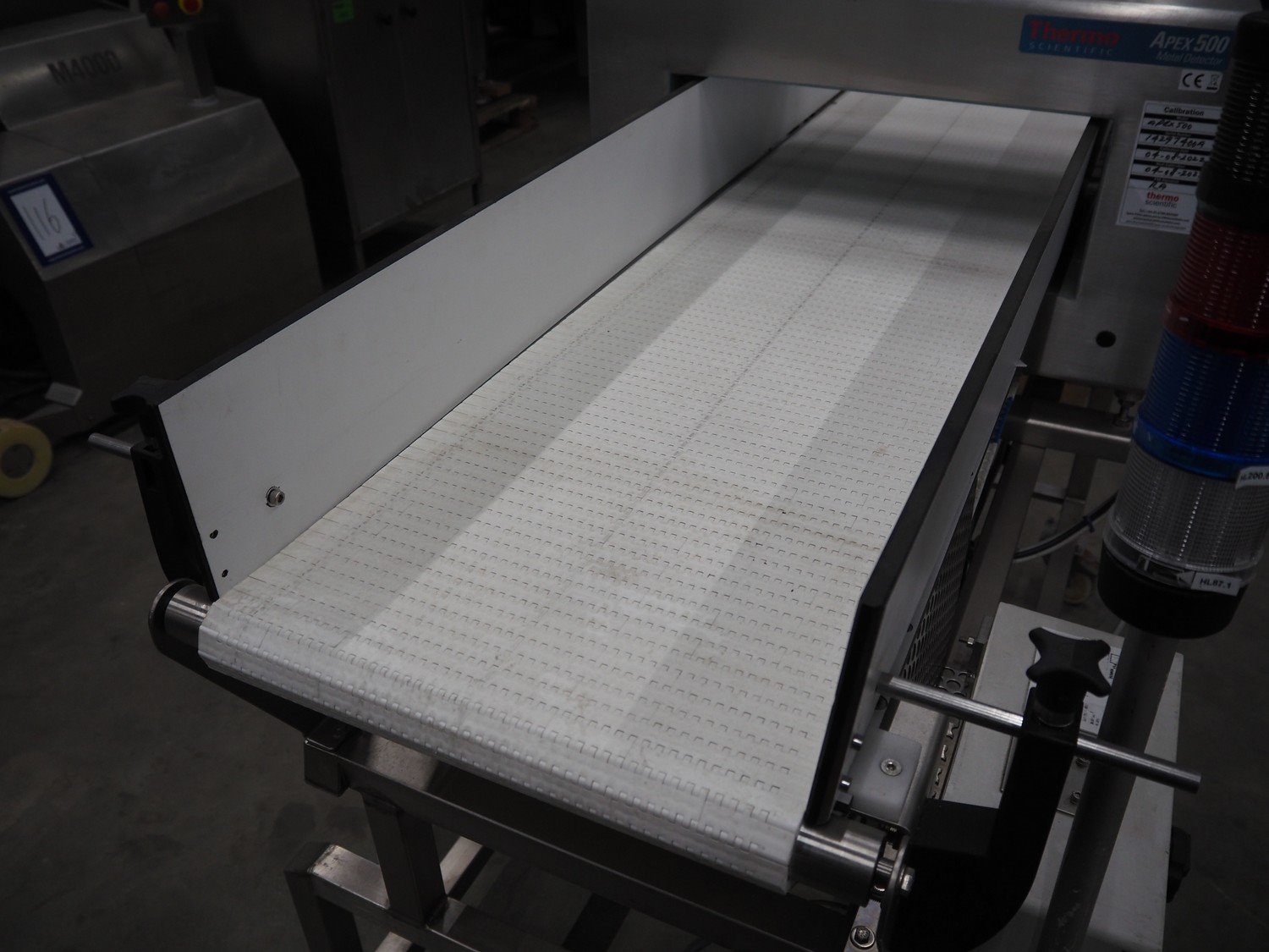 Thermo Fisher Scientific mobile metal detector, type: Apex 500, 120/230 V, 50/60 Hz, 0.4 A, plastic belt, belt width: 400 mm, clearance: 500 mm x 200 mm, total dimensions: 1750 mm x 900 mm x 1230 mm. Last calibrated: 04-08-2022. Kavel locatie: Schouwrooij 29, 5281 RE Boxtel, Nederland