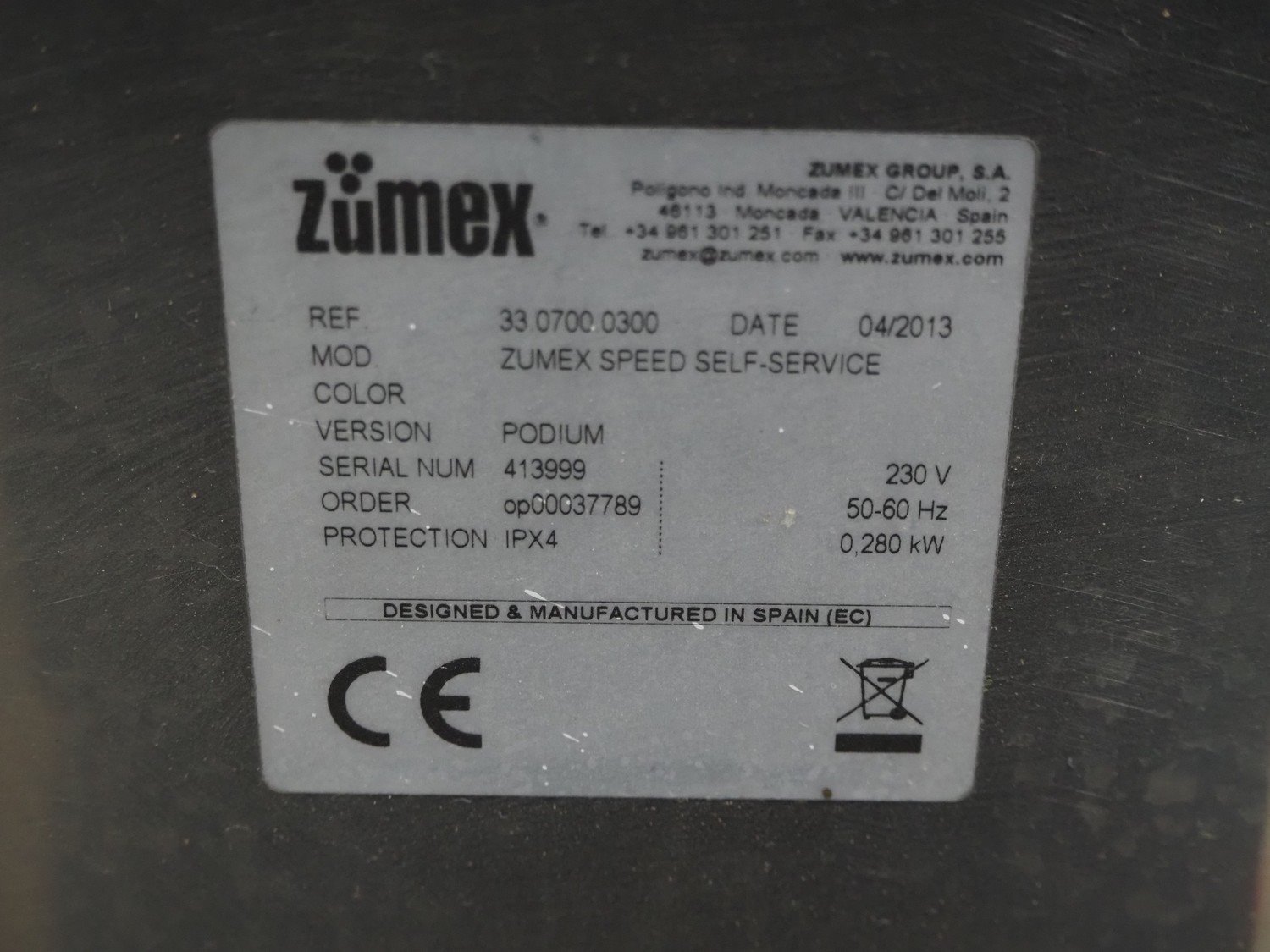 Zumex mobile juicer, model: ZUMEX SPEED SELF-SERVICE, serial number: 413999, year of construction: 04/2013, 230 V, 50/60 Hz, 0.280 kW, dimensions: 700 mm x 680 mm x 1750 mm. Kavel locatie: Schouwrooij 29, 5281 RE Boxtel, Nederland