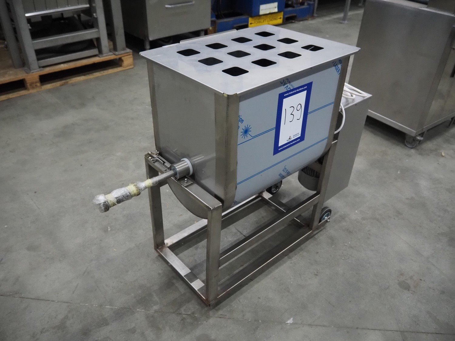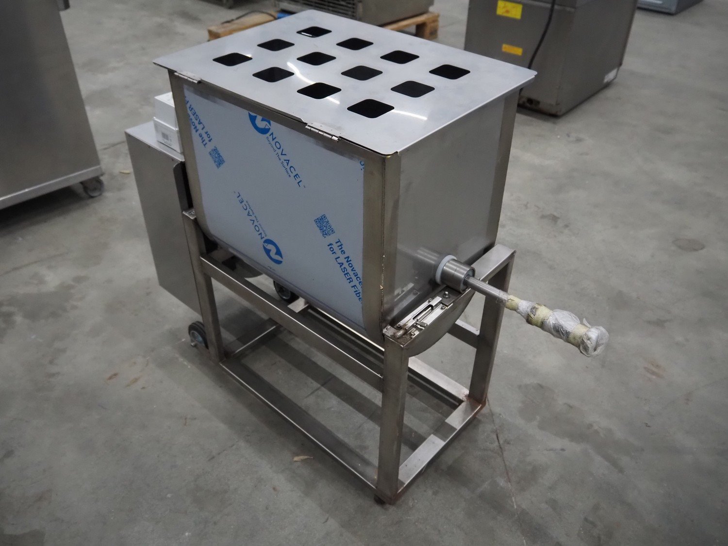 Mobile tiltable mixer, dimensions inside: 500 mm x 345 mm x 480 mm, total dimensions: 1100 mm x 400 mm x 820 mm. Kavel locatie: Schouwrooij 29, 5281 RE Boxtel, Nederland