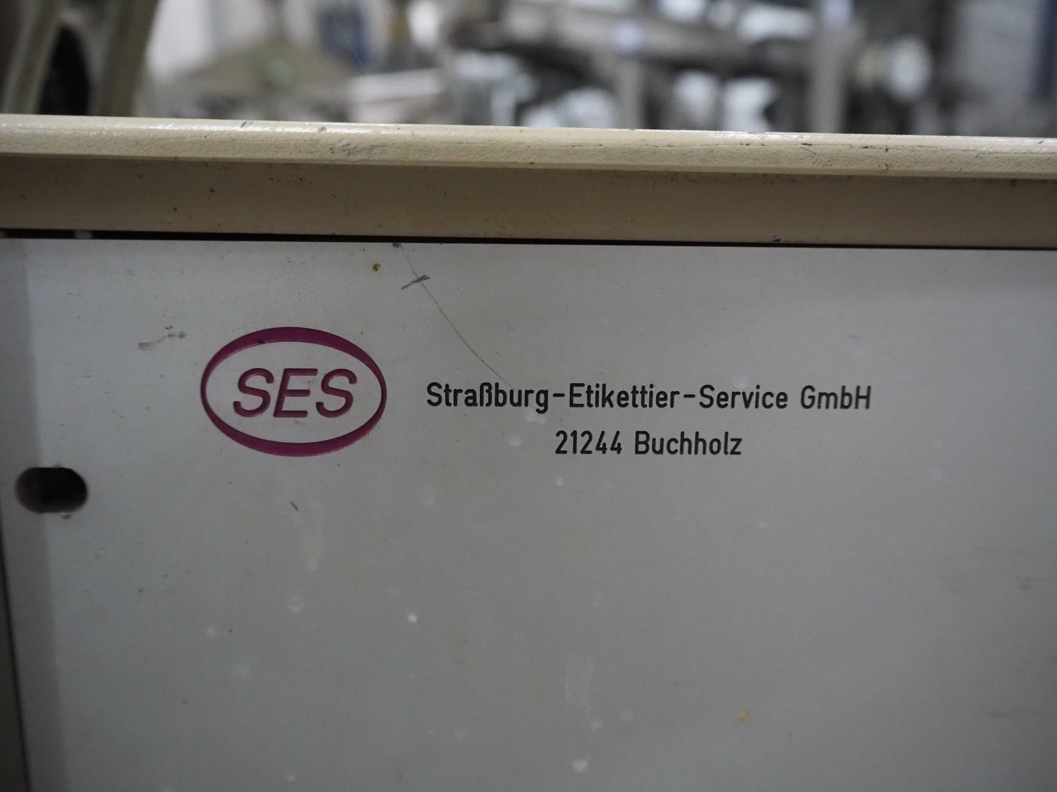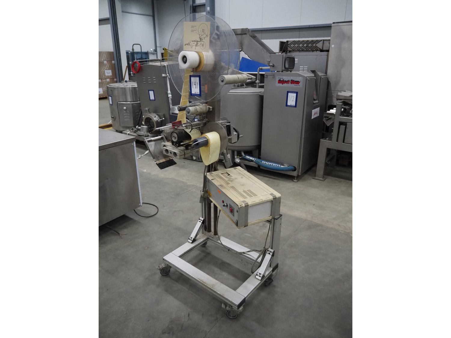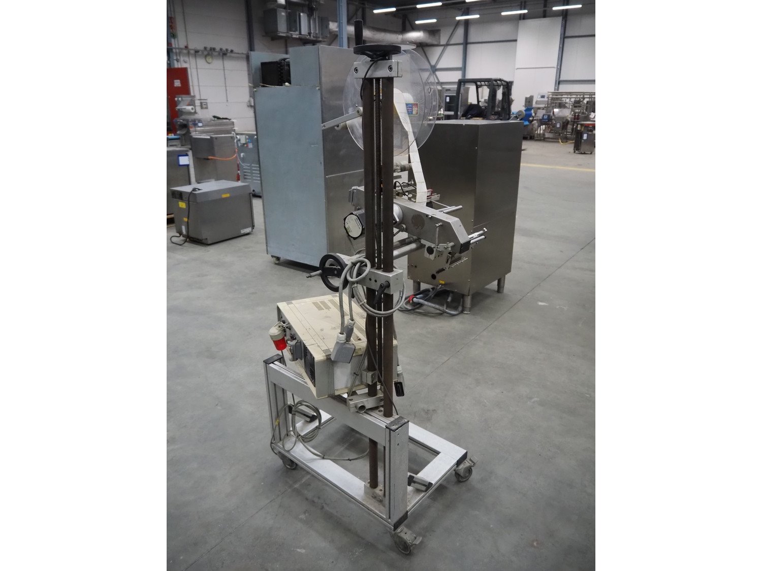 SES mobile labelling machine, dimensions: 750 mm x 750 mm x 1760 mm. Kavel locatie: Schouwrooij 29, 5281 RE Boxtel, Nederland