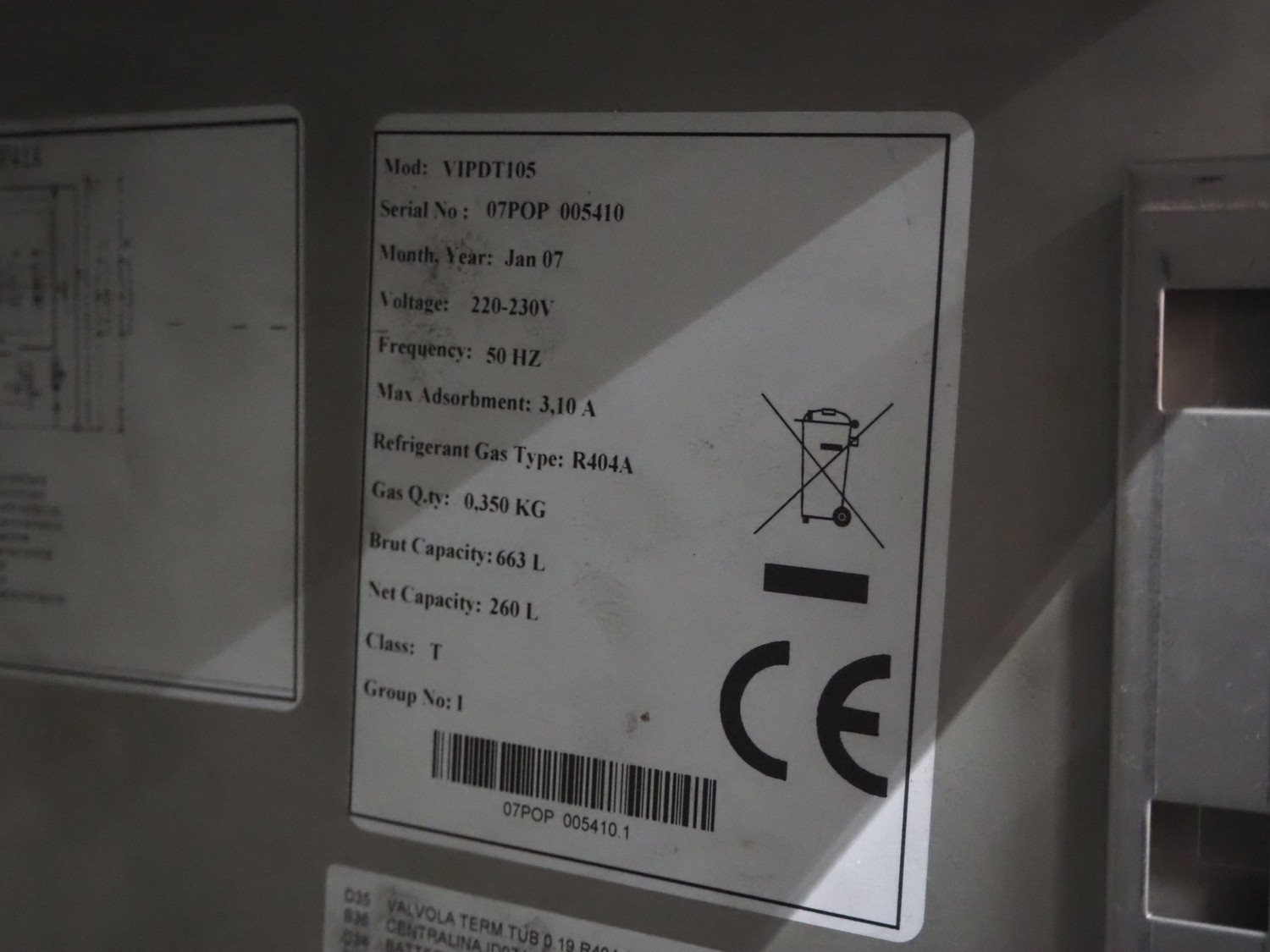 Refrigerated counter, model: VIPDT105, serial number: 07POP 005410, year of construction: jan 07, 220-230 V, 50 Hz, 3.1 A, refrigerant: R404A, capacity: 260 liter, dimensions: 1100 mm x 700 mm x 880 mm. Kavel locatie: Schouwrooij 29, 5281 RE Boxtel, Nederland
