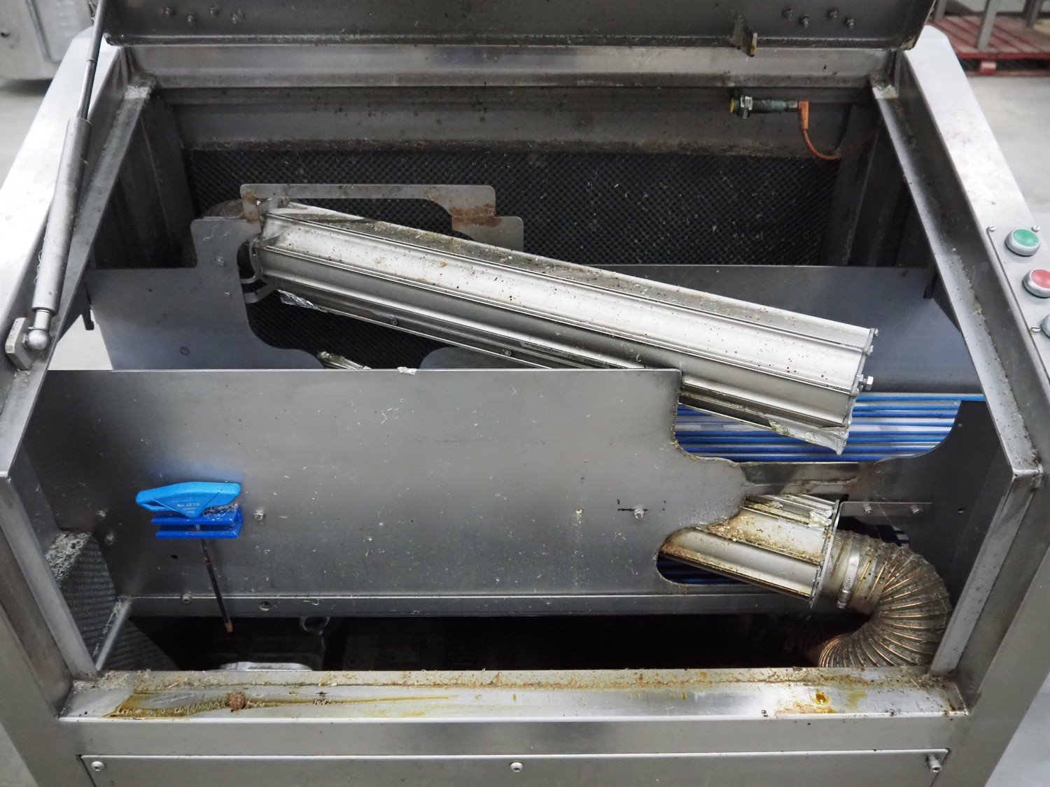 Mobile dryer with plastic wired belt, belt width: 150 mm, clearance: 210 mm x 120 mm, total dimensions: 1410 mm x 600 mm x 1400 mm. Kavel locatie: Schouwrooij 29, 5281 RE Boxtel, Nederland