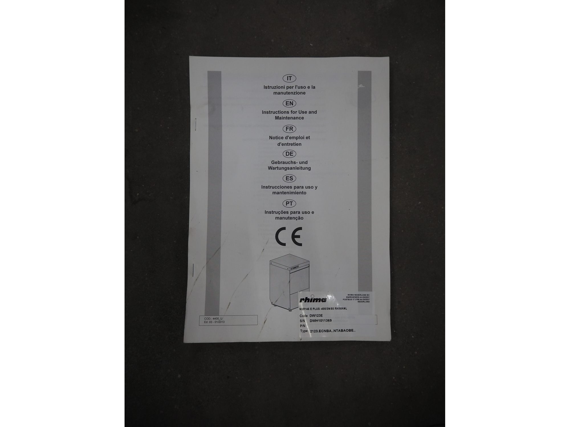 Rhima dishwasher, model: MDR145, serial number: DWH1011369, year of construction: 2014, 400 V, 3 Ph, 50 Hz, 1250 W, dimensions: 600 mm x 700 mm x 1400 mm. Kavel locatie: Schouwrooij 29, 5281 RE Boxtel, Nederland