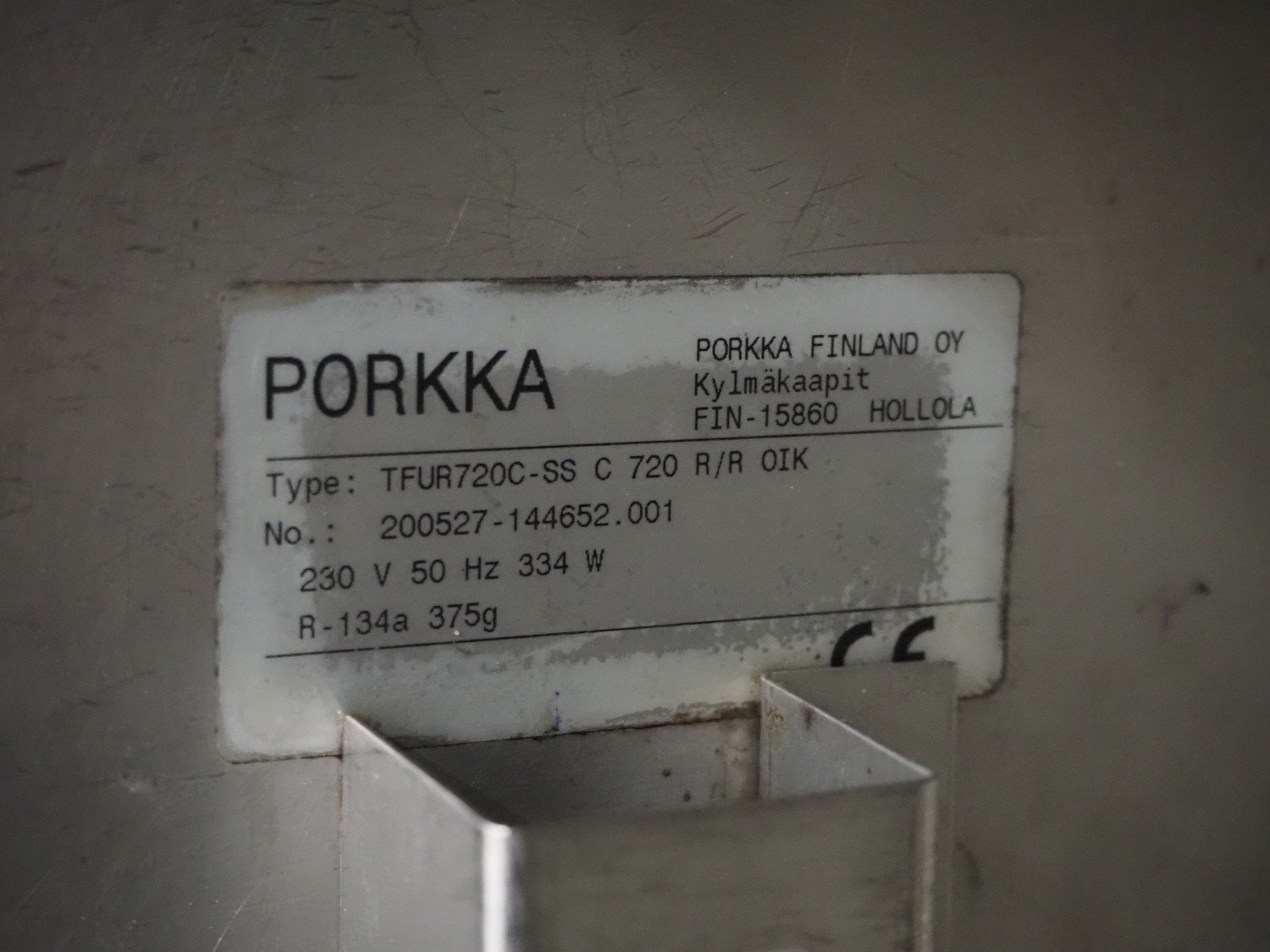 Porkka refrigerator, type: TFUR720C-SS C 720 R/R OIK, number: 200527-144652.001, 230 V, 50 Hz, 334 Watt, refrigerant: R-134a, 375 gram, dimensions: 850 mm x 710 mm x 1980 mm. Kavel locatie: Schouwrooij 29, 5281 RE Boxtel, Nederland