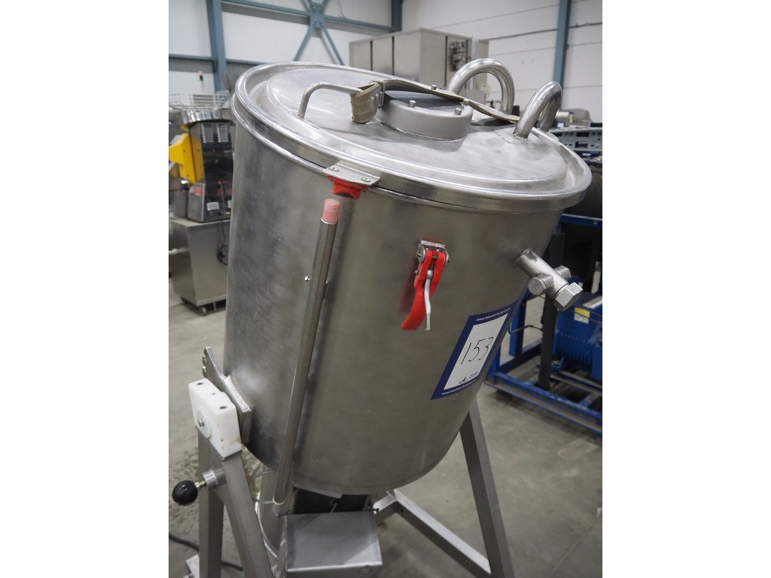 Mobile tiltable tumbler, dimensions inside: 600 mm x 600 mm x 550 mm, total dimensions: 860 mm x 860 mm x 1660 mm. Kavel locatie: Schouwrooij 29, 5281 RE Boxtel, Nederland
