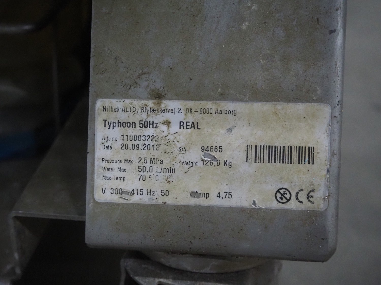 Nilfisk mobile high pressure cleaner, model: Typhoon 50HZ, serial number: 94665, year of construction: 20.09.2013, 380 V, 50 Hz, 4.75 A, weight: 126 kg, max temperature: 70 ⁰C, maximum water supply: 50 litres per minute, dimensions: 1450 mm x 600 mm x 1020 mm. Kavel locatie: Schouwrooij 29, 5281 RE Boxtel, Nederland