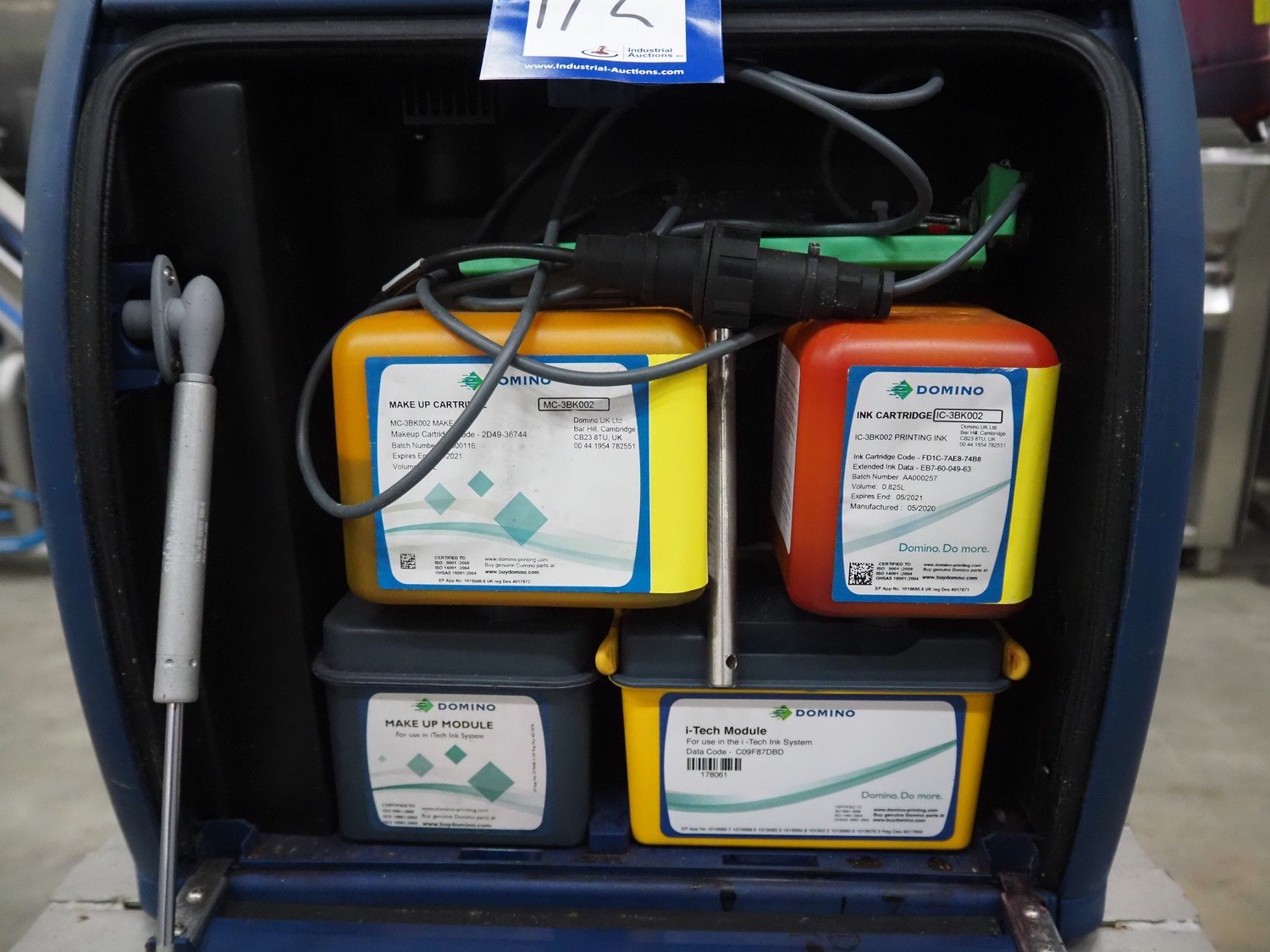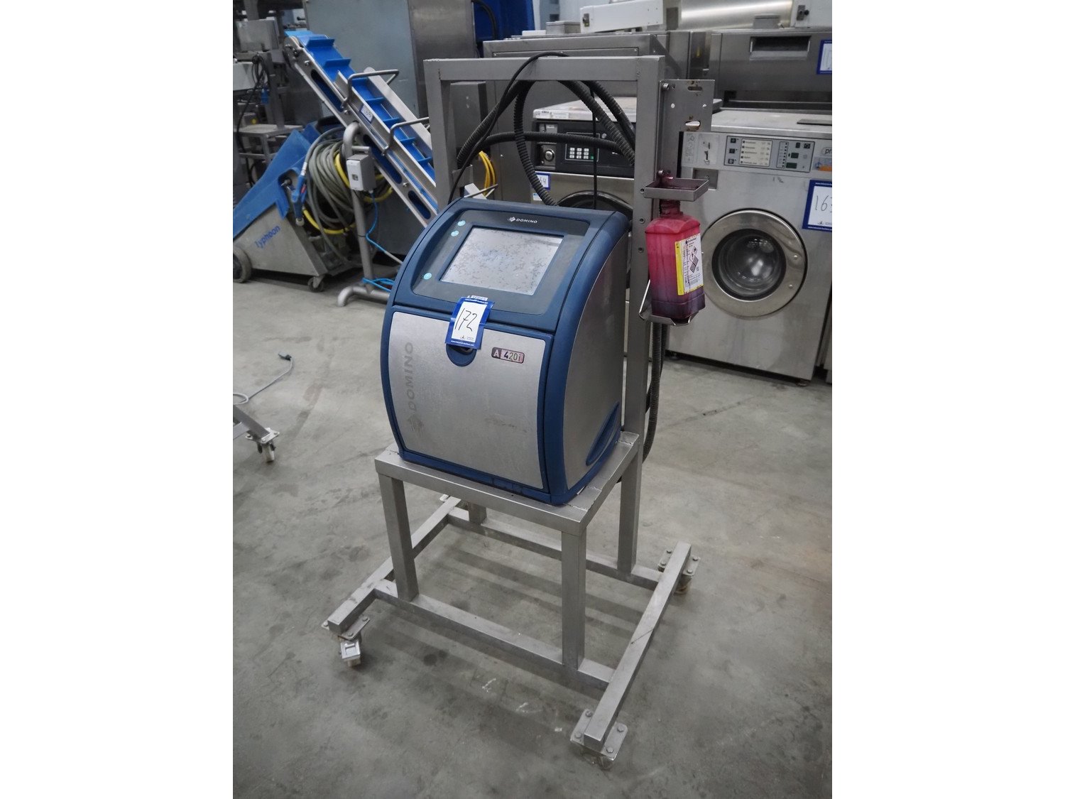 Domino mobile inkjet printer, model: A420i, serial number: AST000104778, 100-240 V, 50-60 Hz, 4 A, dimensions: 820 mm x 680 mm x 1430 mm. Incomplete. Kavel locatie: Schouwrooij 29, 5281 RE Boxtel, Nederland