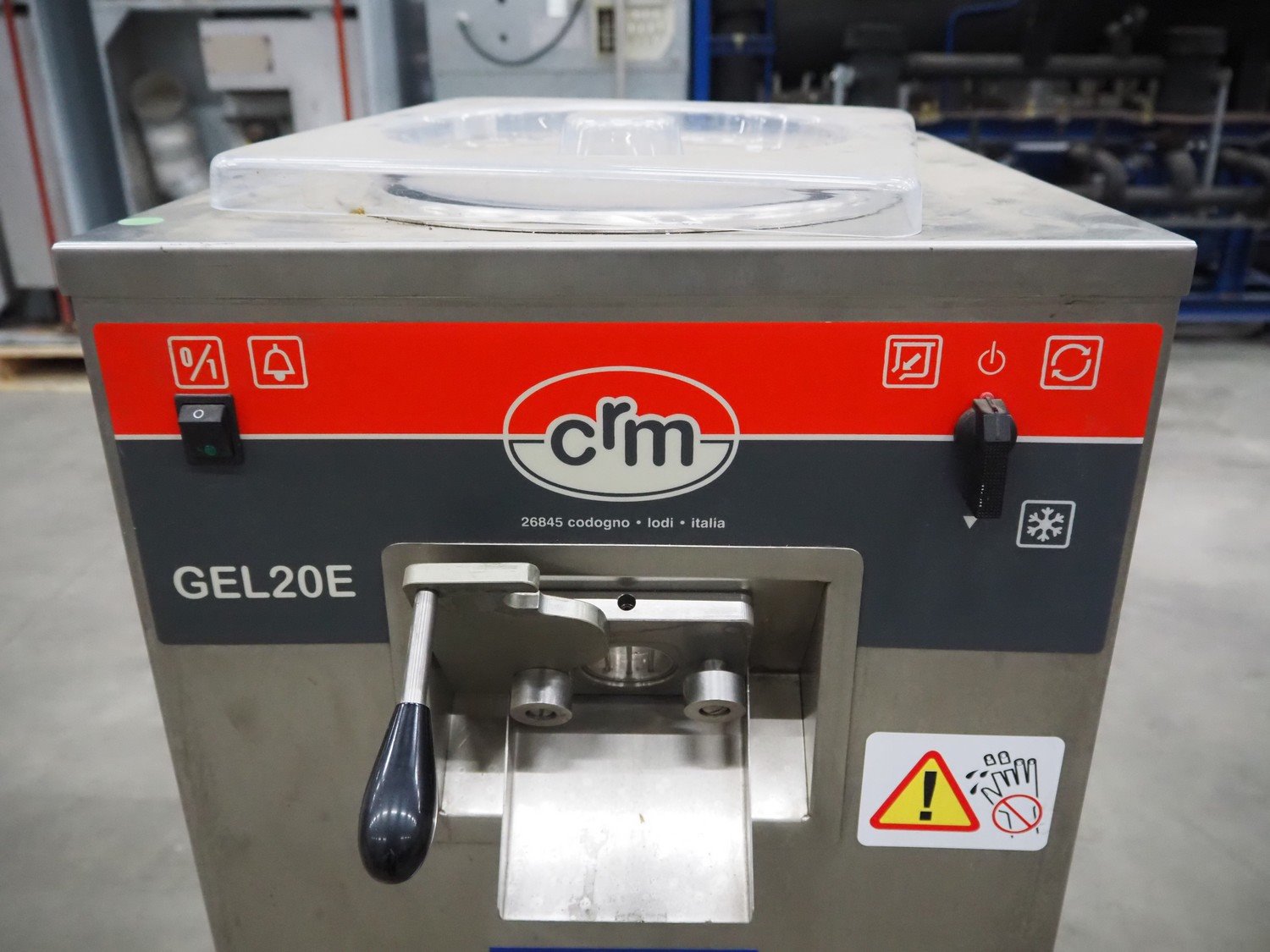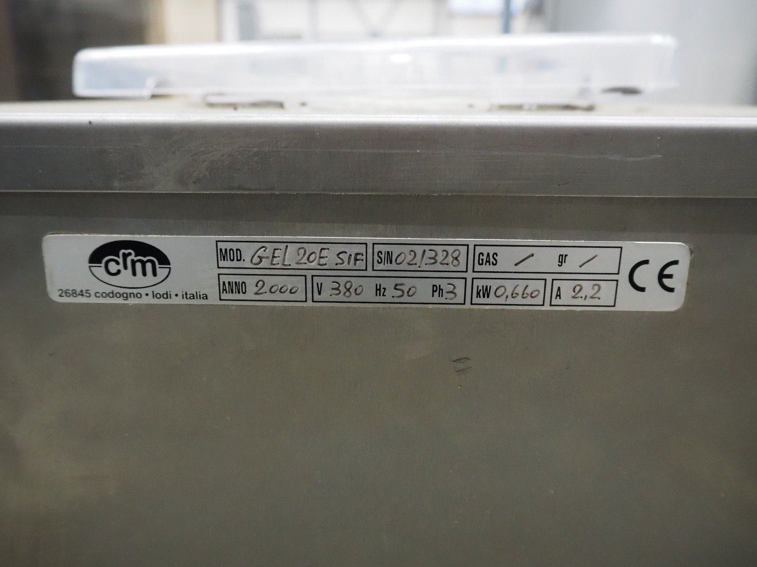 CRM mobile ice cream machine, model: GEL20E SIF, serial number: 02/328, year of construction: 2000, 380 V, 3 Ph, 50 Hz, 2.2 A, 0.66 kW, dimensions: 640 mm x 460 mm x 1000 mm. Missing 1 cover. Kavel locatie: Schouwrooij 29, 5281 RE Boxtel, Nederland