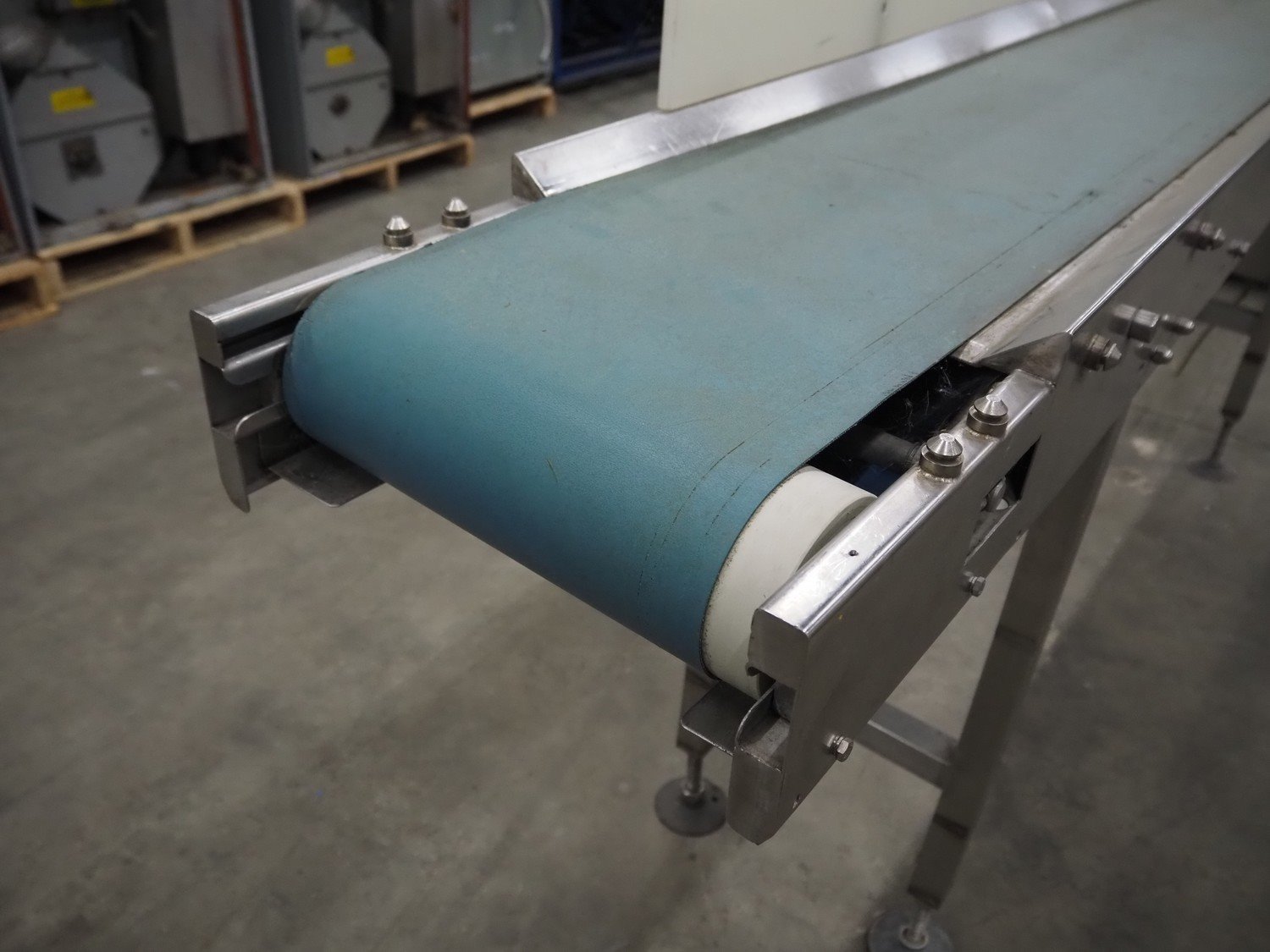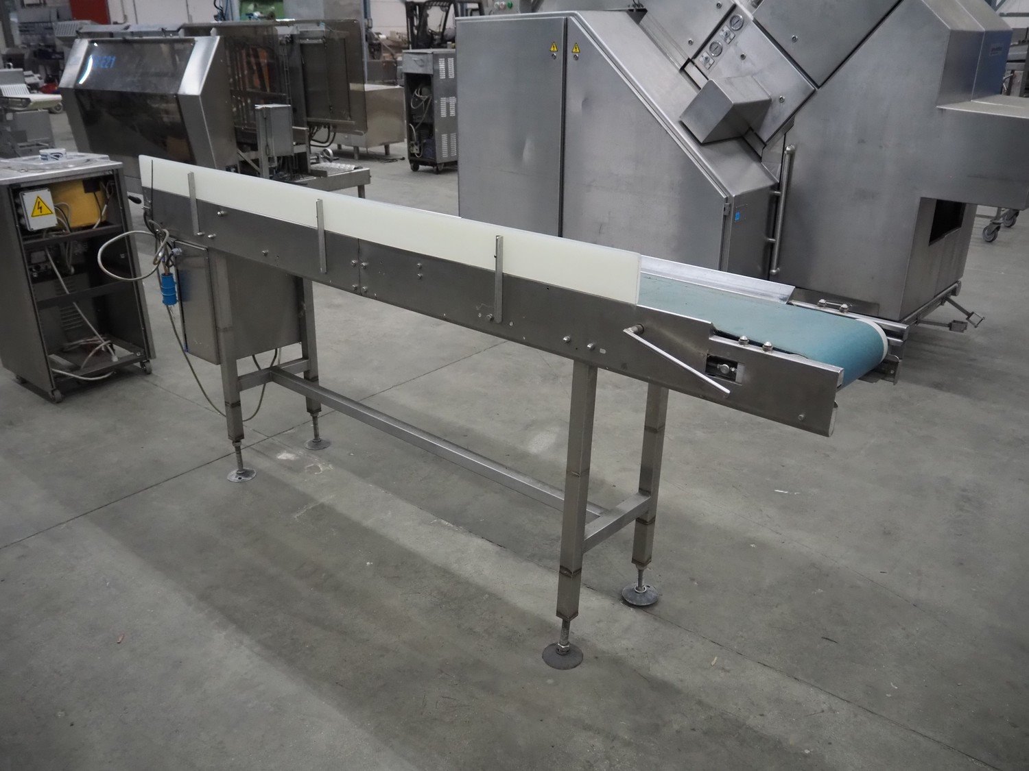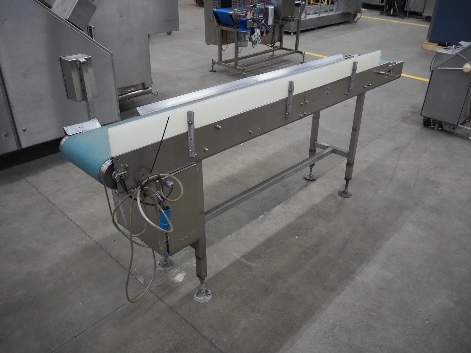 Transport belt, s/s frame, plastic belt, belt width: 300 mm, total dimensions: 2500 mm x 500 mm x 1200 mm. Kavel locatie: Schouwrooij 29, 5281 RE Boxtel, Nederland