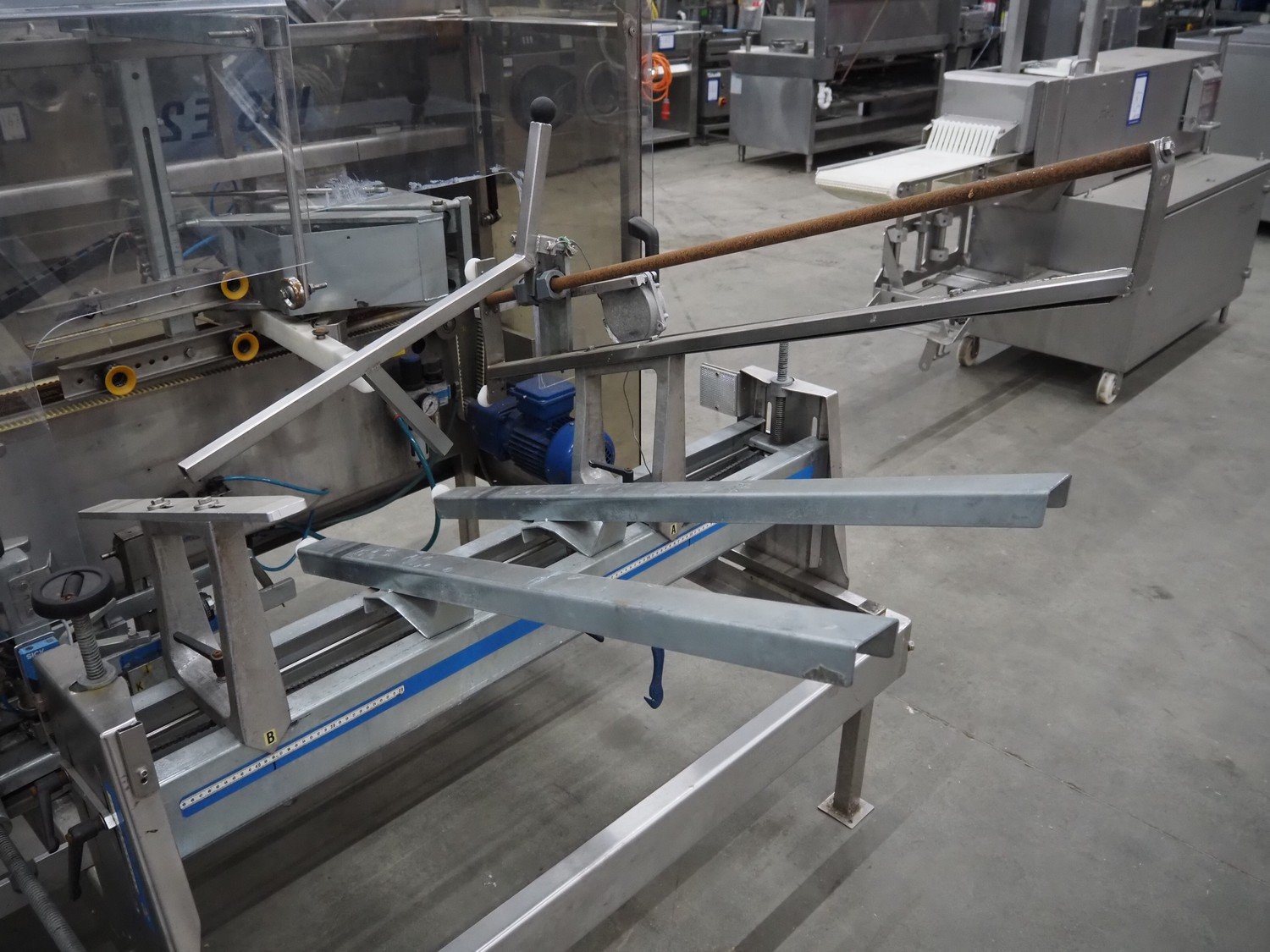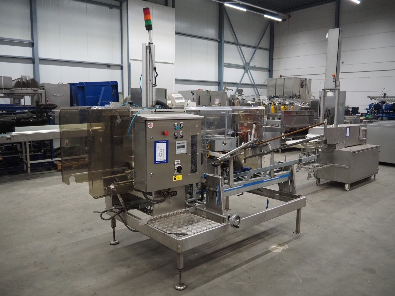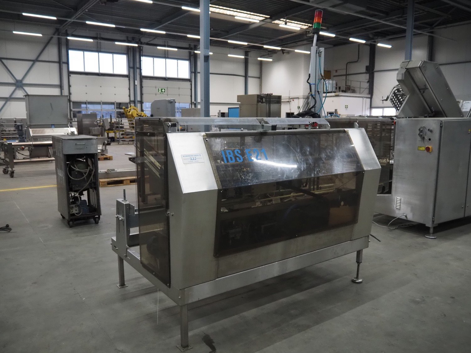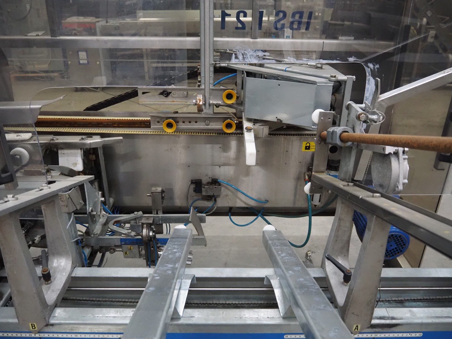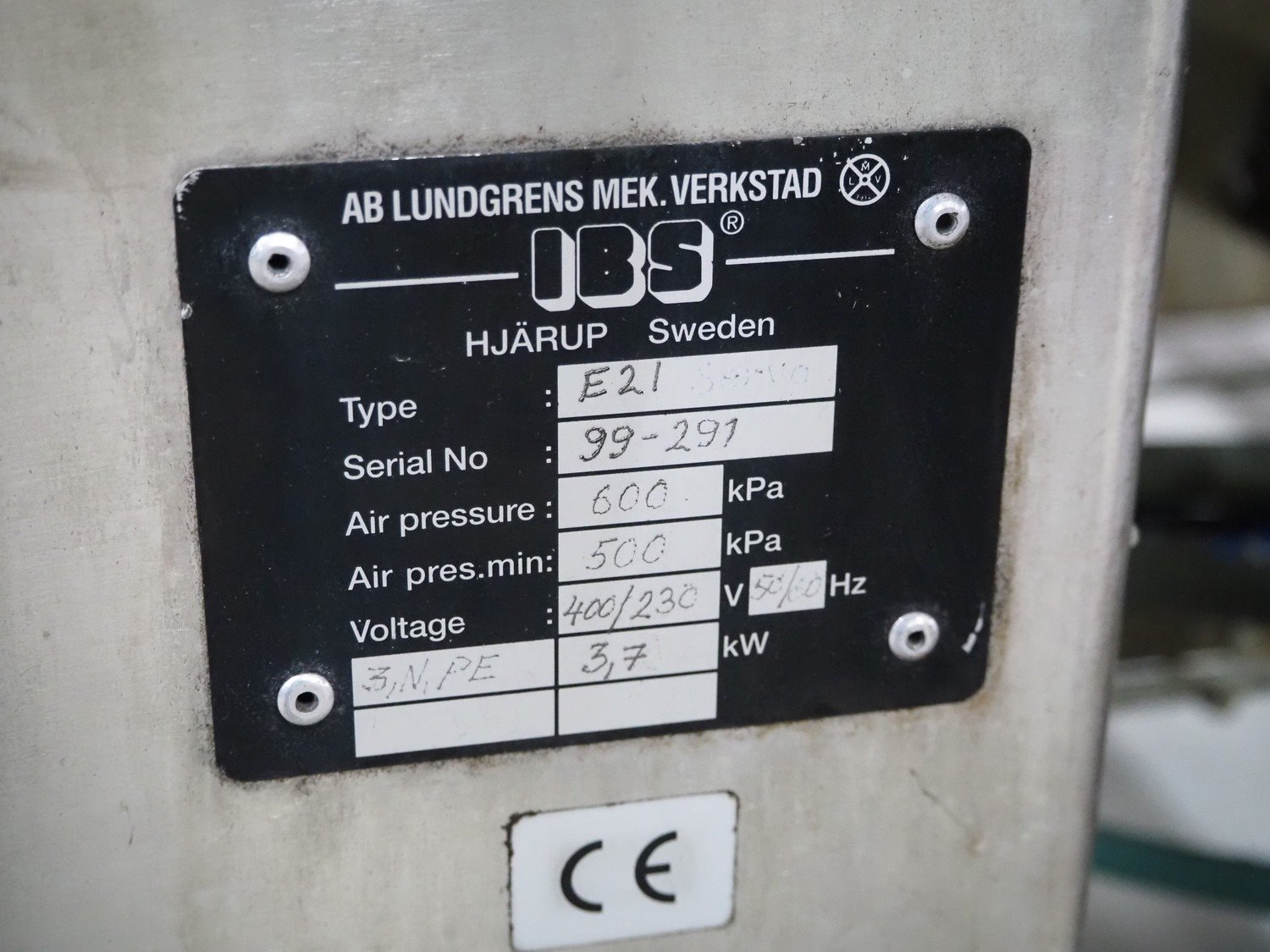 Lundgrens IBS carton erector, type: E21, serial number: 99-291, 230/400 V, 3 Ph, 50/60 Hz, 3.7 kW, air pressure: 600 kPa, infeed width: 630 mm, total dimensions: 2500 mm x 1900 mm x 2250 mm. Kavel locatie: Schouwrooij 29, 5281 RE Boxtel, Nederland