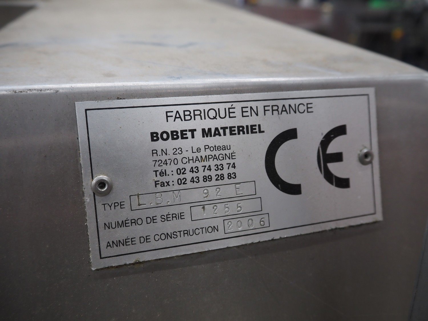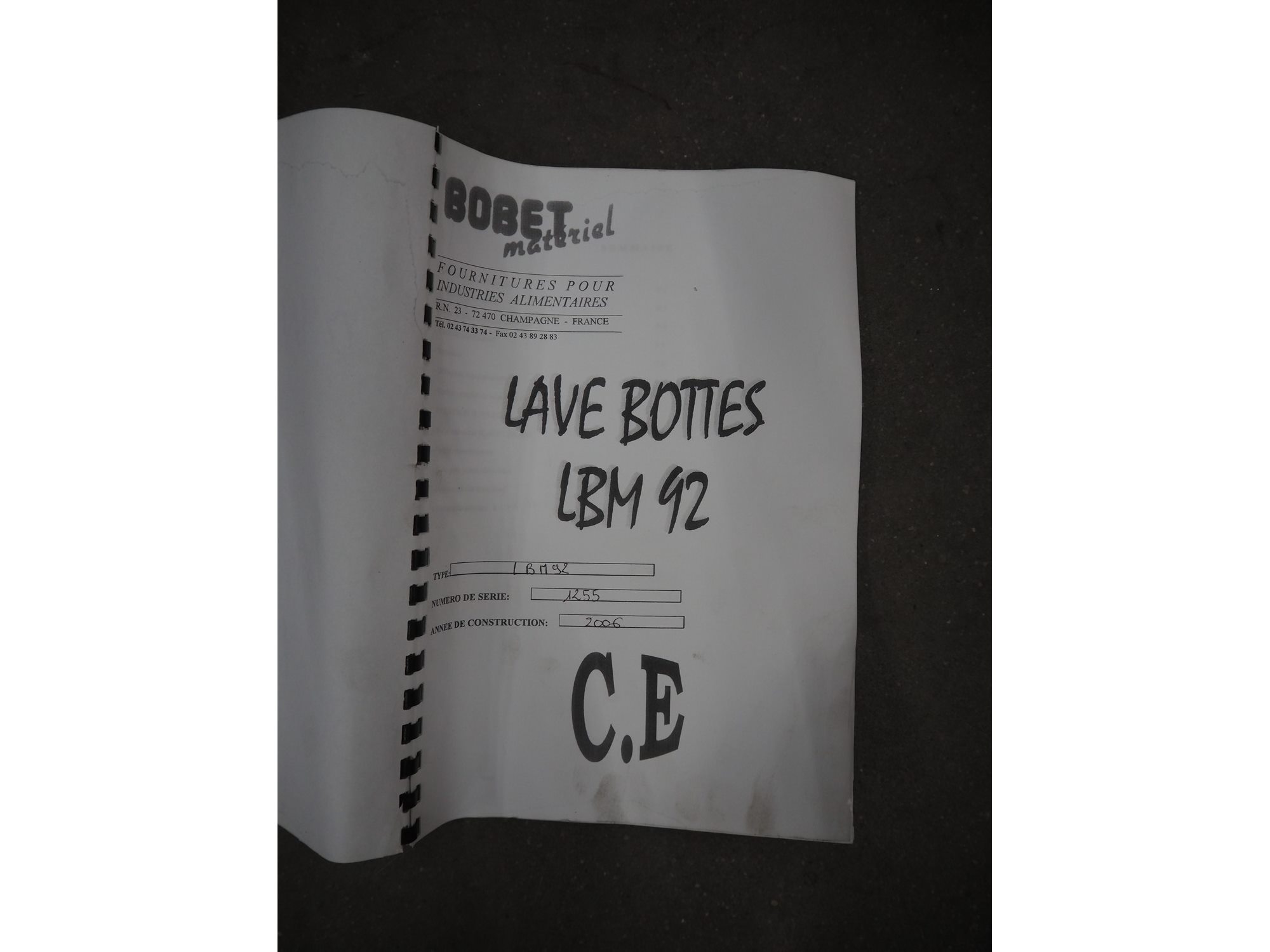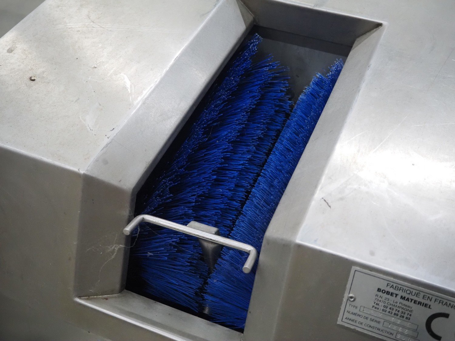 Bobet Materiel boot cleaner, type: L.B.M 92E, serial number: 1255, year of construction: 2006, 400 V, 3 Ph, 50 Hz, 0.75 kW, weight: 110 kg, brush length: (2x) 350 mm, total dimensions: 1500 mm x 600 mm x 1280 mm. Kavel locatie: Schouwrooij 29, 5281 RE Boxtel, Nederland