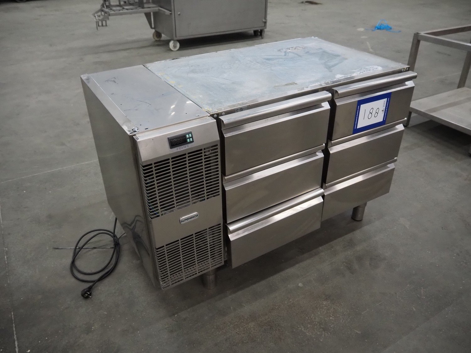 Alpeninox refrigerated counter with 6 drawers, model: HB2PNT, serial number: 61510001, inside dimensions: (6x) 300 mm x 520 mm x 100 mm, total dimensions: 1220 mm x 700 mm x 820 mm. Kavel locatie: Schouwrooij 29, 5281 RE Boxtel, Nederland