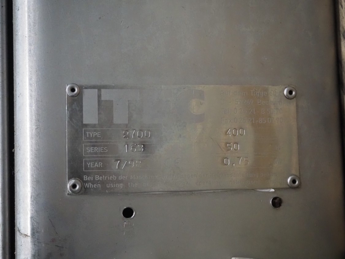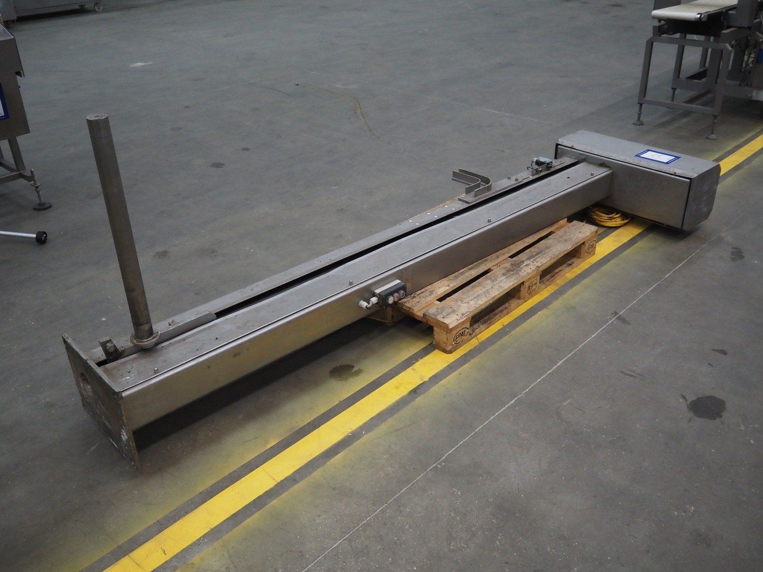 Itec lifter for 200 liter meat bins, type: 2700, series: 163, year of construction: 7/98, 400 V, 50 Hz, lifting height: 2130 mm, total dimensions: 3150 mm x 1000 mm x 1150 mm. Incomplete. Kavel locatie: Schouwrooij 29, 5281 RE Boxtel, Nederland