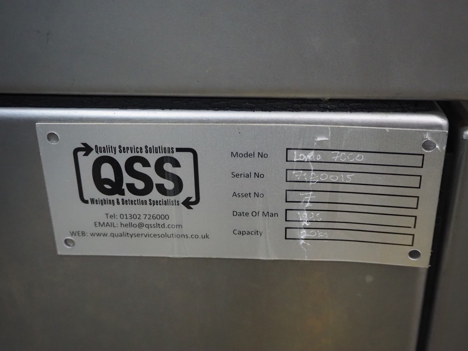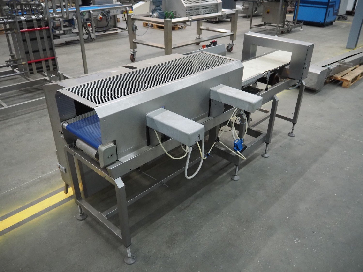 Loma systems checkweigher with metal detector and double rejector, serial number: 71A001, 240 V, 1 Ph, 50 Hz, plastic belt, belt width: 300 mm, clearance: 450 mm x 130 mm, total dimensions: 2750 mm x 1000 mm x 1050 mm. Kavel locatie: Schouwrooij 29, 5281 RE Boxtel, Nederland