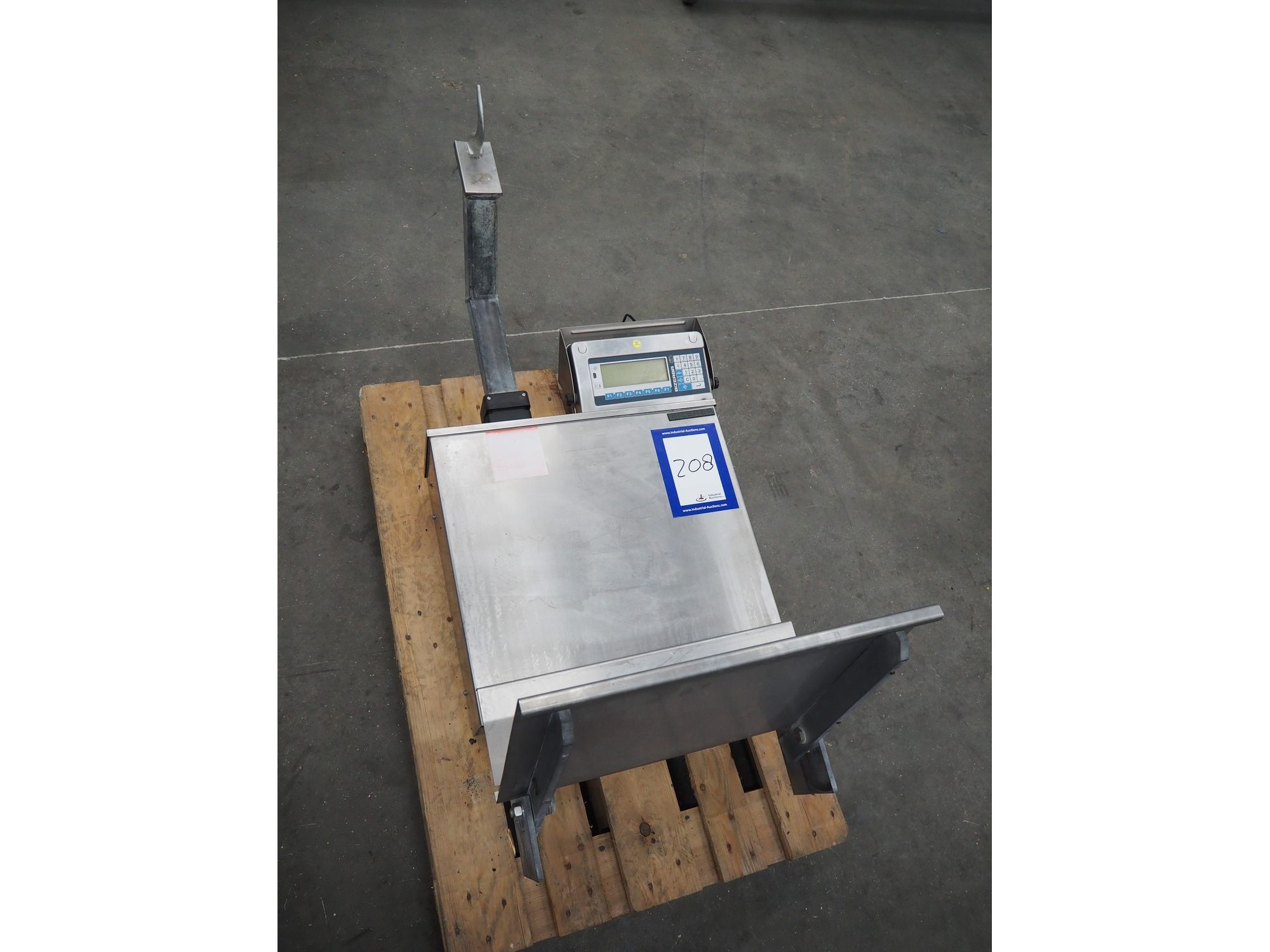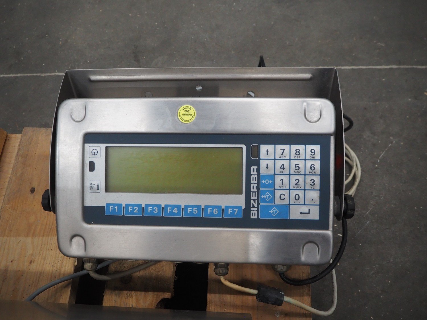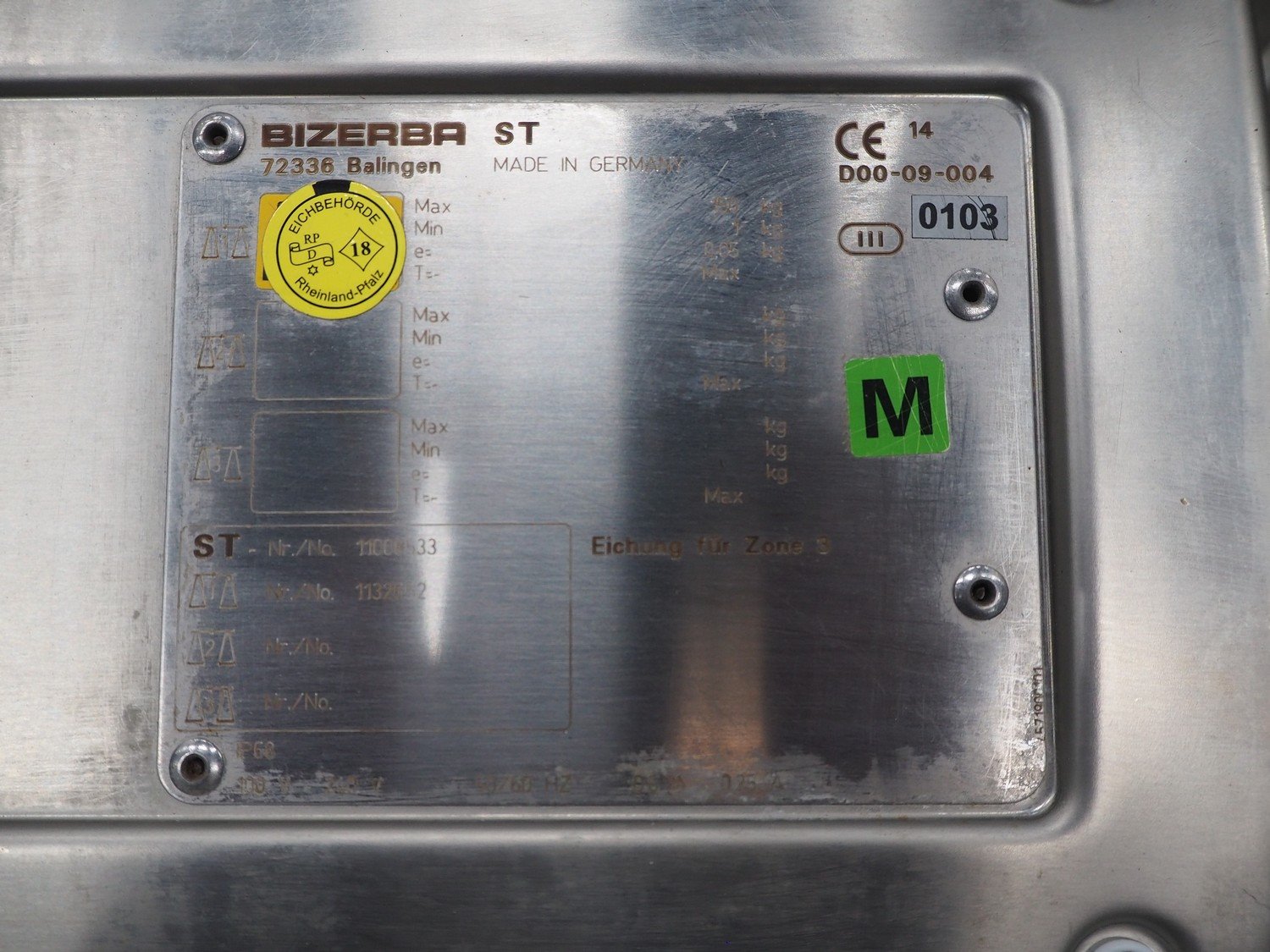 Bizerba hook weighing scale, type: ST, number: 11008533, 240 V, 50/60 Hz, 0.25 A, maximum weight: 150 kg, minimum weight: 1 kg, e= 0.05 kg, dimensions: 600 mm x 700 mm x 1300 mm. Kavel locatie: Schouwrooij 29, 5281 RE Boxtel, Nederland
