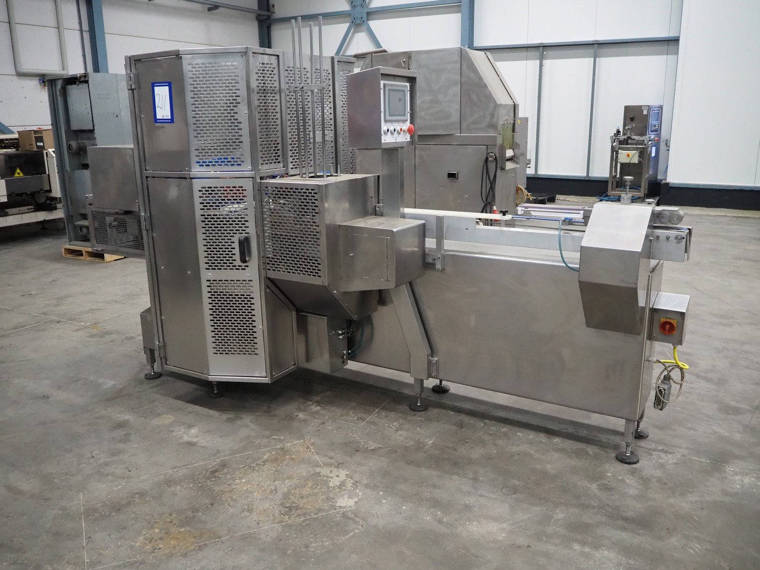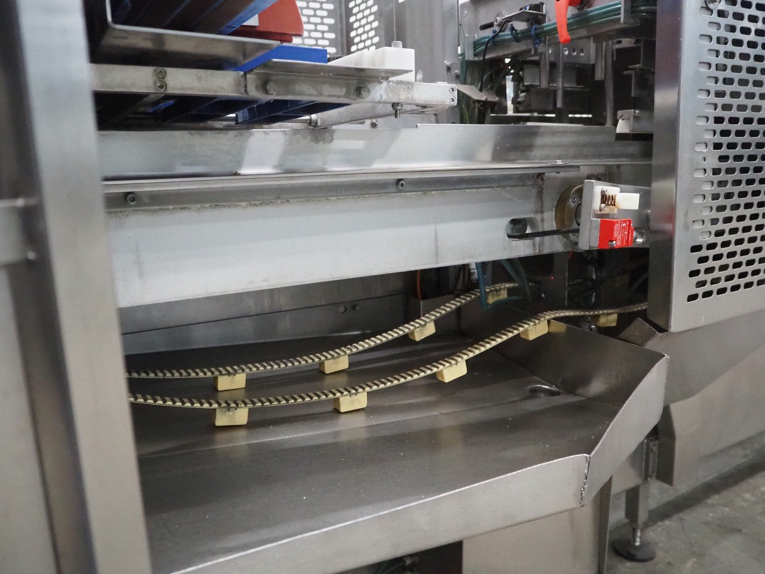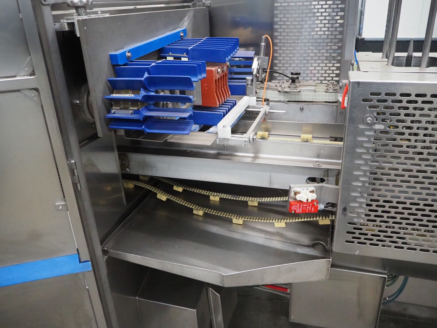 Gainsborough Craftsmen packaging machine for sausages with tray denester, machine number: 1495, year of construction: oct 2005, 415 V, weight: 1500 kg, plastic belt, belt width: 50 mm, tray dimensions: 140 mm x 190 mm, total dimensions: 3350 mm x 1050 mm x 1950 mm. Incomplete. Kavel locatie: Schouwrooij 29, 5281 RE Boxtel, Nederland