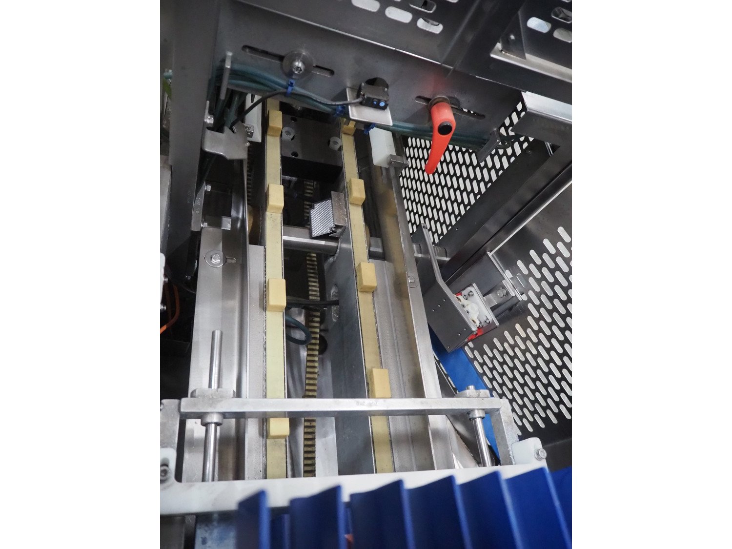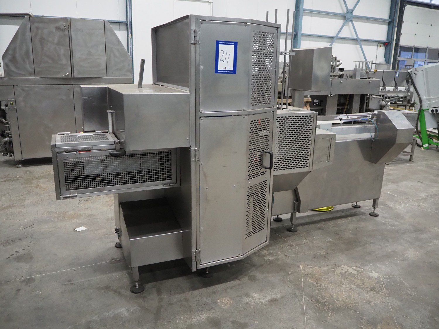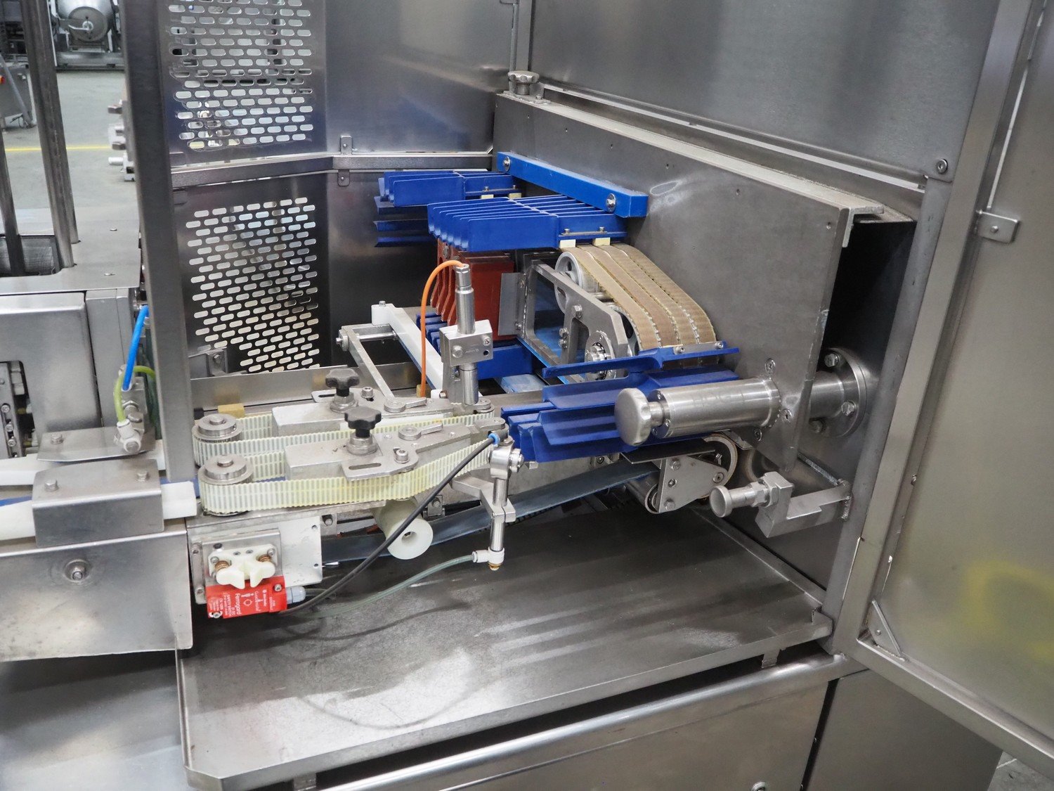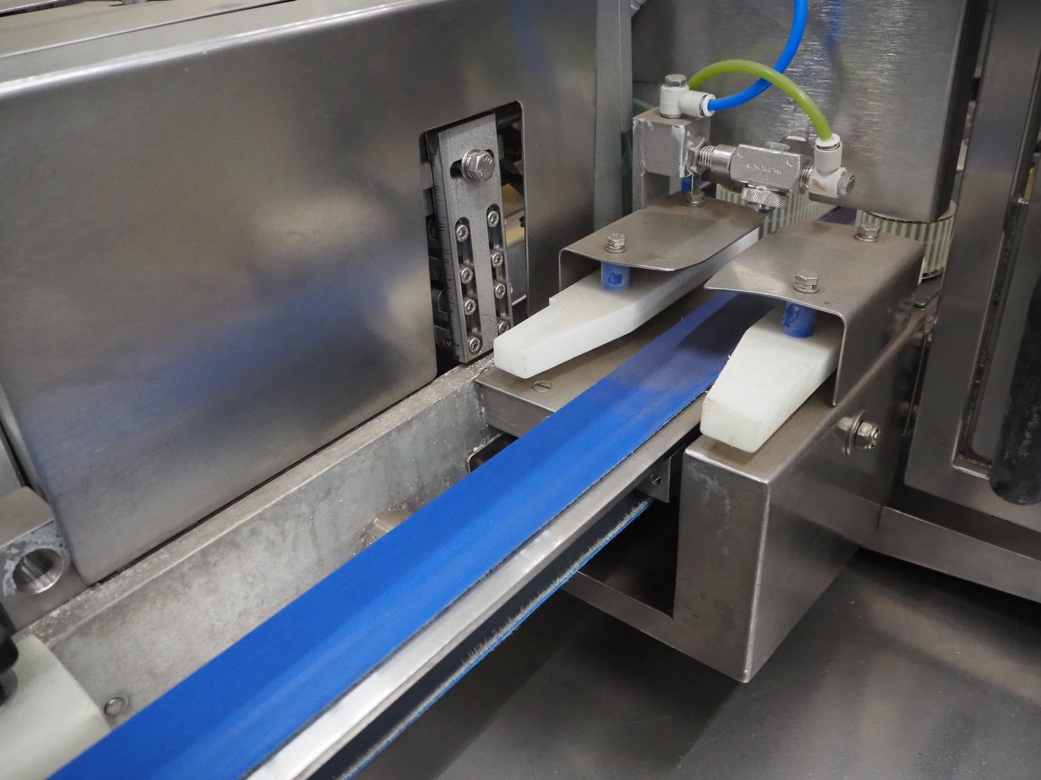Gainsborough Craftsmen packaging machine for sausages with tray denester, machine number: 1495, year of construction: oct 2005, 415 V, weight: 1500 kg, plastic belt, belt width: 50 mm, tray dimensions: 140 mm x 190 mm, total dimensions: 3350 mm x 1050 mm x 1950 mm. Incomplete. Kavel locatie: Schouwrooij 29, 5281 RE Boxtel, Nederland