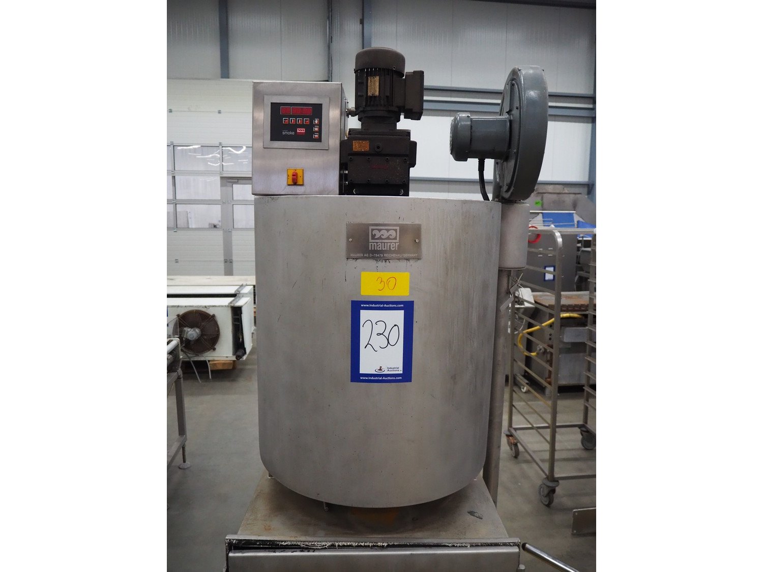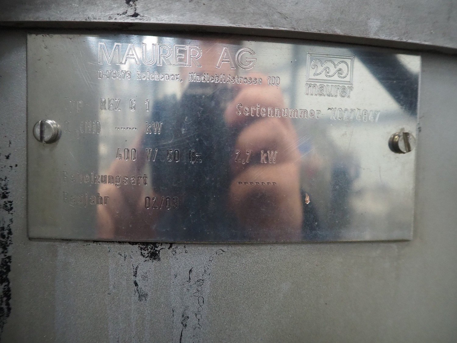 Maurer AG smoke generator for wood chips, type: REZ G 1, serial number: X0274847, year of construction: 02/03, 400 V, 50 Hz, 2.7 kW, dimensions: 1150 mm x 870 mm x 2200 mm. Kavel locatie: Schouwrooij 29, 5281 RE Boxtel, Nederland