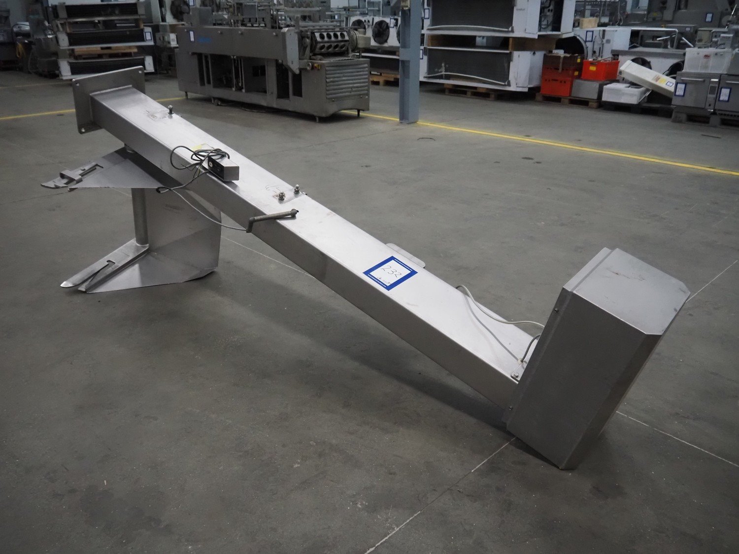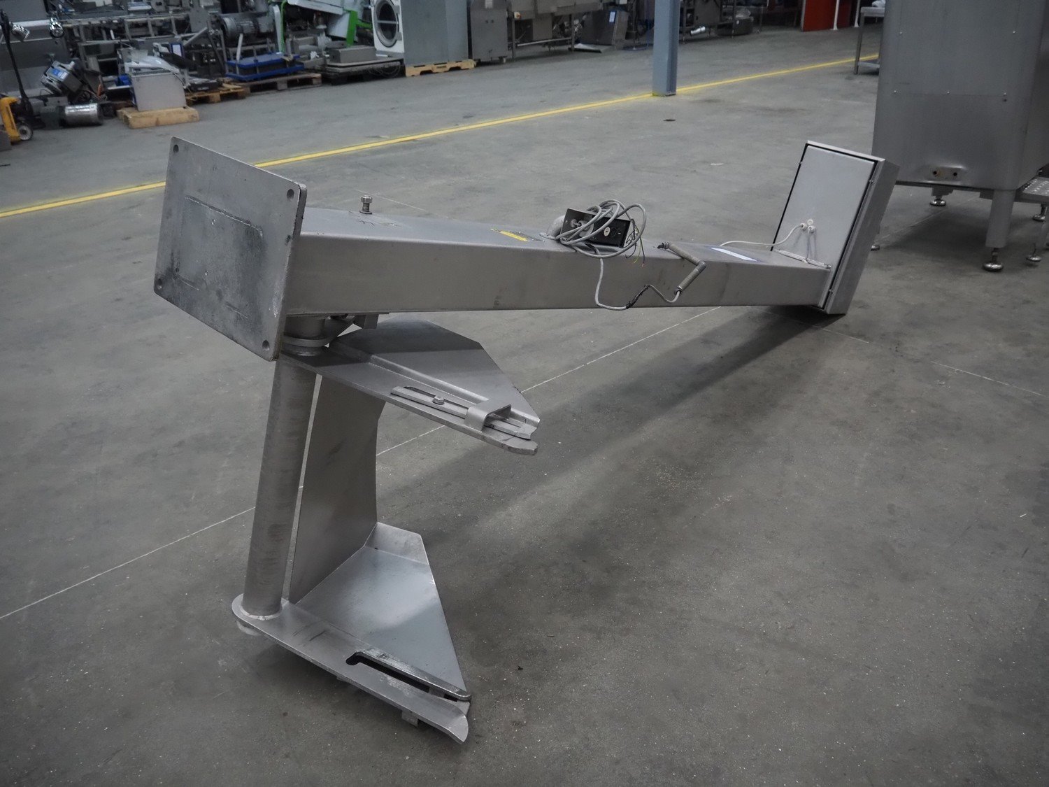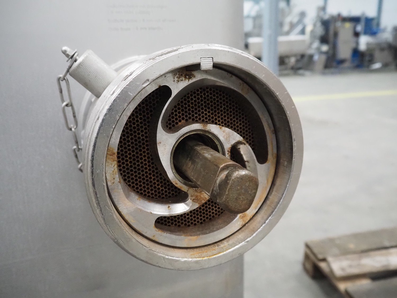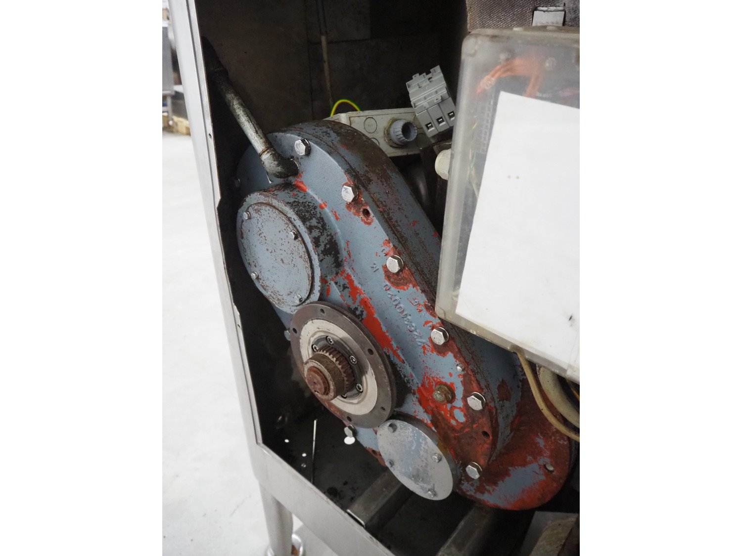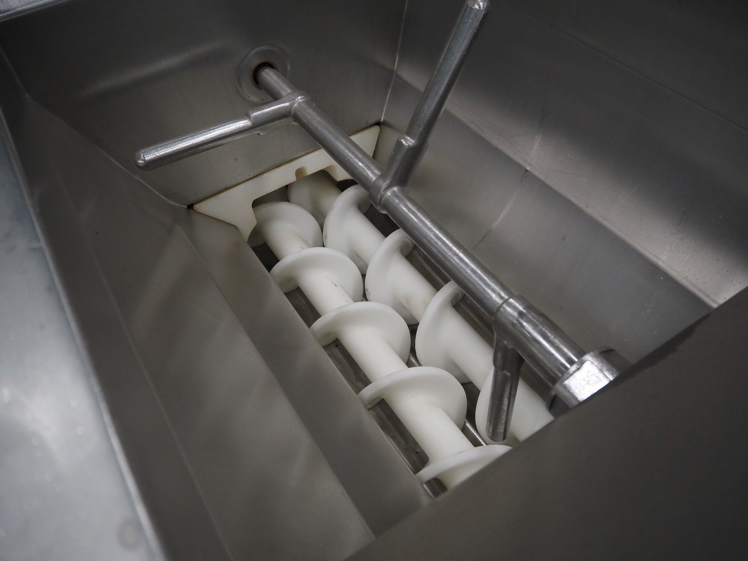 Mado mixer-grinder with Carsø lifter for 200 liter meat bins, diameter plate: 160 mm, dimensions mixer-ginder: 1320 mm x 1100 mm x 1850 mm, lifter type: HKV200, serial number: 94606, year of construction: 2001, 400 V, 3 Ph, 0.75 kW, lifting height: 2000 mm, dimensions lifter: 3300 mm x 1400 mm x 700 mm. Kavel locatie: Schouwrooij 29, 5281 RE Boxtel, Nederland