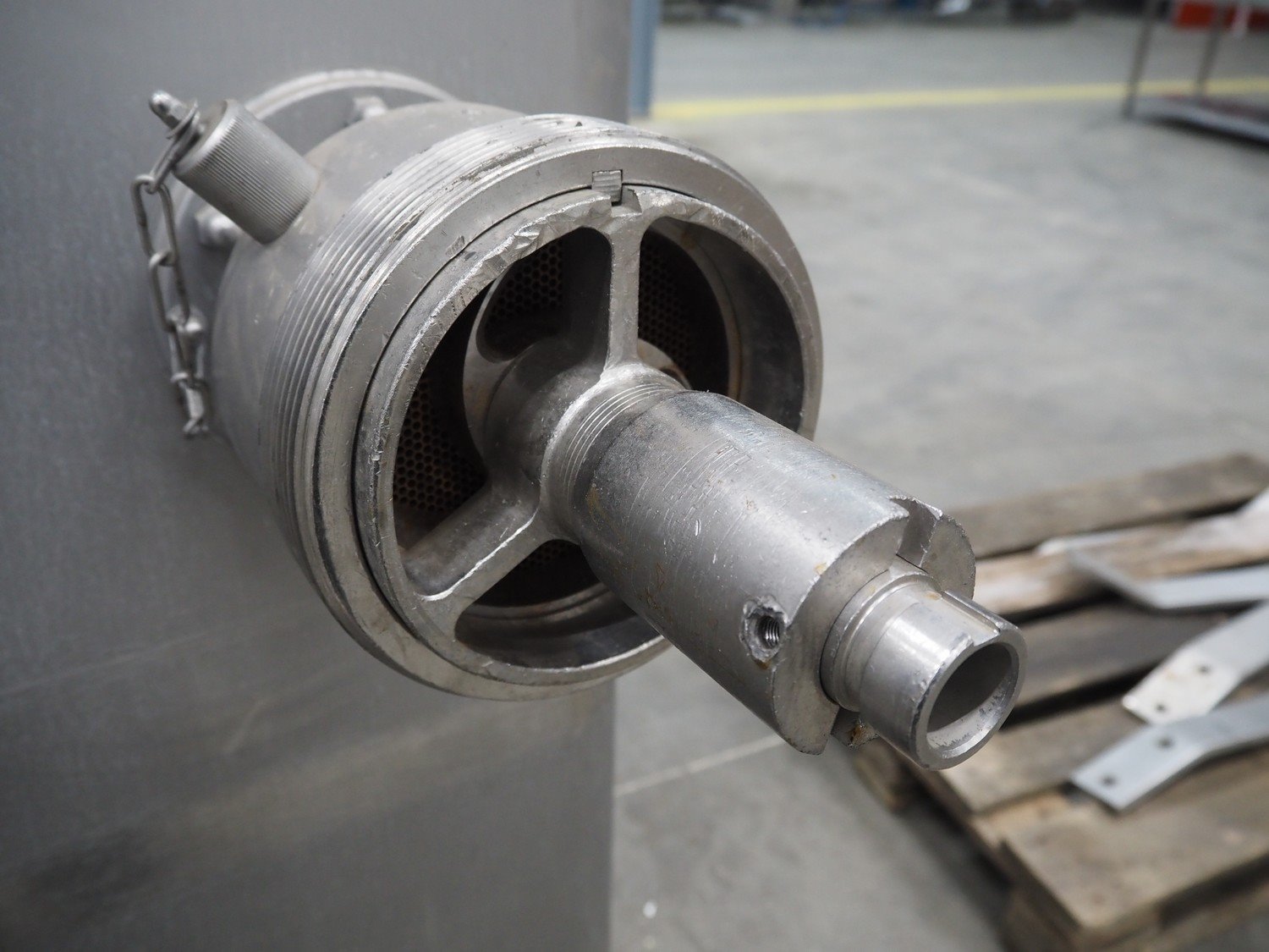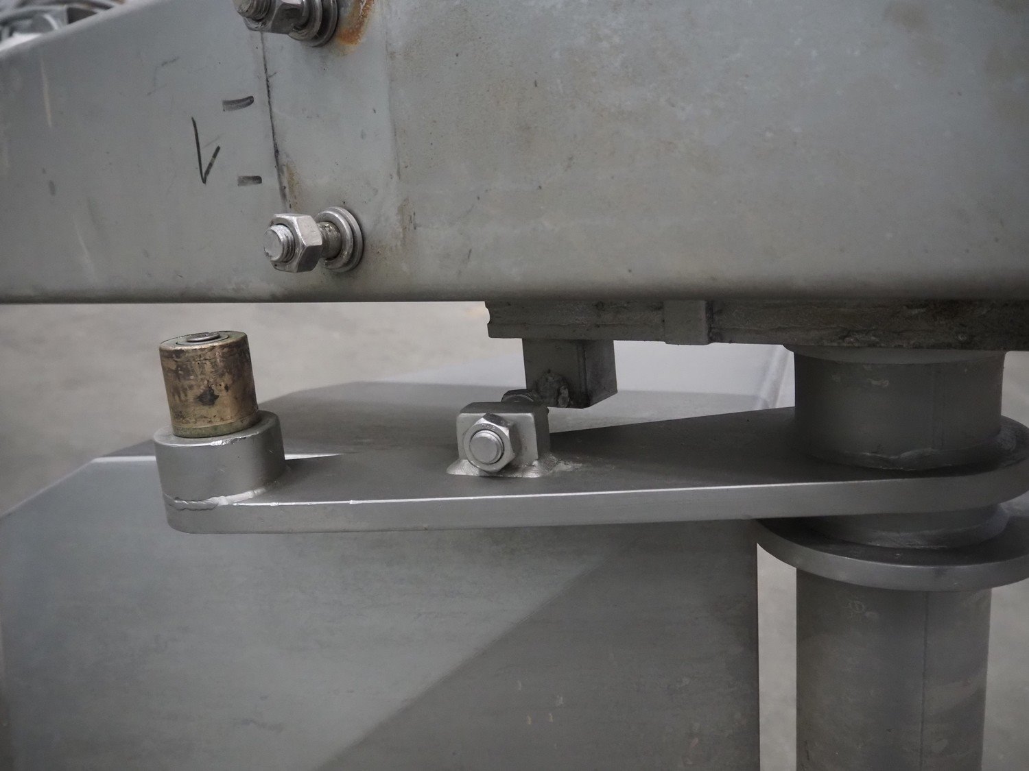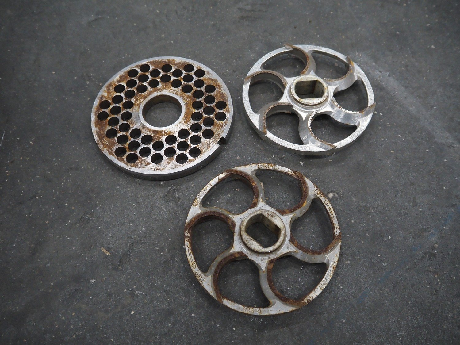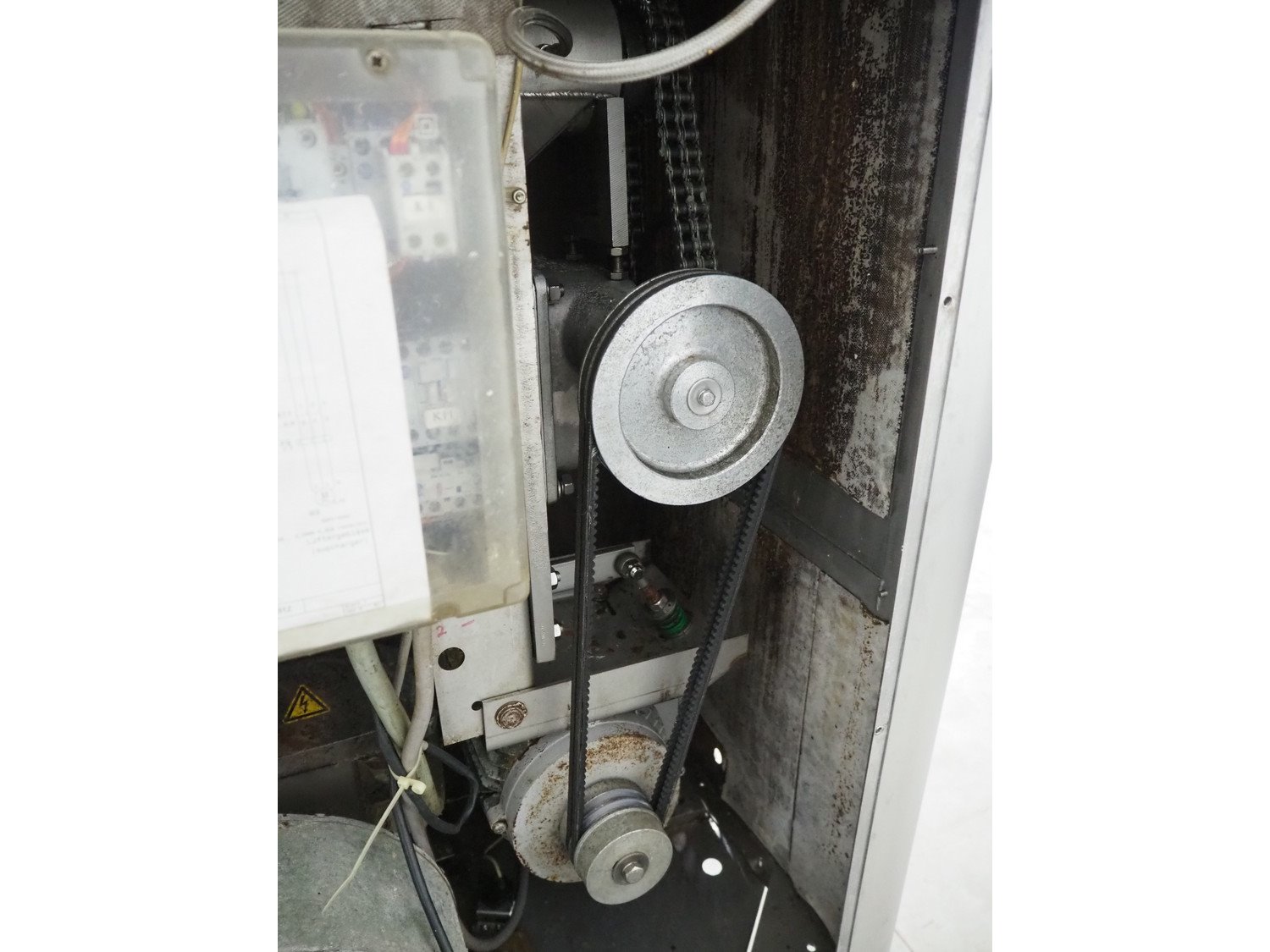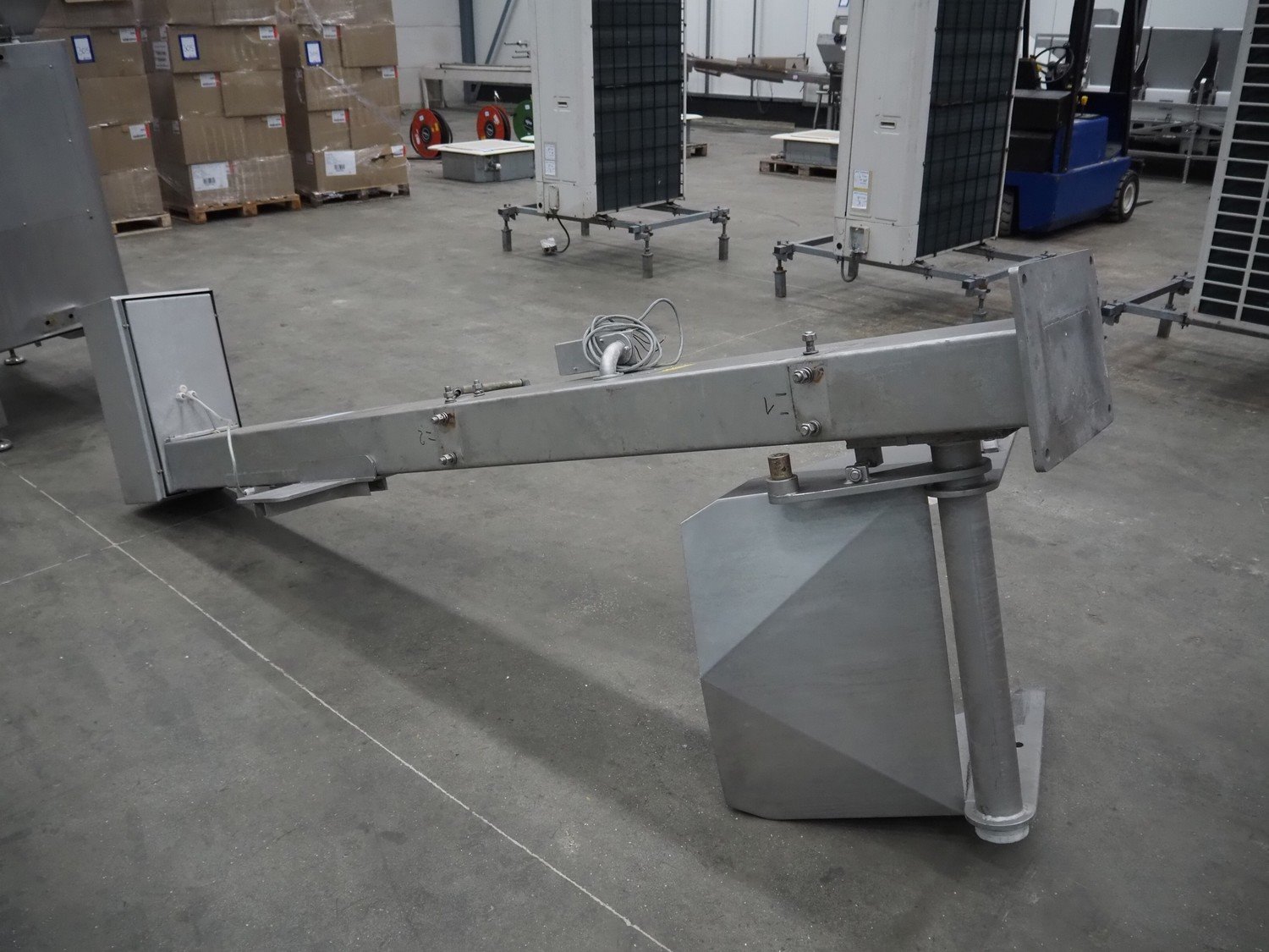 Mado mixer-grinder with Carsø lifter for 200 liter meat bins, diameter plate: 160 mm, dimensions mixer-ginder: 1320 mm x 1100 mm x 1850 mm, lifter type: HKV200, serial number: 94606, year of construction: 2001, 400 V, 3 Ph, 0.75 kW, lifting height: 2000 mm, dimensions lifter: 3300 mm x 1400 mm x 700 mm. Kavel locatie: Schouwrooij 29, 5281 RE Boxtel, Nederland