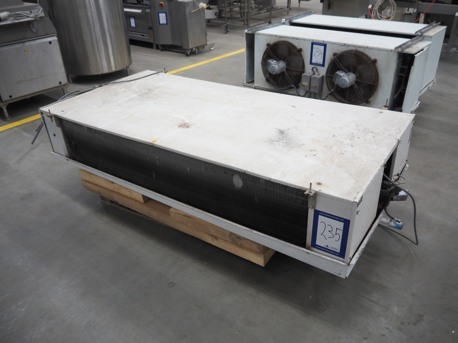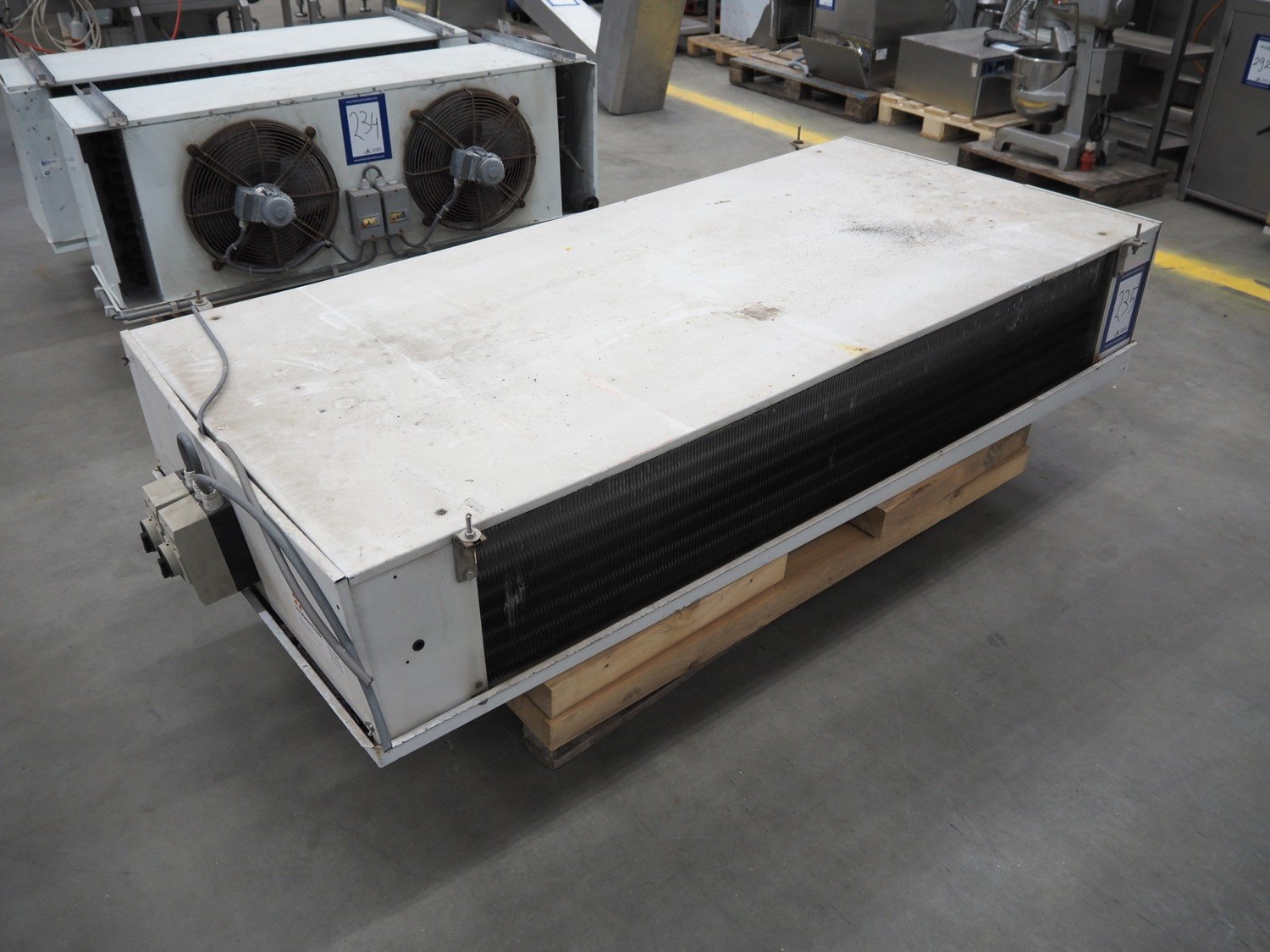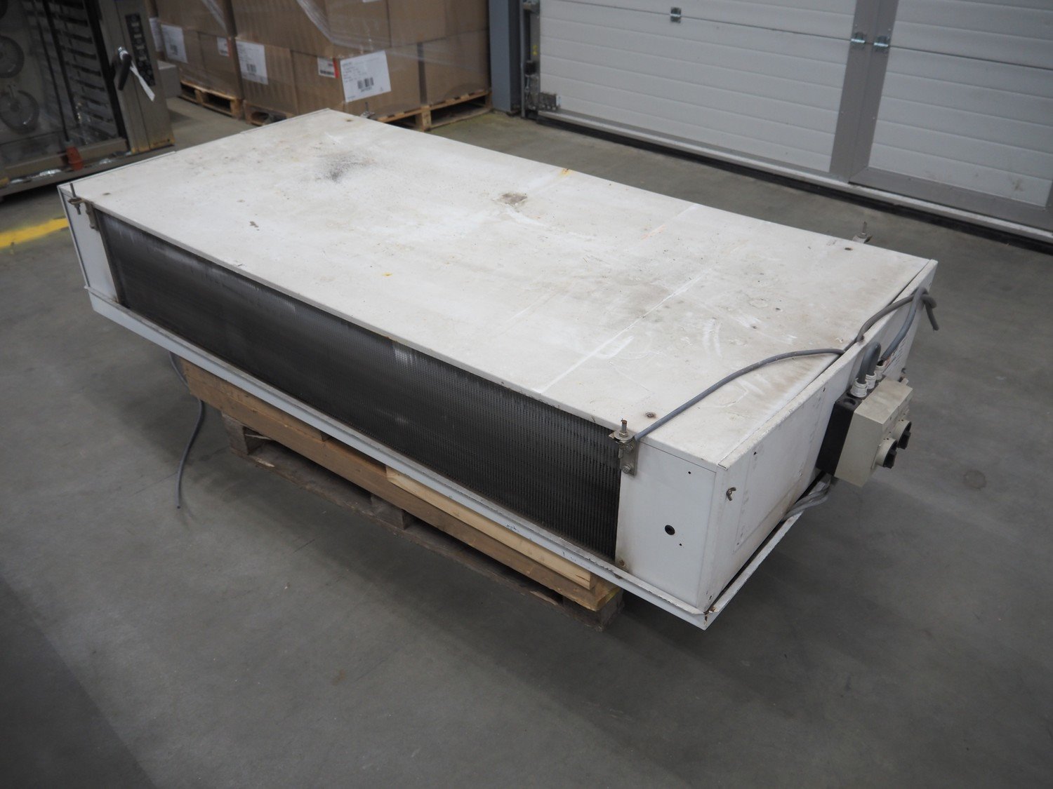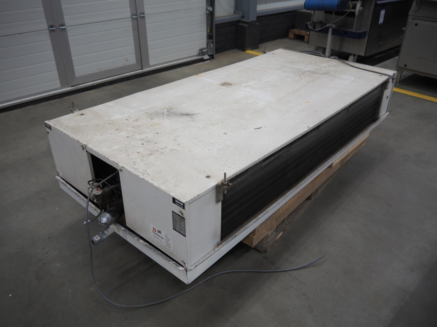 Goedhart Bohemia evaporator, 2 fans, type: BSD 452-7-230 E, number: 99 1063 000, 400 V, 50 Hz, 8760 W, maximum work pressure: 19.5 bar, weight: 158 kg, dimensions: 2200 mm x 1050 mm x 550 mm. Kavel locatie: Schouwrooij 29, 5281 RE Boxtel, Nederland