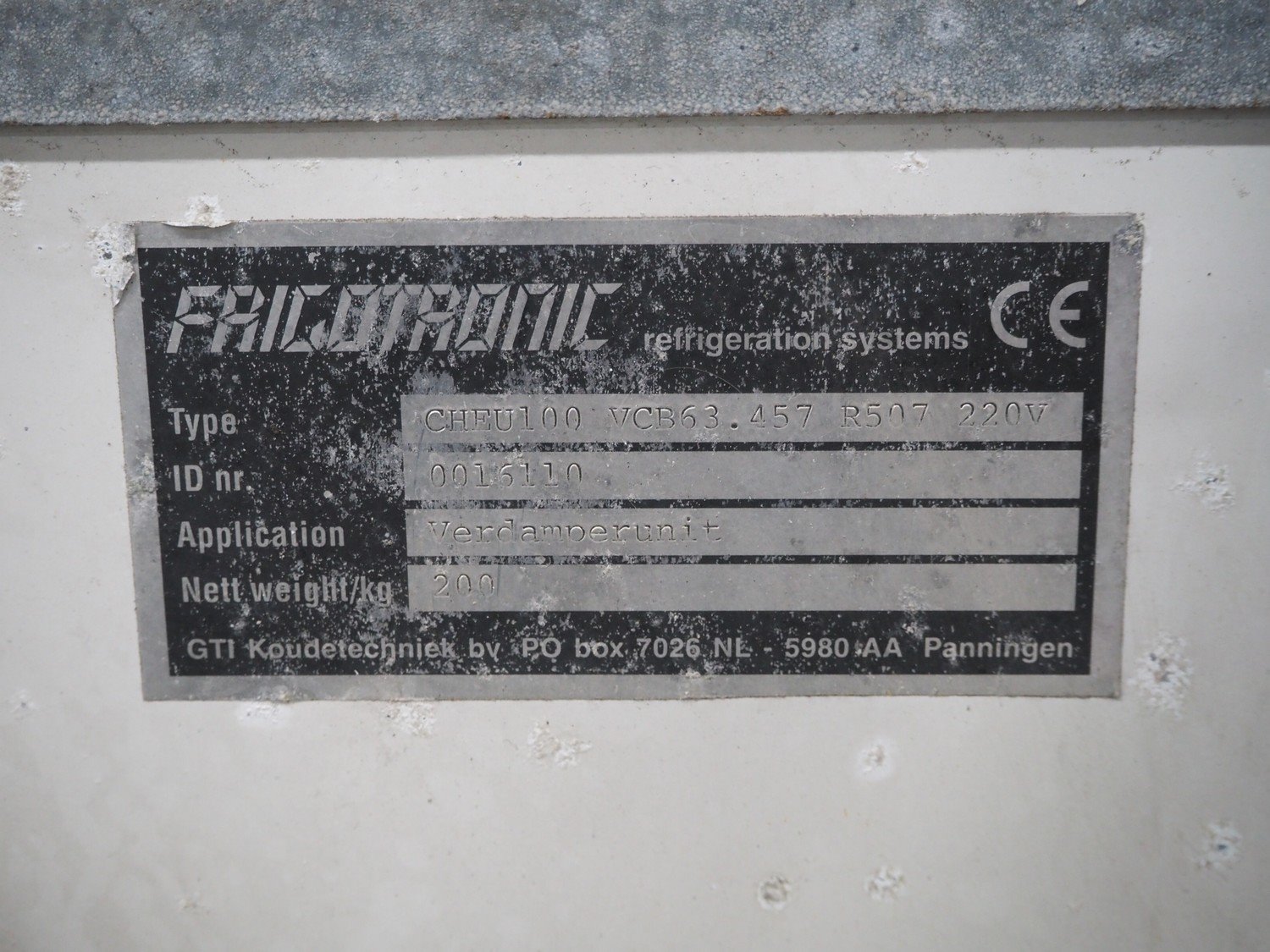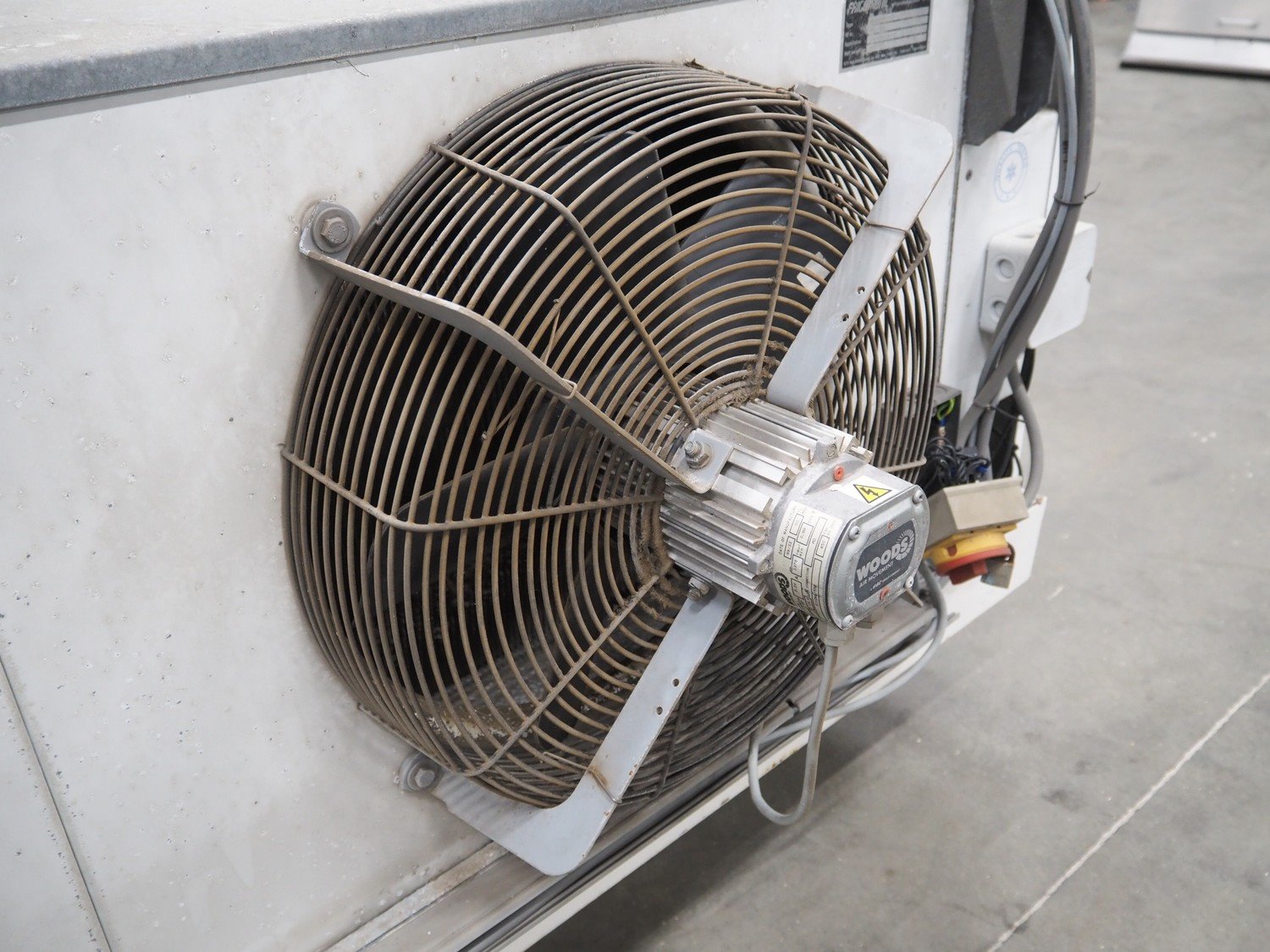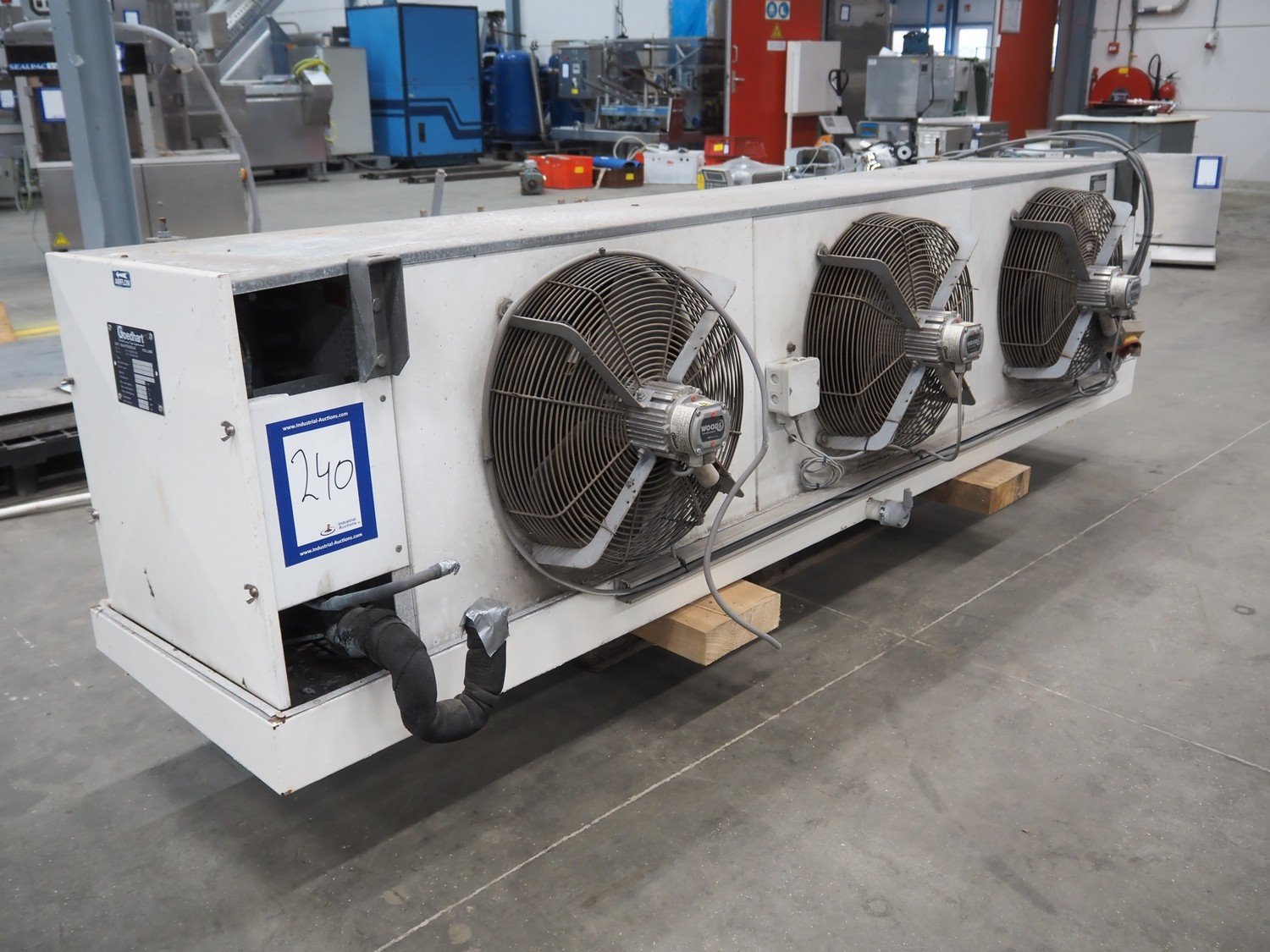 Goedhart evaporator, 3 fans, type: VCB 63457, manufacturing number: 99-0835-020, year of construction: 1999, maximum working temperature: -10/42 ⁰C, maximum working pressure: 19.5 bar, volume: 35 dm³, weight: 190 kg, dimensions: 2850 mm x 850 mm x 700 mm. Kavel locatie: Schouwrooij 29, 5281 RE Boxtel, Nederland