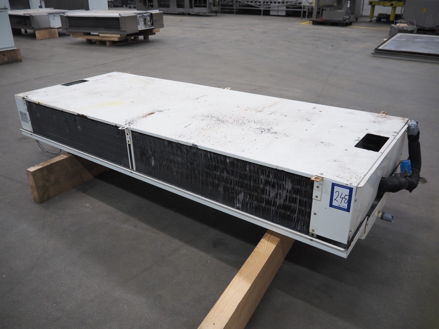 Searle evaporator, 2 fans, model: DSR116-6 AL, serial number: 928888, maximum work pressure: 21 bar, 220/240 V, 1 Ph, 50 Hz, 70 W, dimensions: 2530 mm x 950 mm x 450 mm. Kavel locatie: Schouwrooij 29, 5281 RE Boxtel, Nederland