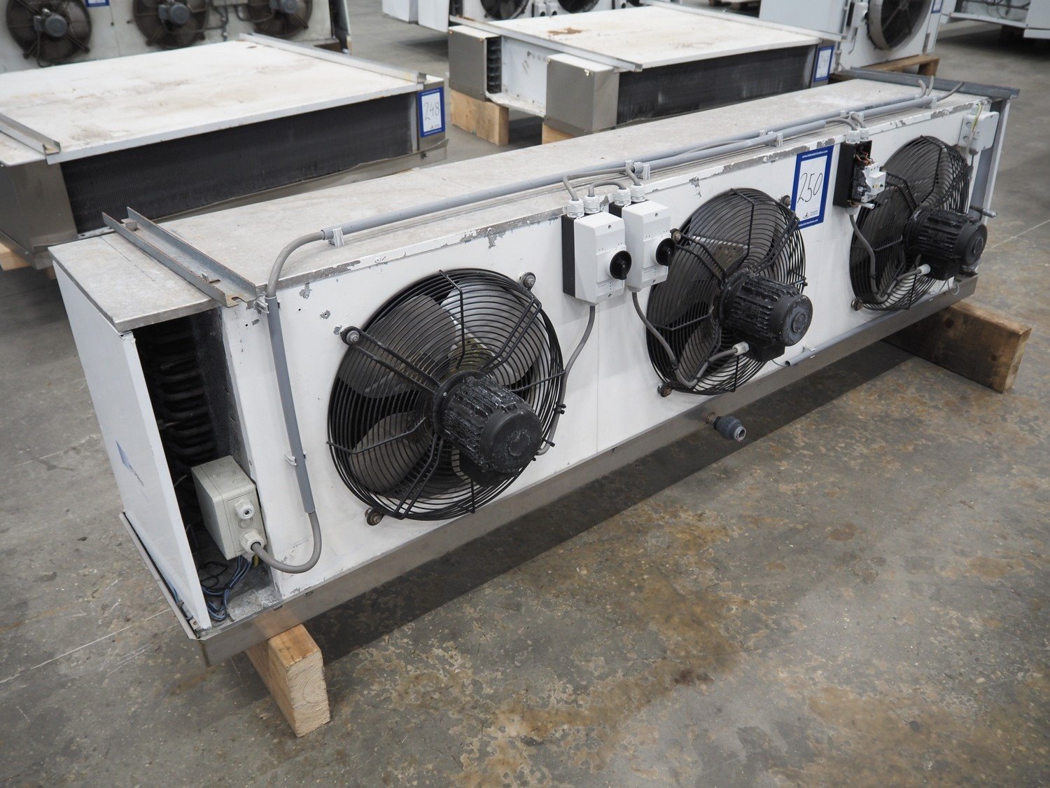 Helpman evaporator, 3 fans, dimensions: 2620 mm x 700 mm x 800 mm. Kavel locatie: Schouwrooij 29, 5281 RE Boxtel, Nederland