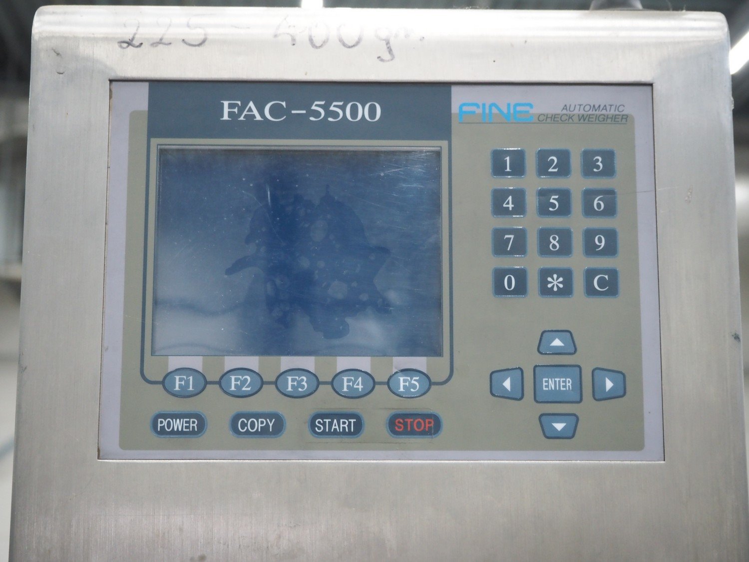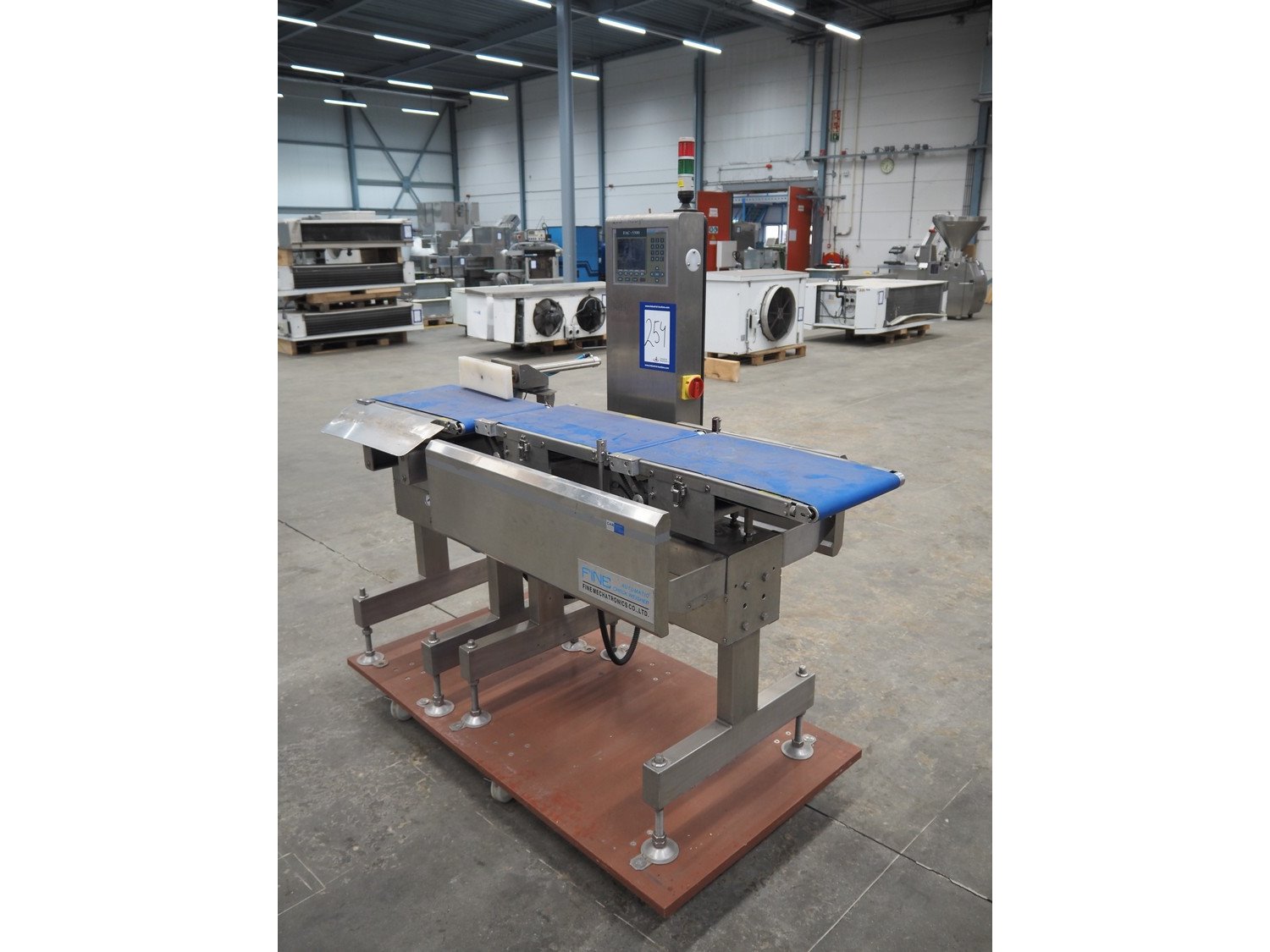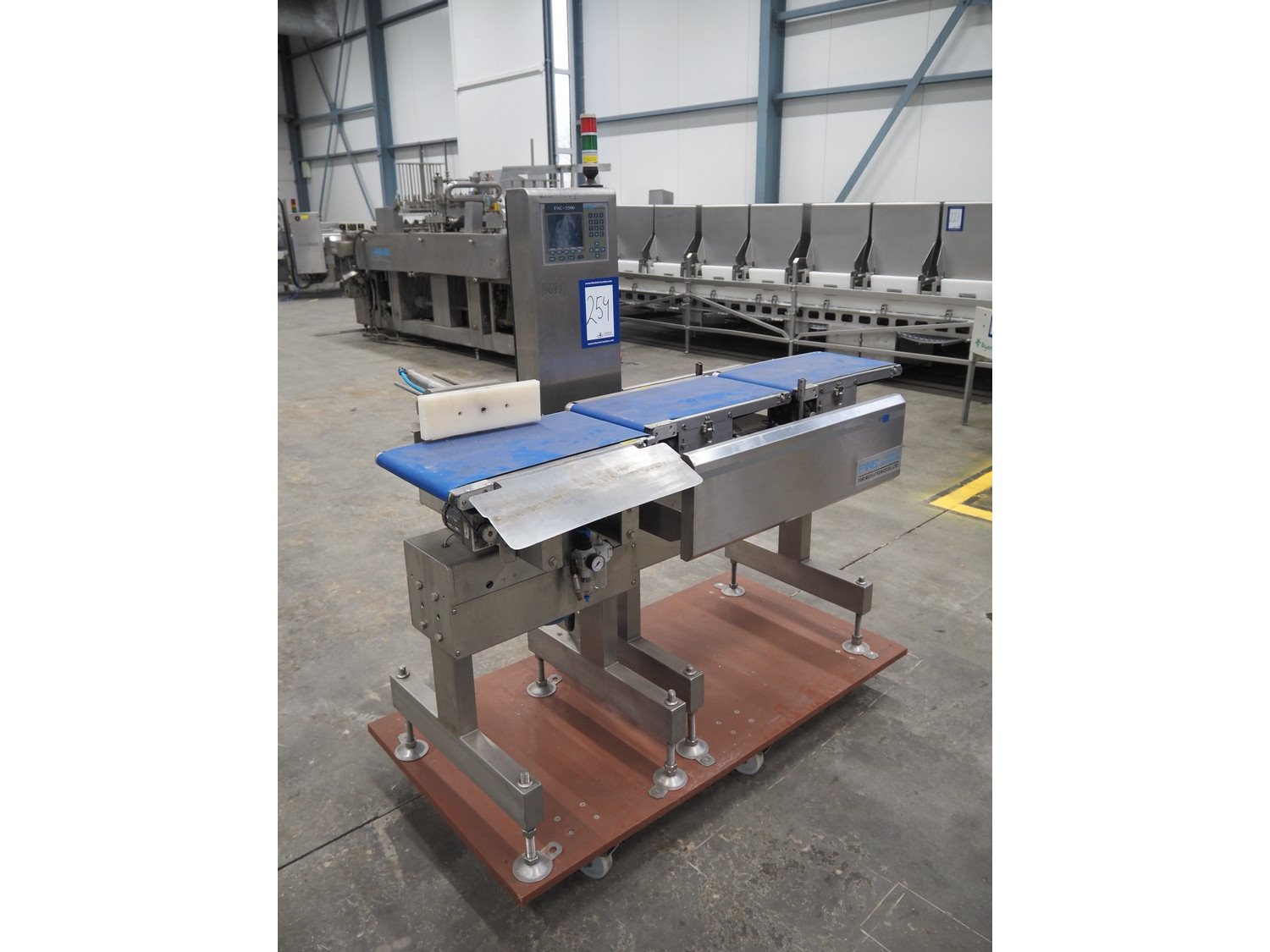 Fine Interkorea checkweigher with rejecter, model: FAC-5500 W335 535, serial number: E065031, year of construction: 2006/06, weight range: 1-500 gram, plastic belt, belt width: 300 mm, total dimensions: 1670 mm x 900 mm x 1630 mm. Kavel locatie: Schouwrooij 29, 5281 RE Boxtel, Nederland