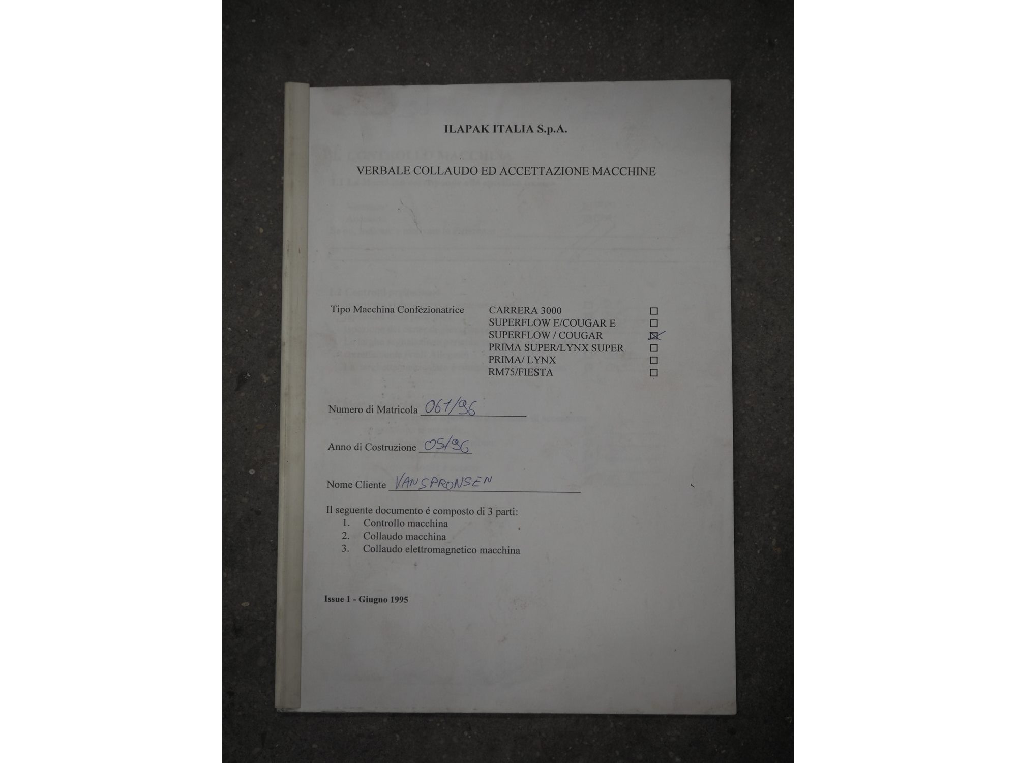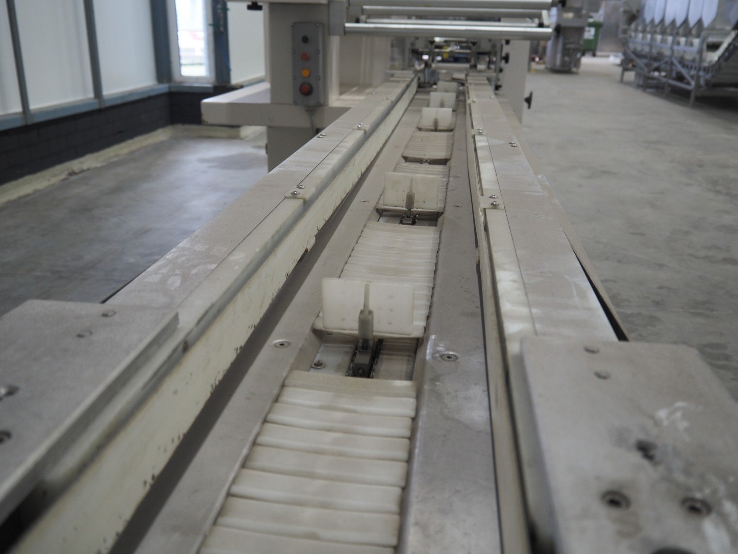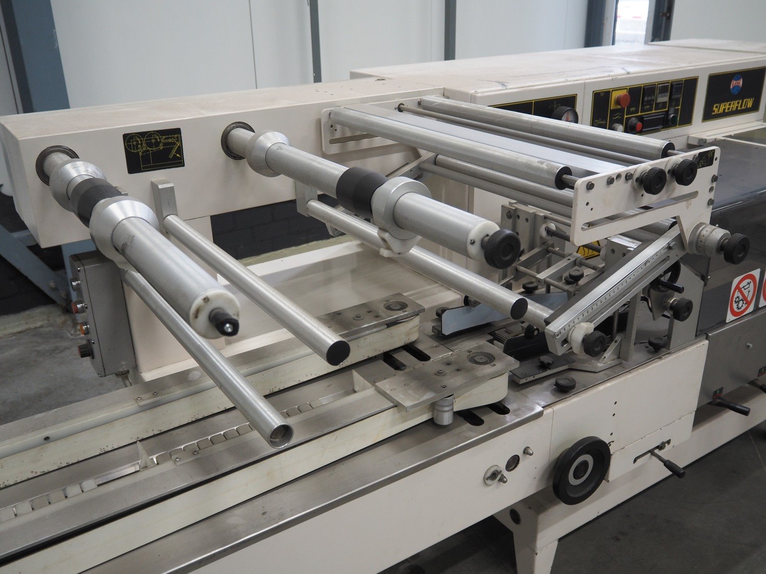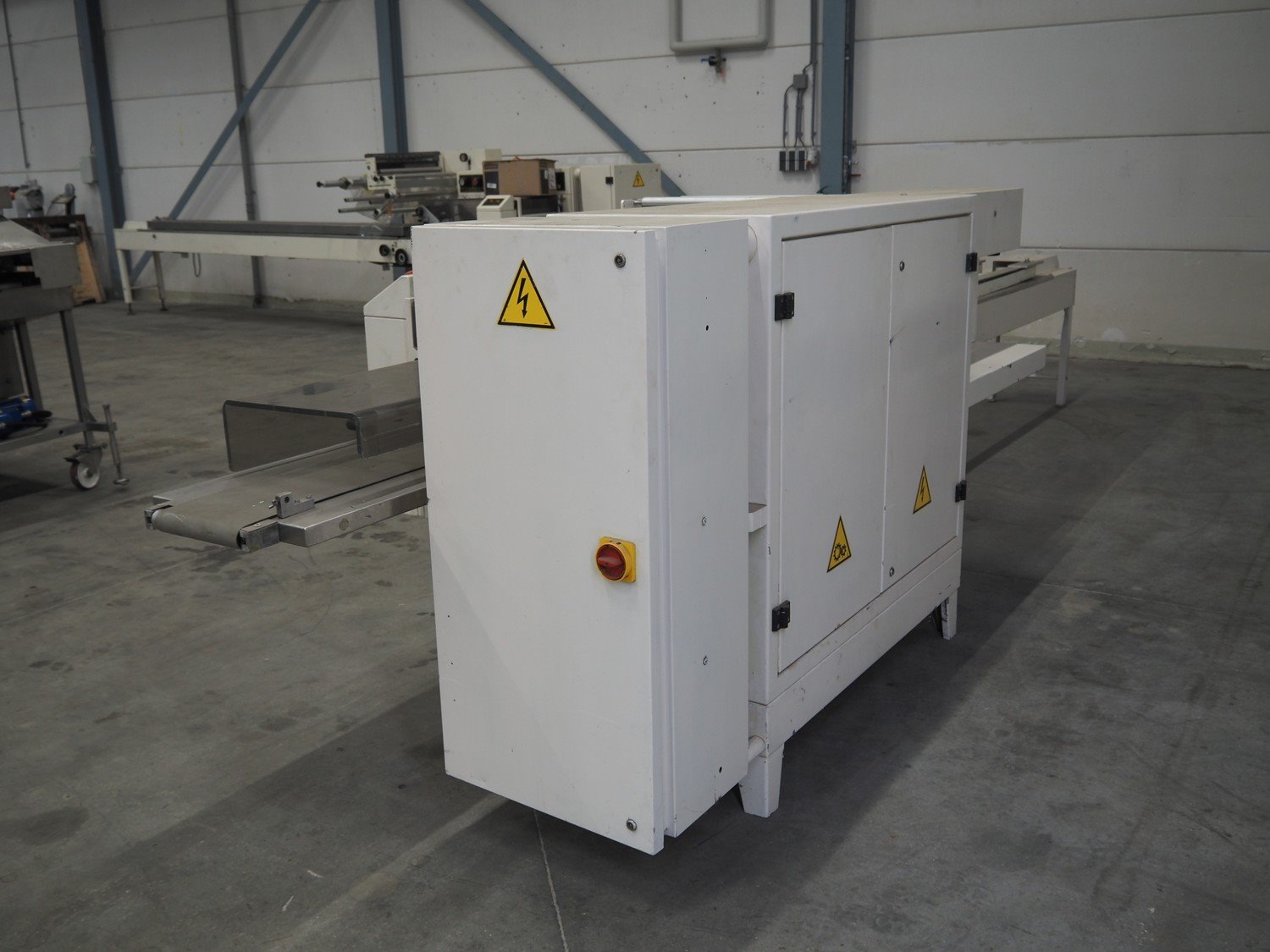 Ilapak Italia S.p.a. flowpacker, type: UNO, serial number: 061 96, year of construction: 4/1996, 380 V, 50 Hz, 5000 W, plastic infeed belt with dividers, belt width: 100 mm, divider height: 55 mm, distance between dividers: 430 mm, seal width: 250 mm, plastic outfeed belt, belt width: 240 mm, total dimensions: 5900 mm x 1300 mm x 1310 mm. Kavel locatie: Schouwrooij 29, 5281 RE Boxtel, Nederland