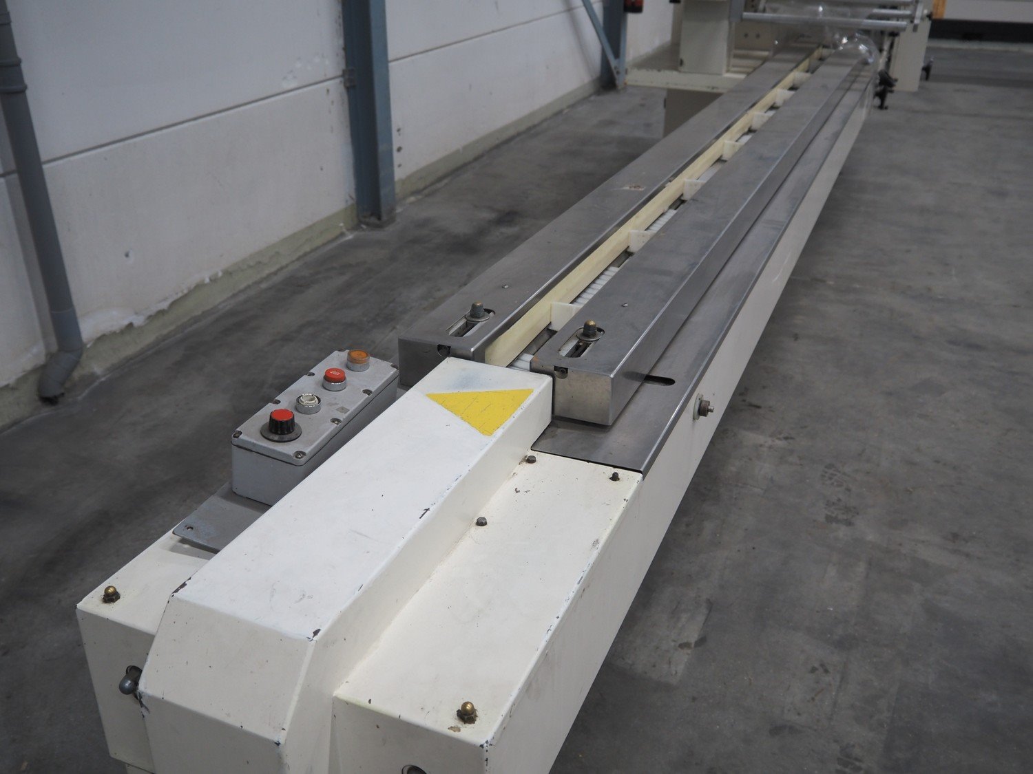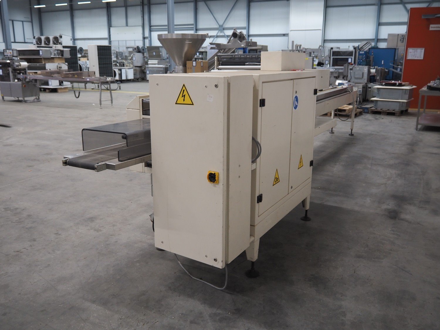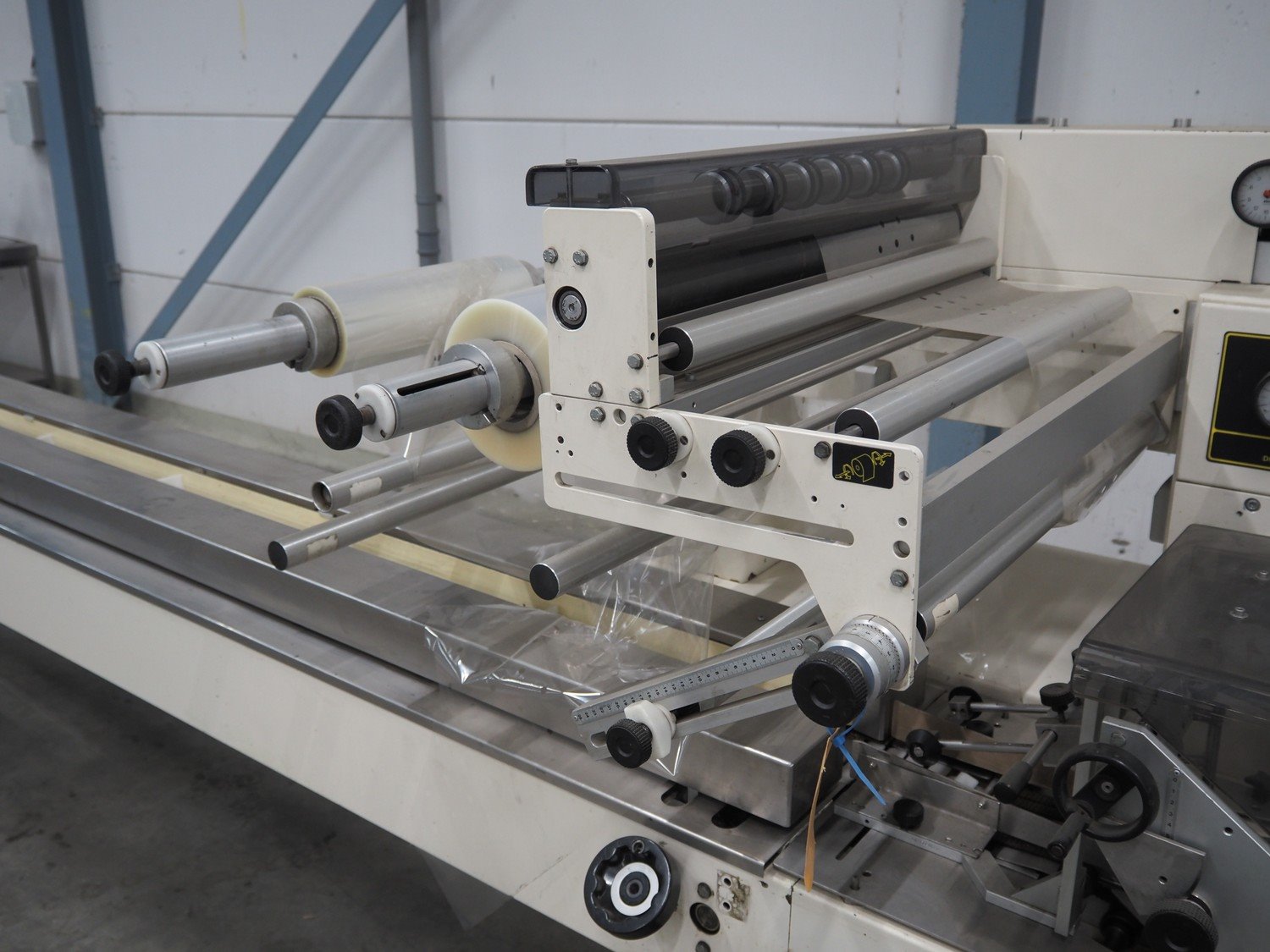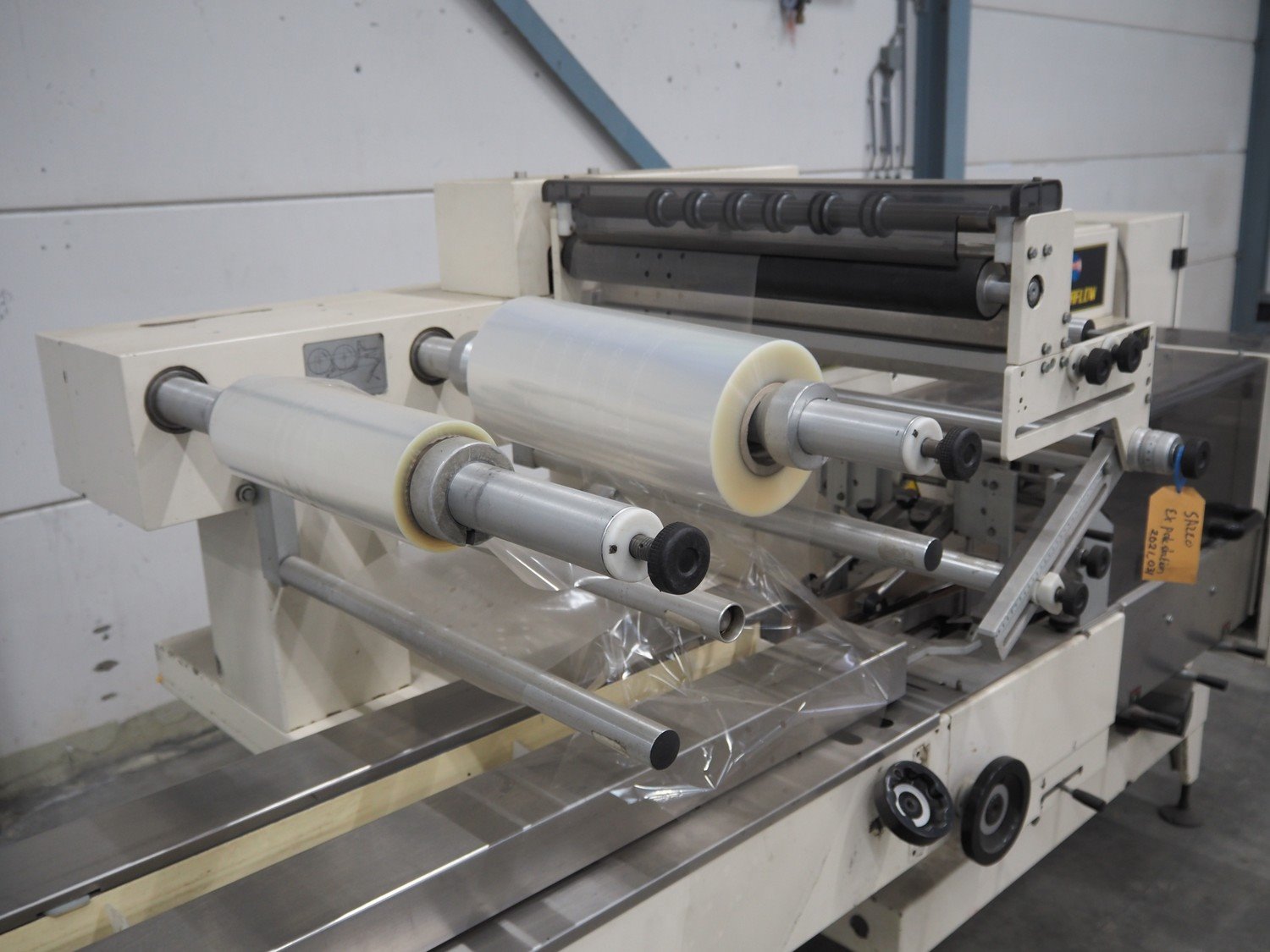Ilapak Italia S.p.a. flowpacker, type: Superflow, serial number: 99 056, year of construction: 4/1999, 400 V, 3 Ph, 50 Hz, 10 A, 5000 W, seal width: 250 mm, plastic belt, belt width: 100 mm, film width: 400 mm and 350 mm, total dimensions: 6800 mm x 1300 mm x 1600 mm. Kavel locatie: Schouwrooij 29, 5281 RE Boxtel, Nederland