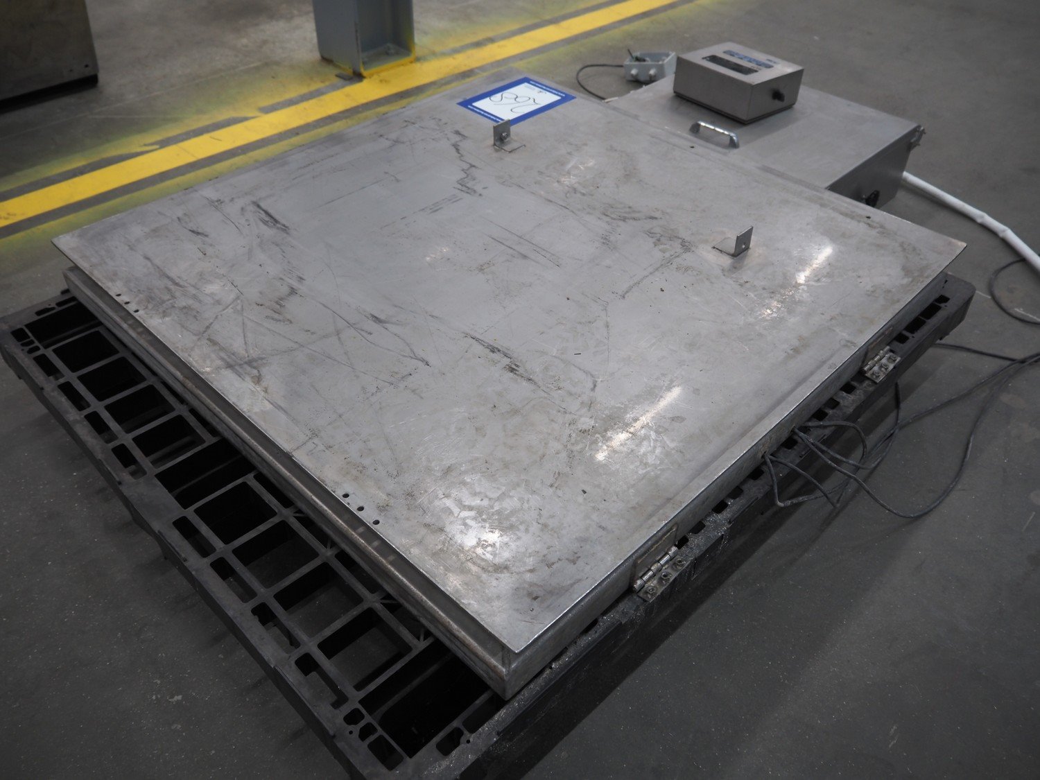 DEM weighing systems weighing scale and indicator, model: GSE 350, scale dimensions: 1000 mm x 1000 mm. Kavel locatie: Schouwrooij 29, 5281 RE Boxtel, Nederland