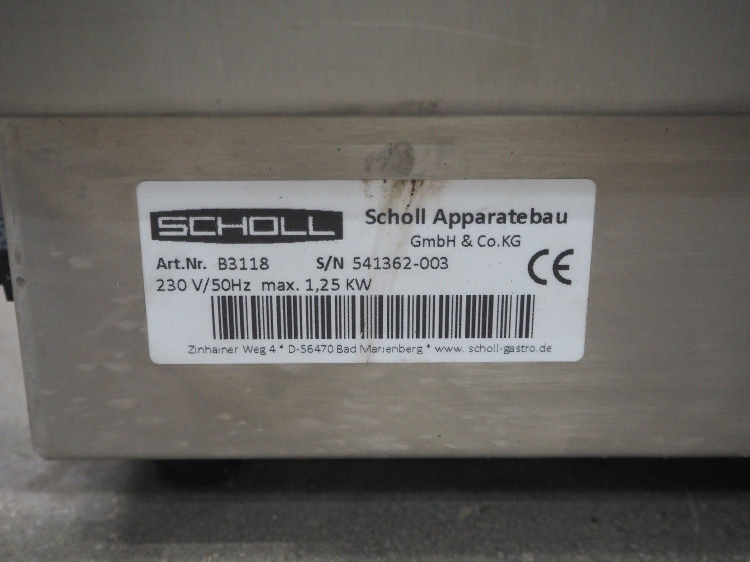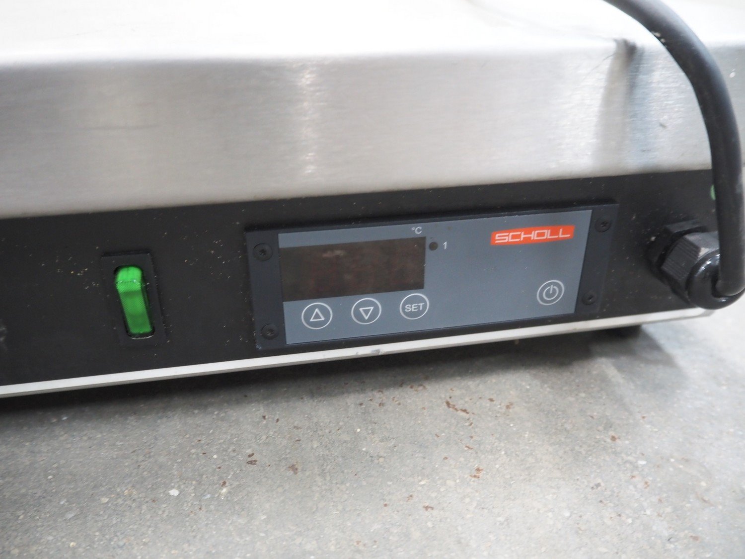 Scholl Apparatebau warming plate, serial number: 541362-003, 230 V, 50 Hz, 1.25 kW, dimensions: 800 mm x 600 mm x 650 mm. Kavel locatie: Schouwrooij 29, 5281 RE Boxtel, Nederland