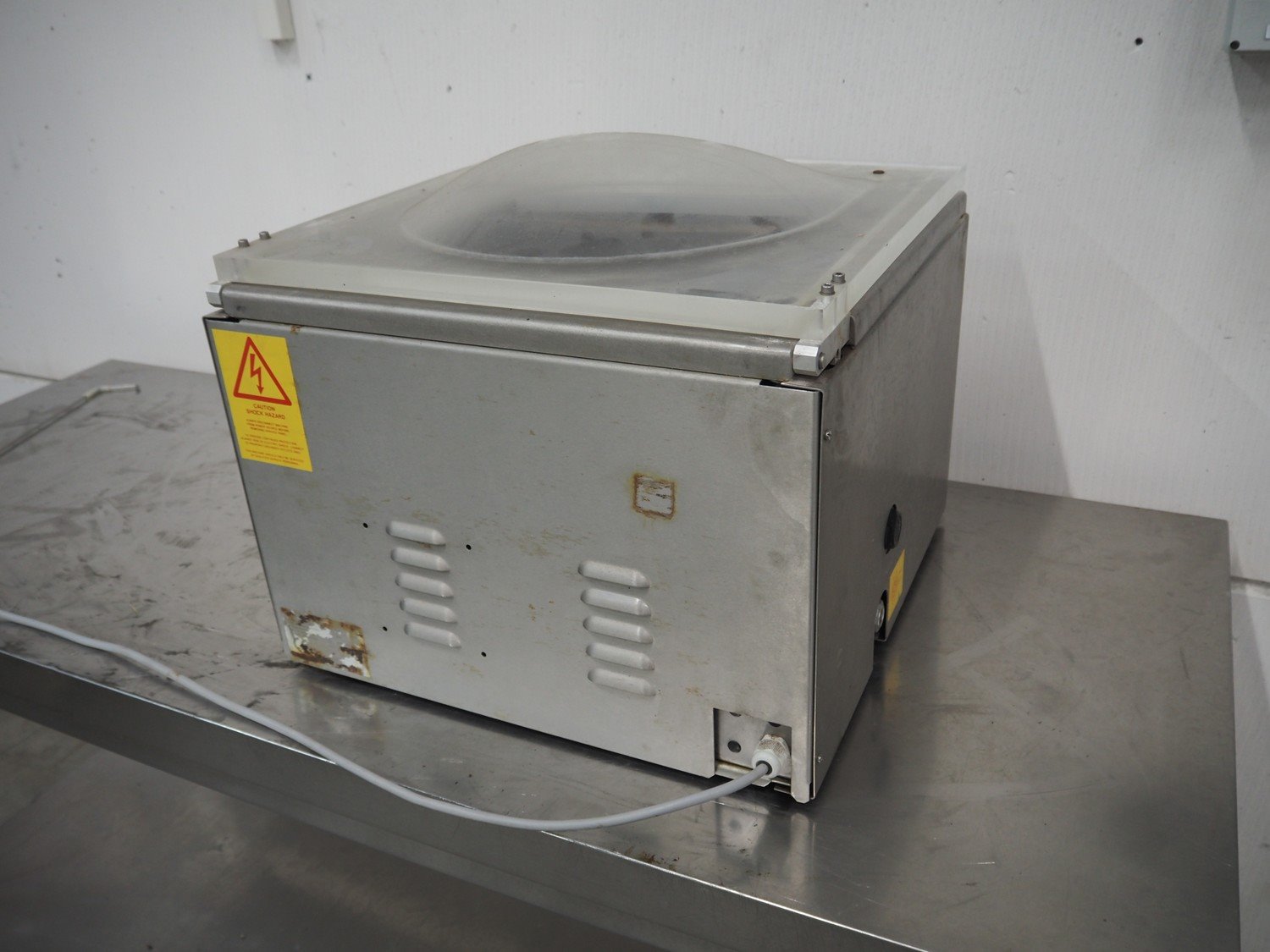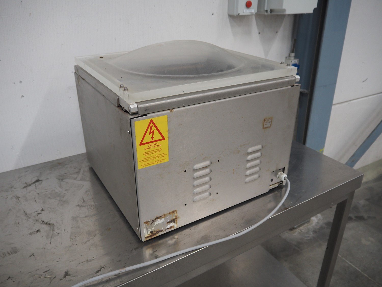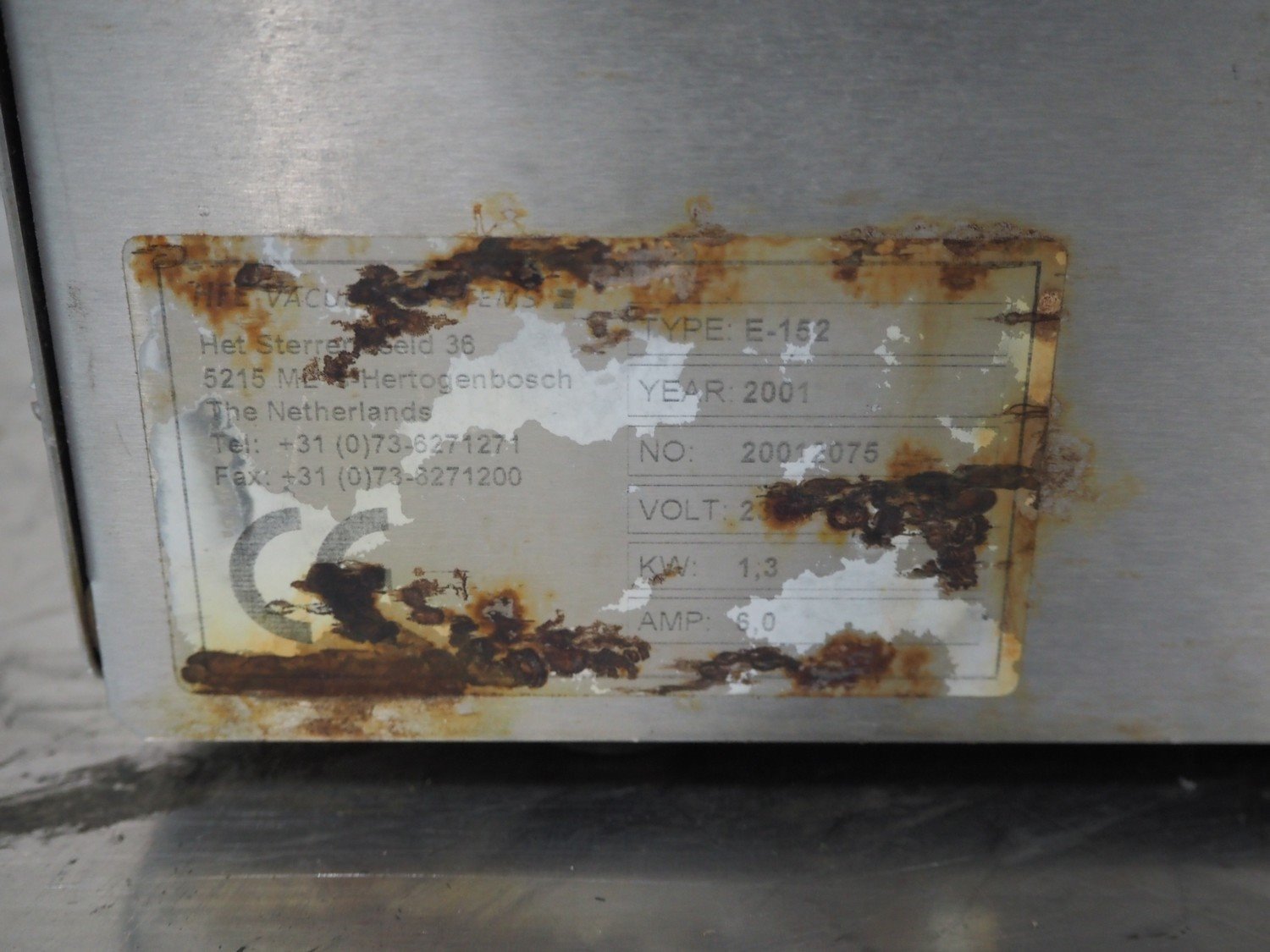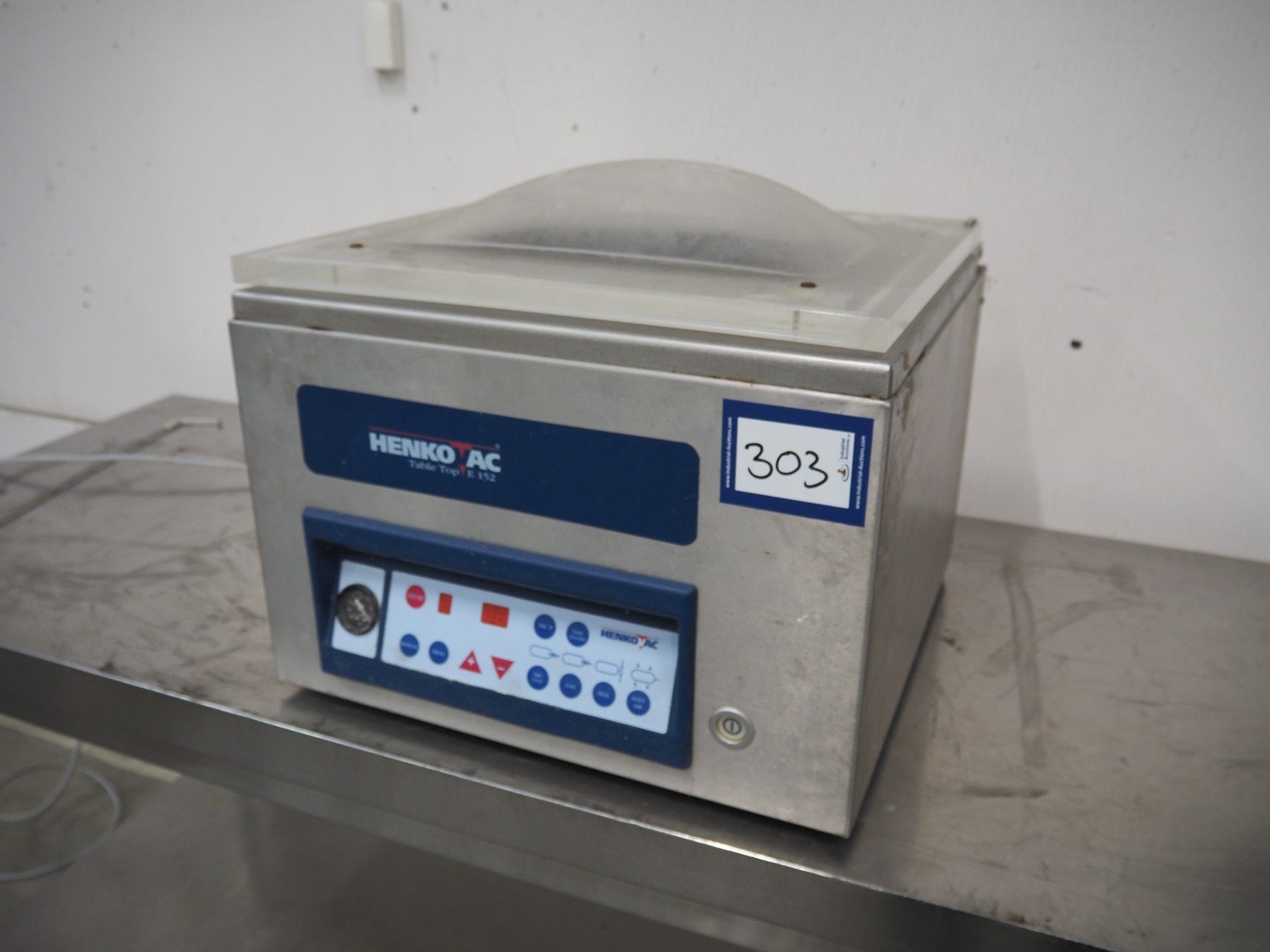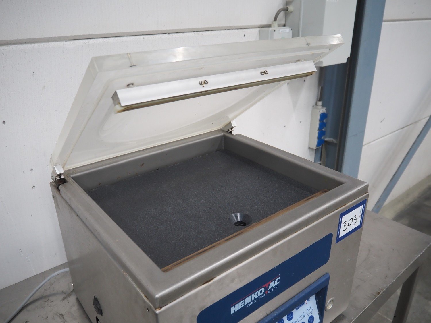 Henkovac vacuum machine, type: E-152, number: 20012075, year of construction: 2001, 230 V, 6 A, 1.3 kW, seal length: 440 mm, dimensions chamber: 450 mm x 370 mm x 70 mm, total dimensions: 450 mm x 500 mm x 550 mm. Kavel locatie: Schouwrooij 29, 5281 RE Boxtel, Nederland