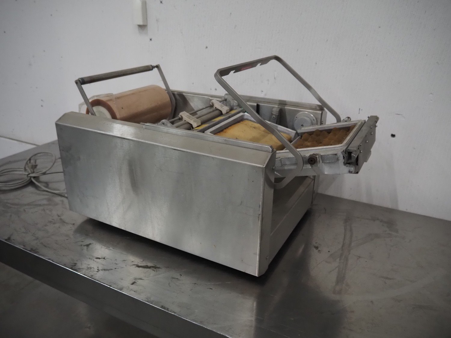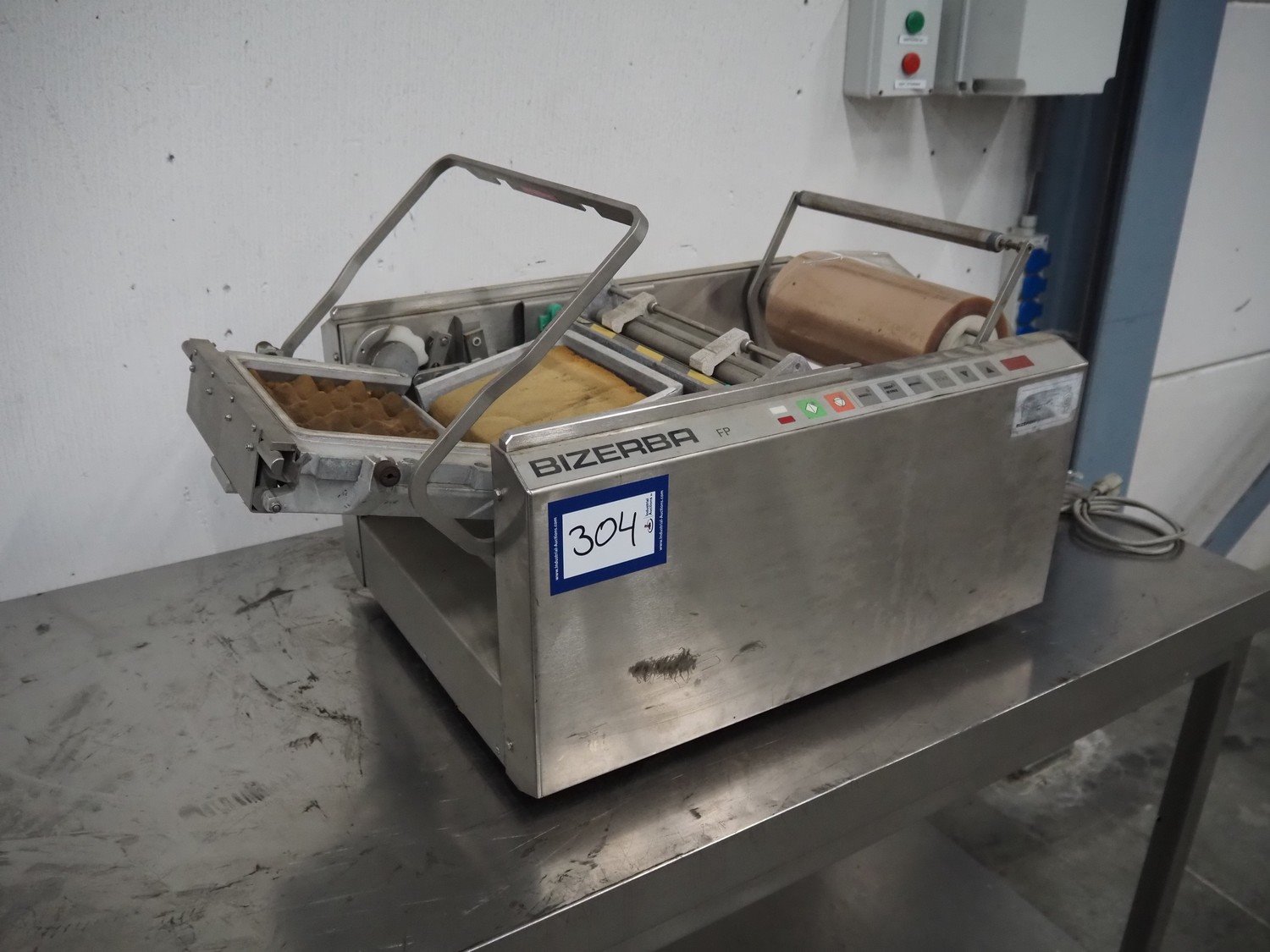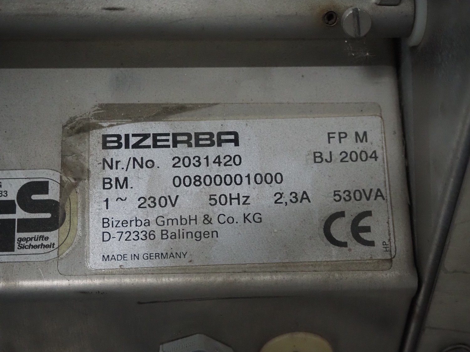 Bizerba packaging machine, type: FP M, number: 2031420, year of construction: 2004, 230 V, 1 Ph, 50 Hz, 2.3 A, 530 VA, dye: 220 mm x 170 mm, film width: 250 mm, total dimensions: 780 mm x 500 mm x 420 mm. Kavel locatie: Schouwrooij 29, 5281 RE Boxtel, Nederland