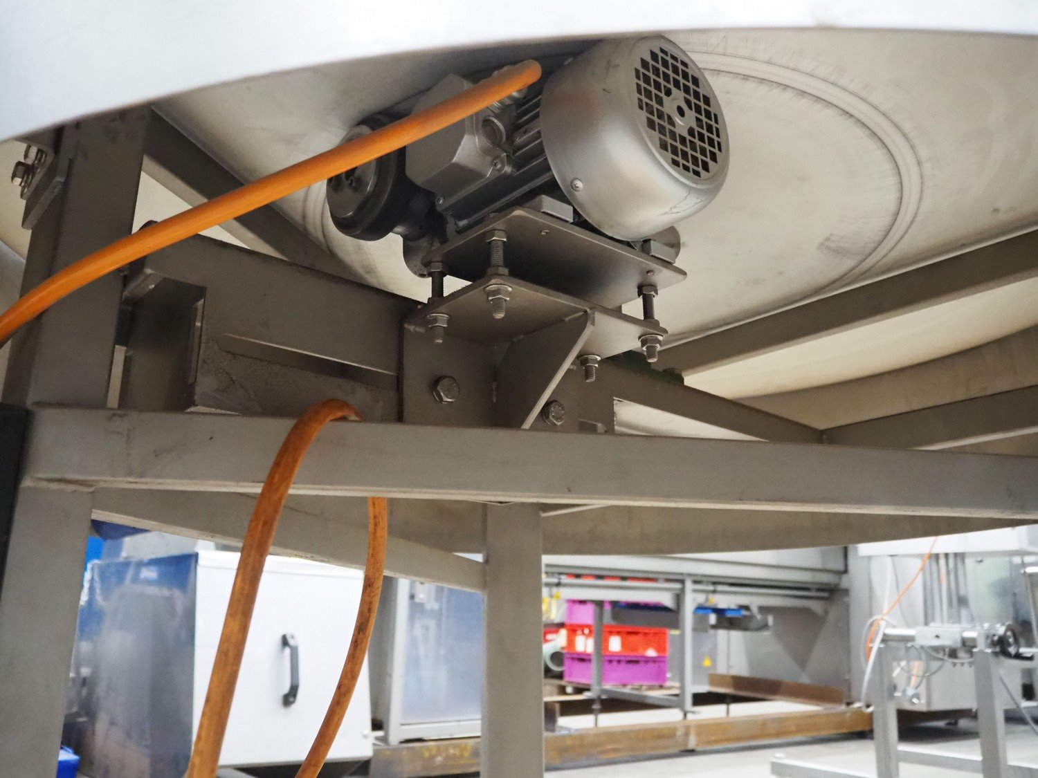 Turning table, s/s frame, wooden top, diameter top: 1200 mm, total dimensions: ø 1230 mm x 800 mm. Kavel locatie: Schouwrooij 29, 5281 RE Boxtel, Nederland